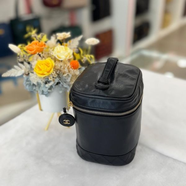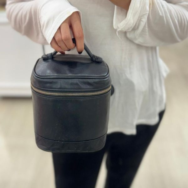 經典不敗的優雅象徵|CHANEL 黑色Vanity Case 化妝箱包。低調中藏著細膩工藝,全皮革包覆的圓桶式設計,延續香奈兒一貫的優雅語彙。不論是作為手提包或收藏精品,都是令人心動的存在。