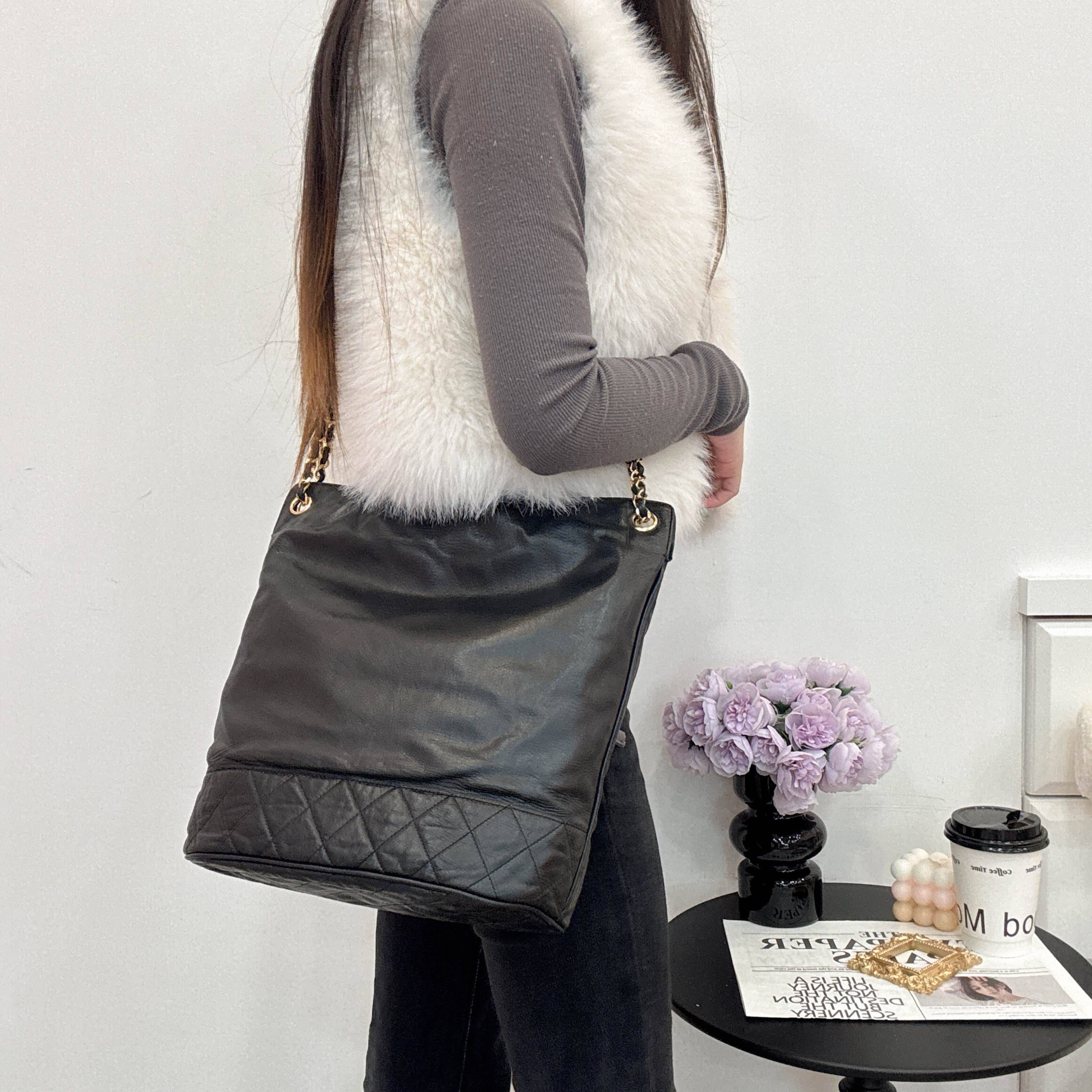 金屬鏈條肩帶超有辨識度。容量大,通勤日常都OK,柔軟皮質背起來很舒服。中古款不易撞包,收藏價值高~