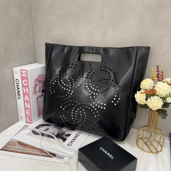 這款 Chanel 黑色穿孔雙C手提包,以低調奢華的全黑皮革呈現,搭配細緻穿孔工藝勾勒經典雙C標誌,簡約卻極具辨識度。俐落托特包型,容量實用,無論通勤、旅行或日常搭配都能輕鬆駕馭。剛柔並存的設計,展現香奈兒一貫的優雅態度,是懂質感人士的收藏首選。