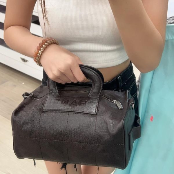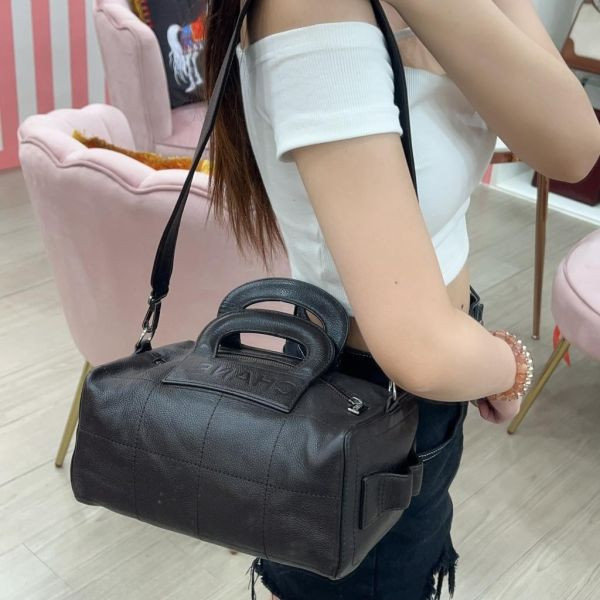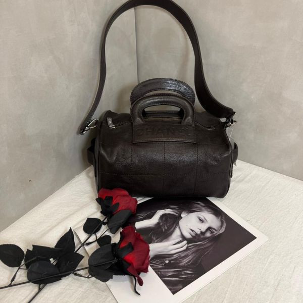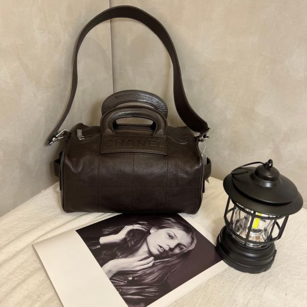 這款為 CHANEL Coco Cabas 系列波士頓包,以深咖啡色粒面小牛皮製作,皮革質地柔軟且耐用,包身正面壓印 CHANEL 字樣低調呈現品牌識別。經典波士頓包型,容量寬敞,雙拉鍊開口設計方便取物,無論日常或短途旅行都十分實用,展現休閒與優雅並存的氣質!