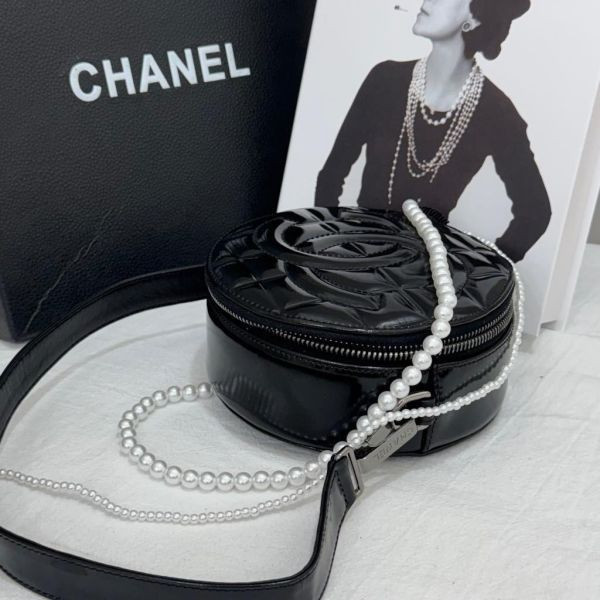 𝐂𝐡𝐚𝐧𝐞𝐥 黑金荔枝皮圓餅包,經典Mini系列,已絕版,收藏價值超高!黑色荔枝紋皮革+大雙CLogo,搭配珍珠鏈條,優雅復古氣質滿分。尺寸小巧,日常出街或搭配禮服都很出彩,實用又時髦。荔枝皮耐磨,日常使用無壓力,在中古市場超受歡迎,奢侈品愛好者必入!