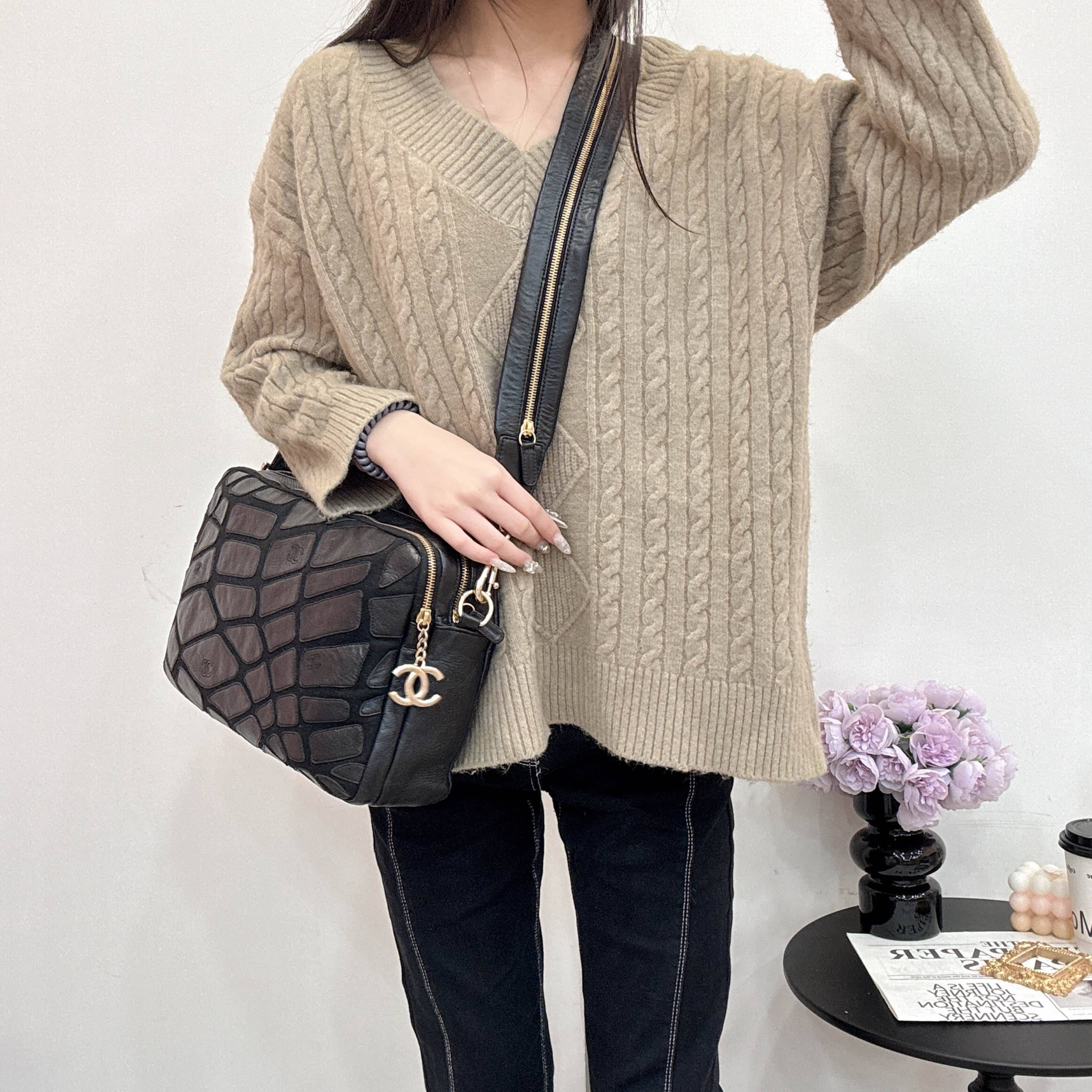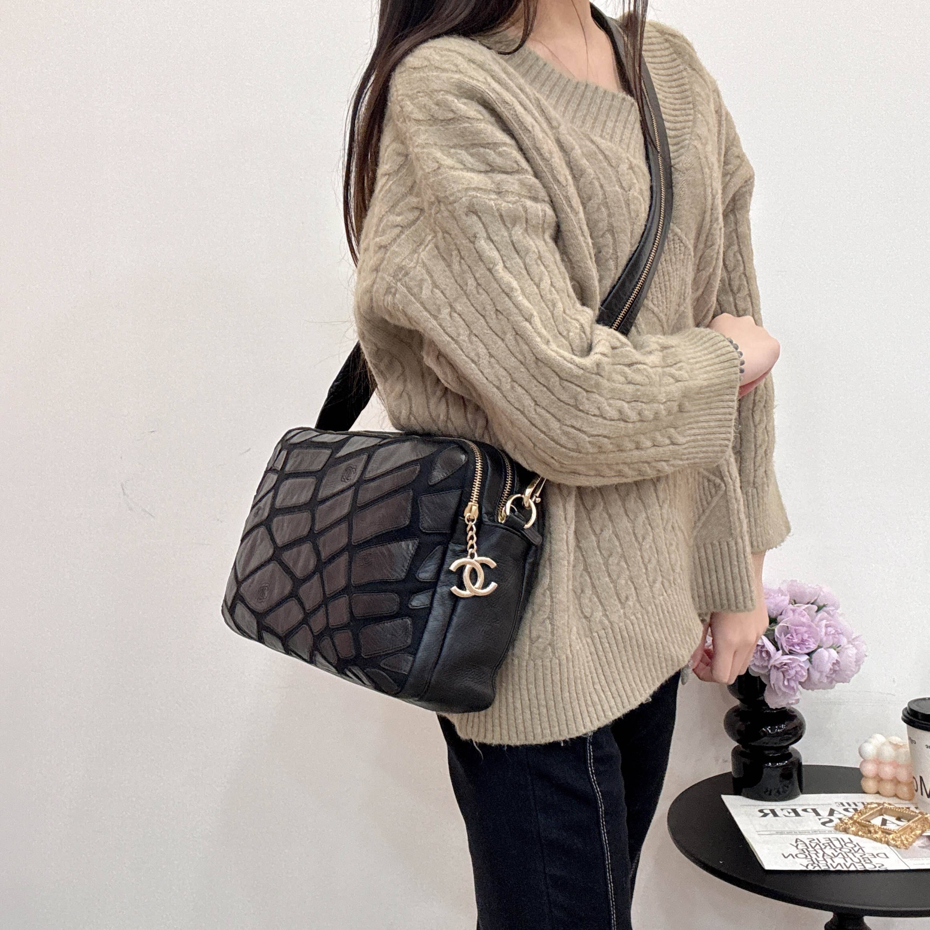 Chanel這款拼接單肩包,低調又有辨識度。包身點綴經典雙C標誌,細節滿分!金屬鏈條肩帶+雙C吊墜,奢華感拉滿~尺寸適中,通勤、出行都超實用,時尚與功能兼備,真的很愛~