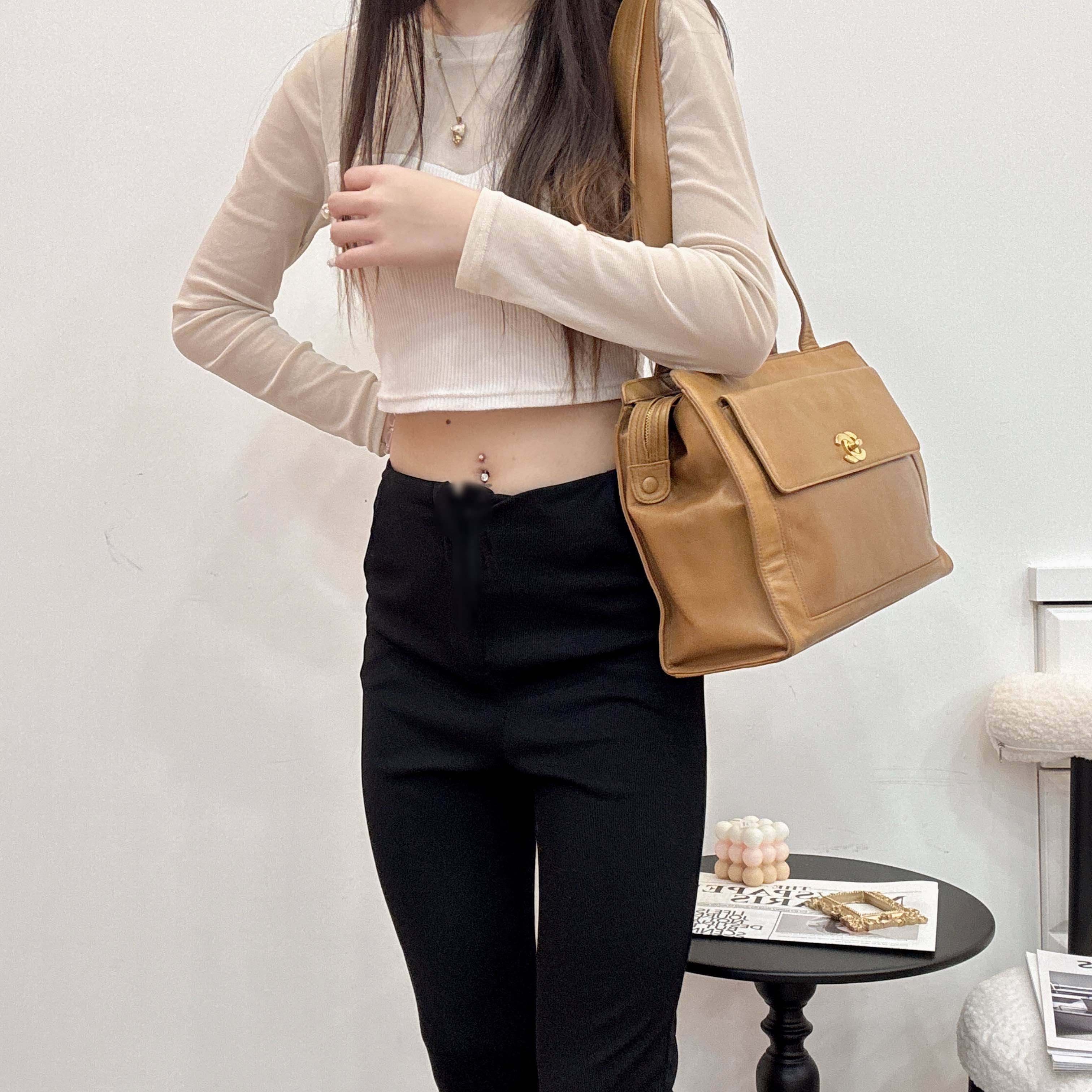 Chanel這款麂皮托特包,棕色調超有秋冬氛圍感!正面雙Clogo+金色五金,復古又高級。容量大,平板輕鬆裝下,通勤or短途出行都很OK。肩帶寬厚,背起來超舒服~