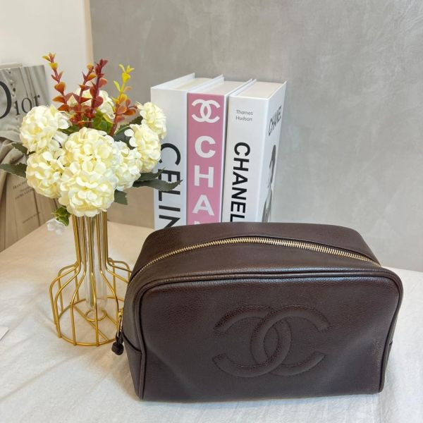 低調不失氣場的香奈兒CC壓紋化妝包,細緻荔枝紋皮革搭配金色拉鍊,簡約卻很有存在感。日常收納或當手拿包都優雅,完美展現法式奢華的細節美學。
