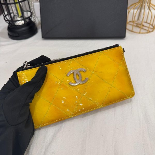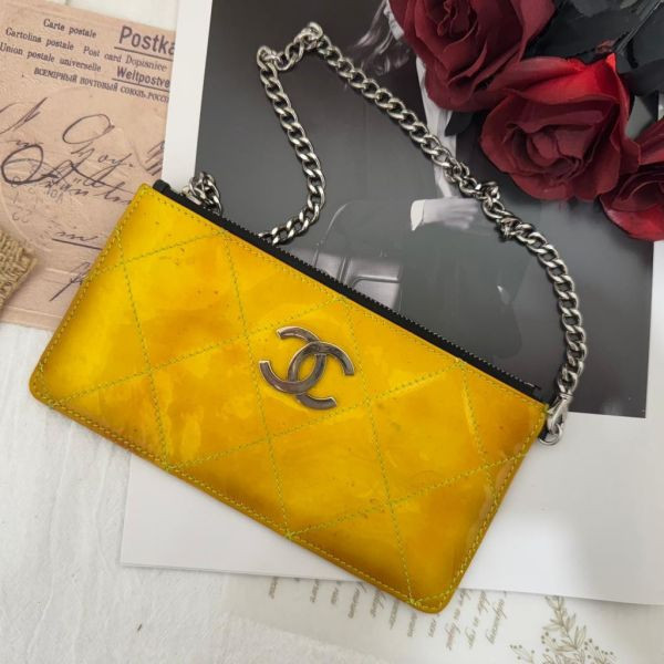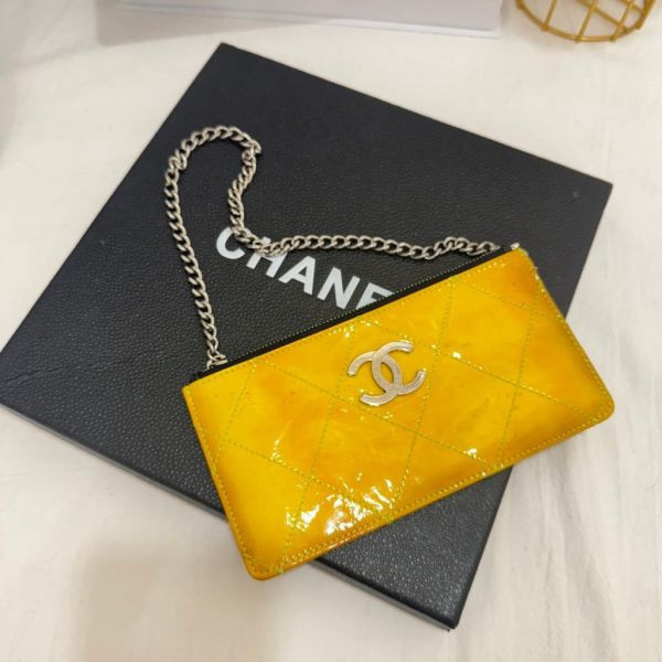 香奈兒這款亮面漆皮鏈條包,鵝蛋黃配銀色鏈條+雙CLogo,超有辨識度!菱格紋設計讓包包更立體,尺寸剛好,手機卡包都能裝下,日常出行超方便。春夏搭配淺色衣服,氣質直接拉滿!