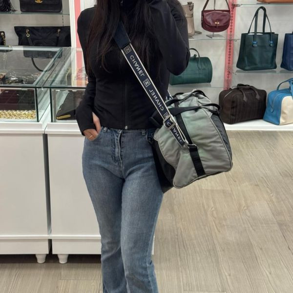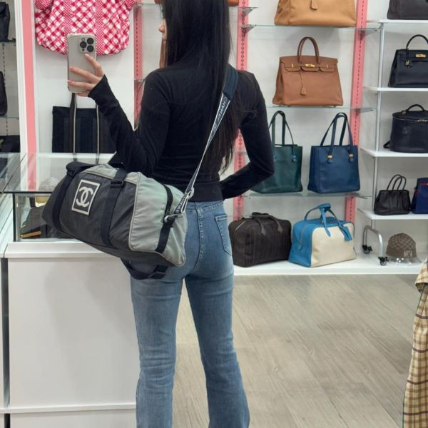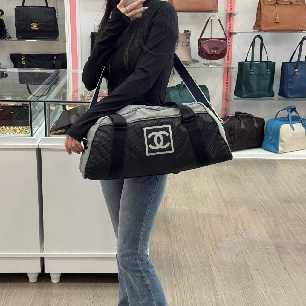 這款香奈兒運動方標波士頓包是中古系列,採用黑灰拼色設計,尼龍帆布材質防水防磨,超適合日常通勤或運動場景。正面方形雙CLogo超有辦識度,肩帶可調節,容量大,健身、短途旅行都能輕鬆裝下。無性別風格,百搭又實用,是中古市場的熱門單品!