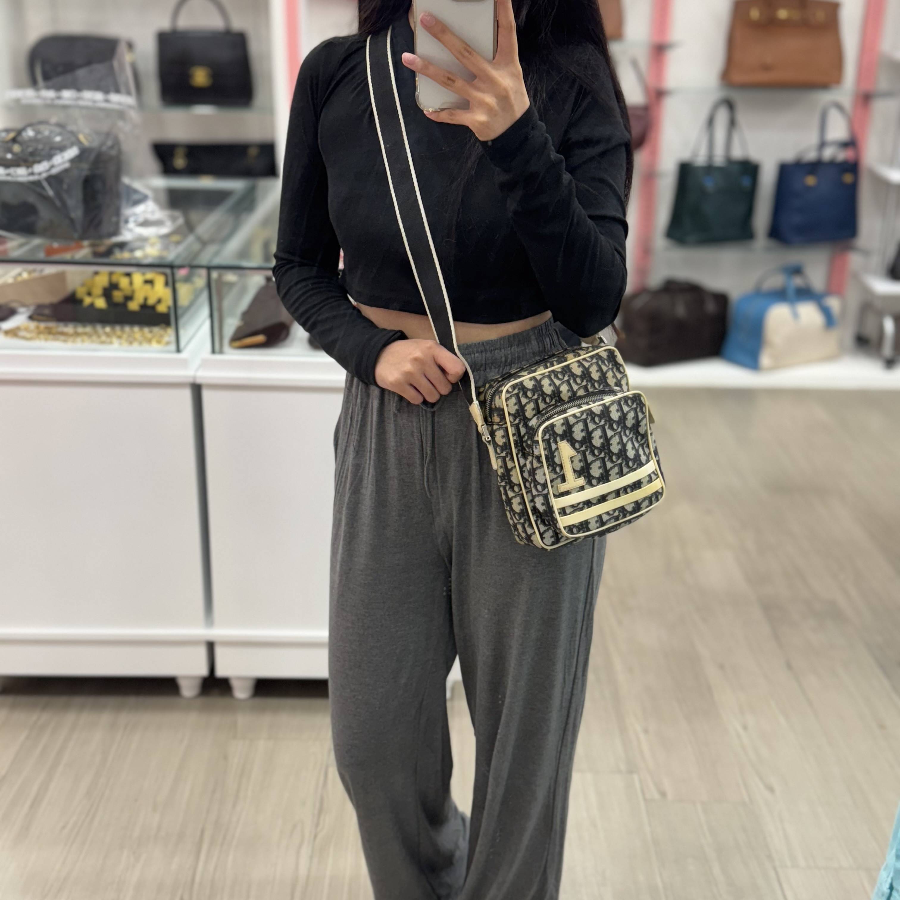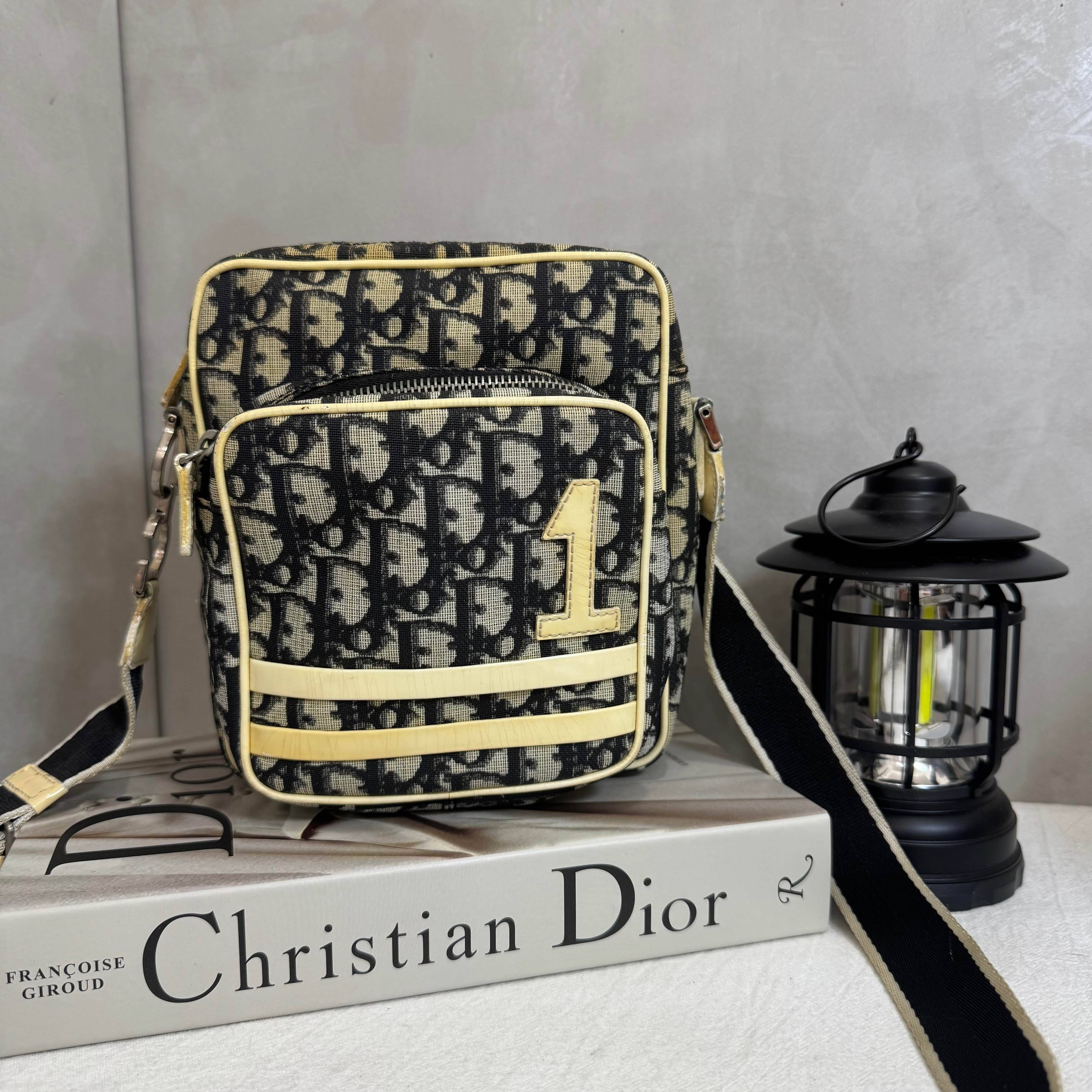 這款 Dior Oblique 斜背包,是 Galliano 時期最受追捧的「Number 1 Bag」。經典老花帆布結合米色皮革滾邊,正面標誌性「1」字設計,充滿Y2K復古街頭感。方正輪廓實用耐裝,搭配可調式肩背帶,無論日常休閒或潮流穿搭都能完美駕馭,是收藏與實用兼具的 Dior 經典款。