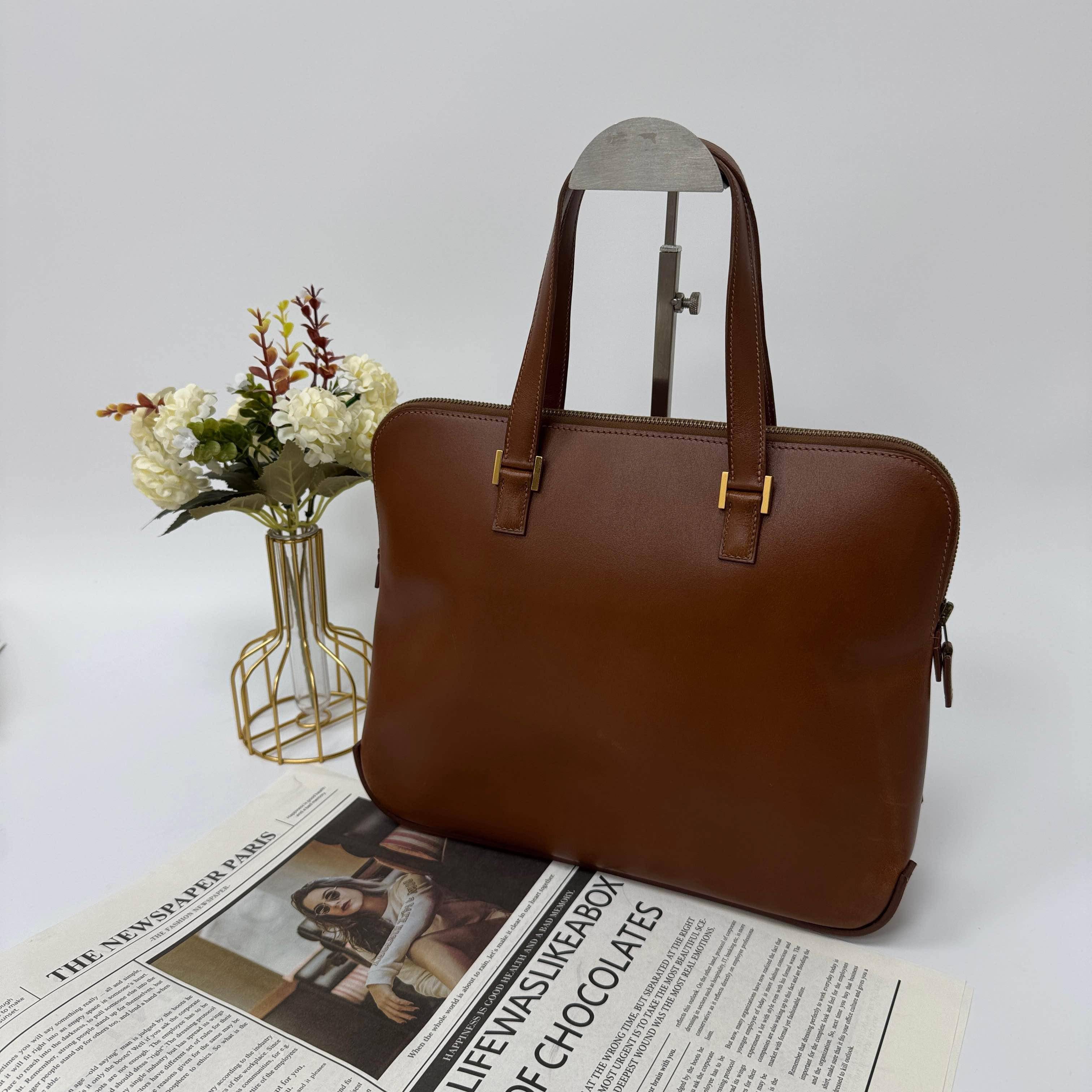 這款咖啡色Hermès 手提通勤包,以其簡約而經典的設計,完美詮釋了愛馬仕的精湛工藝與奢華格調。選用頂級皮革打造,觸感溫潤細膩,隨著時間流逝,更顯獨特韻味。