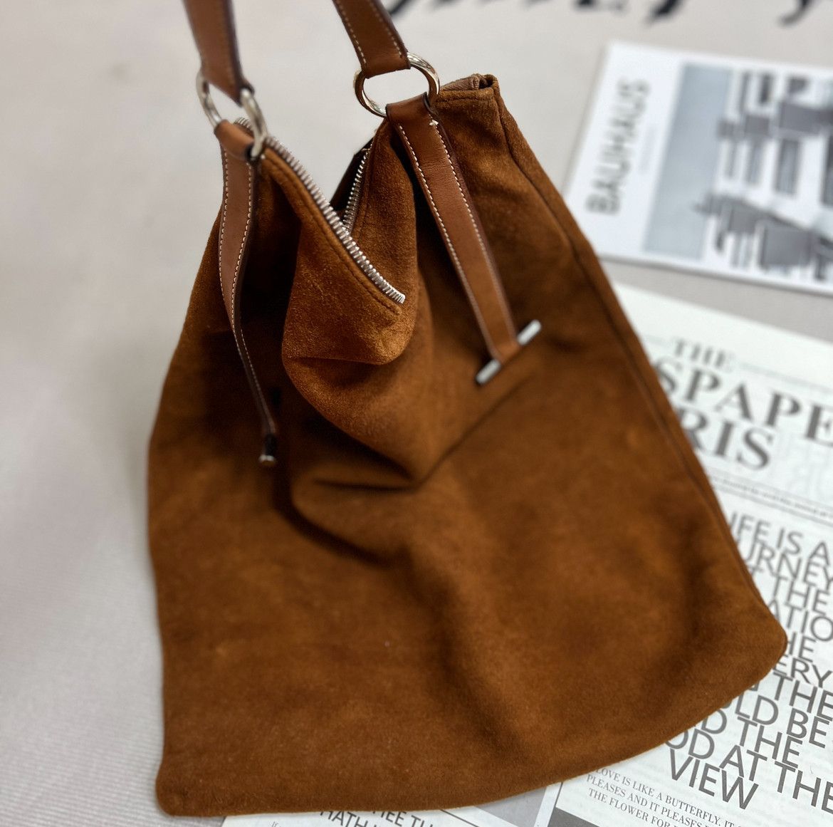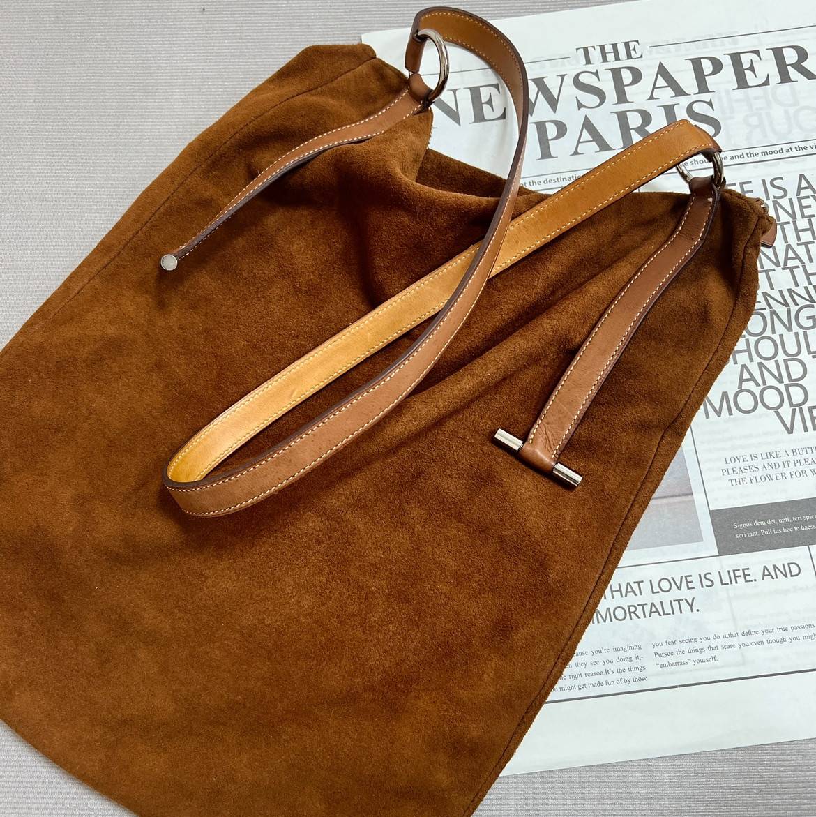 𝐇𝐞𝐫𝐦𝐞𝐬 𝐦𝐚𝐫𝐠𝐢𝐫𝐥𝐚時期的麂皮獵人包包,超軟糯的皮質可以捲起來,有個金屬卡扣卡住細節拿捏,超時髦的愛馬仕包~男女通用,稀少難遇ꨄ