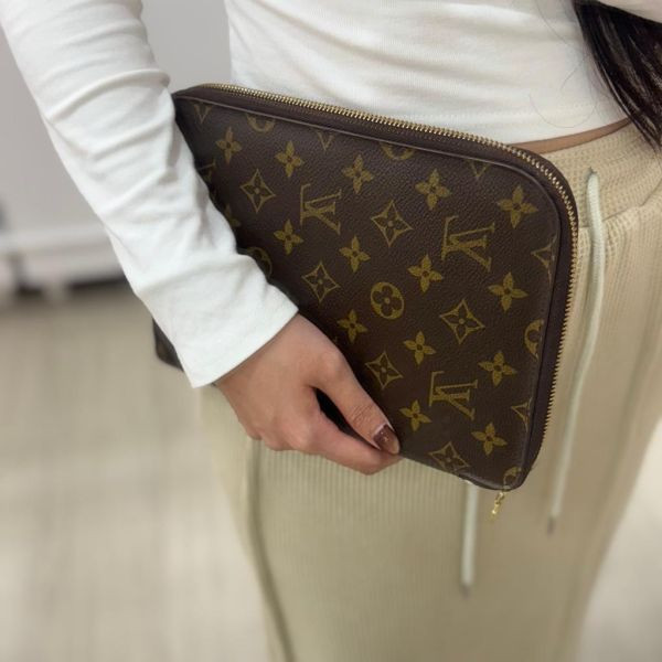 經典時尚,從容出行。Louis Vuitton GM Zip Organizer 將經典 Monogram 老花圖騰與實用機能完美結合,無論是出差還是度假旅行,一包在手,優雅整齊不費力。全拉鍊設計確保您的證件與筆記安全無虞,沉穩棕色內裡更顯低調質感,完美體現 LV 的細節工藝與奢華品味。