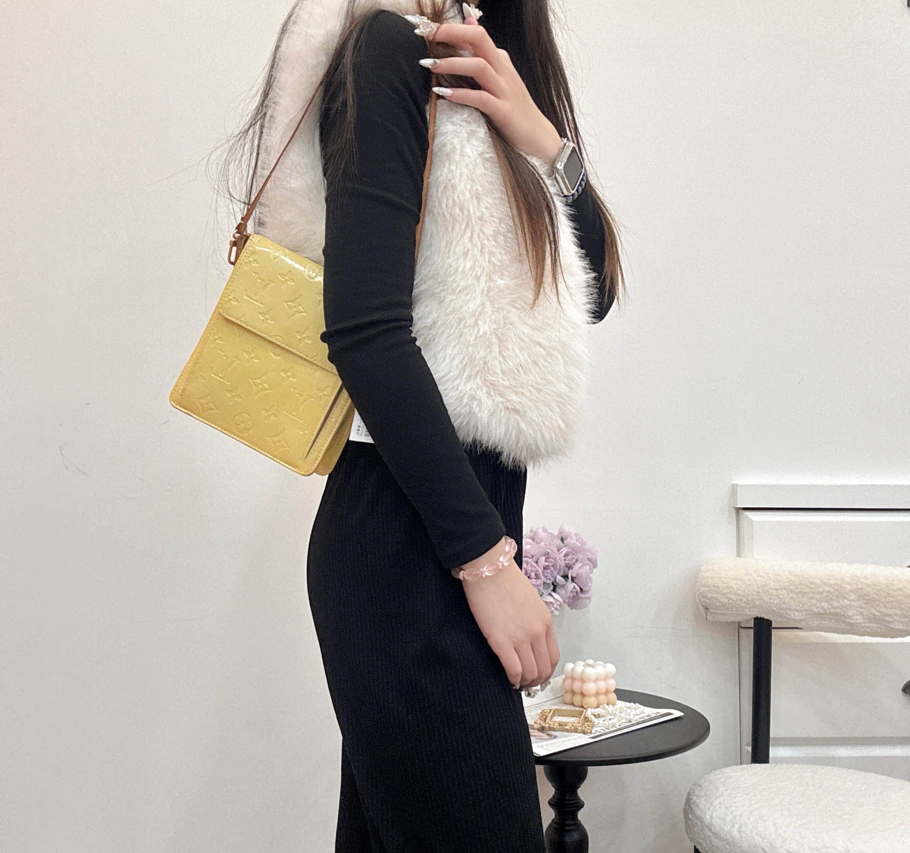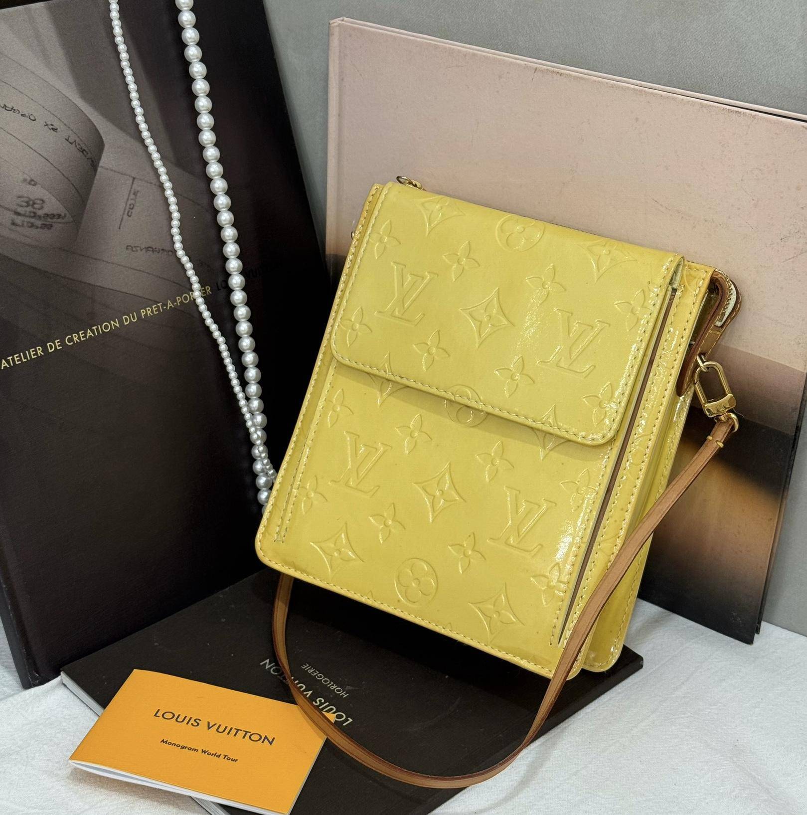 VLV這款中古漆皮相機包,檸檬黃配Monogram壓紋,超有光澤感!小巧竪版設計,主隔層+翻蓋小口袋,收納方便。肩帶可調節,單肩or斜挎都OK,日常出街解放雙手超實用。漆皮雖易吸色,但復古感滿滿,春夏搭配活力十足。