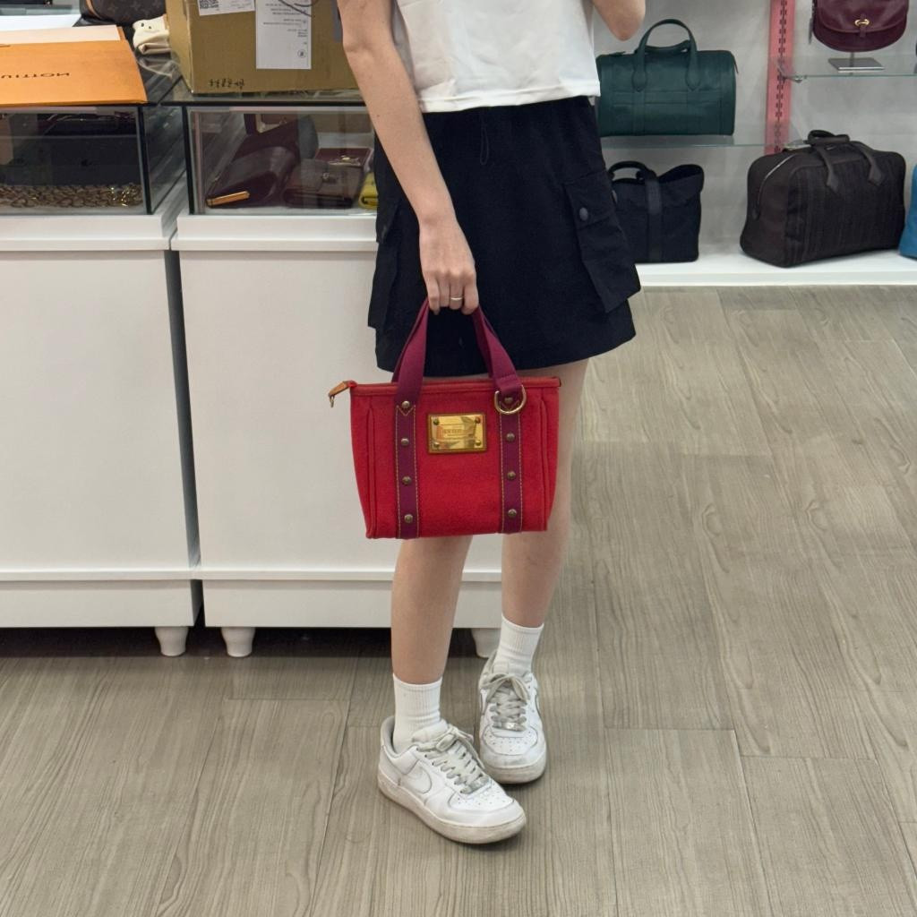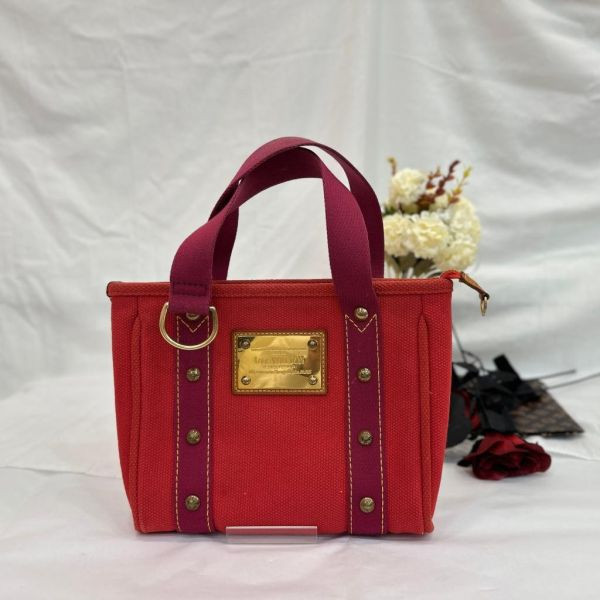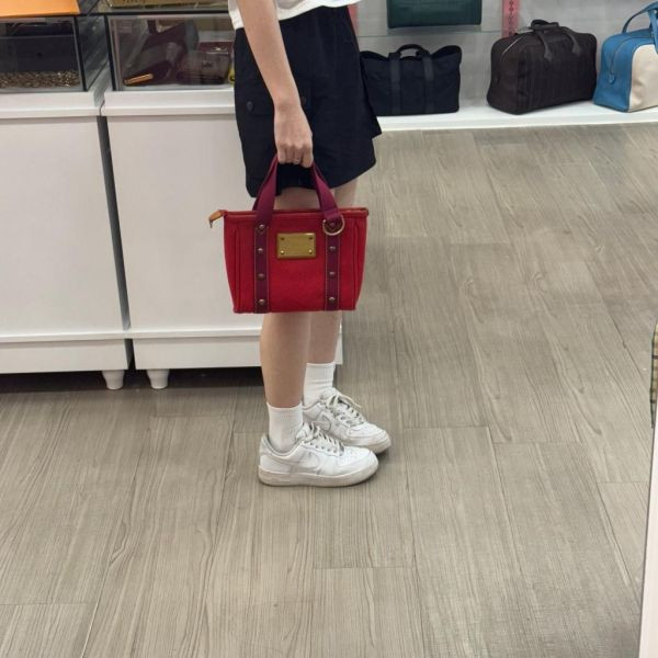 LV這款紅色帆布手提包,搭配金色銘牌和鉚釘,簡約又有辨識度!小號竪版設計,輕便耐用,通勤休閒都很適合些。內部空間剛好,手機錢包輕鬆收納,拉鍊開合更安全全。