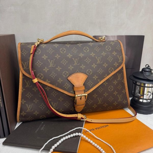 LV Bel Air中古老花公文包,經典Monogram老花帆布+植鞣革飾邊,復古又耐用!翻蓋+扣帶設計,靈感來自劍橋包,容量大,通勤或短途旅行都超實用。支持手提、單肩、斜挎多種背法,靈活百搭。中古市場超受歡迎,收藏價值滿滿,喜歡復古風的姐妹別錯過啦!