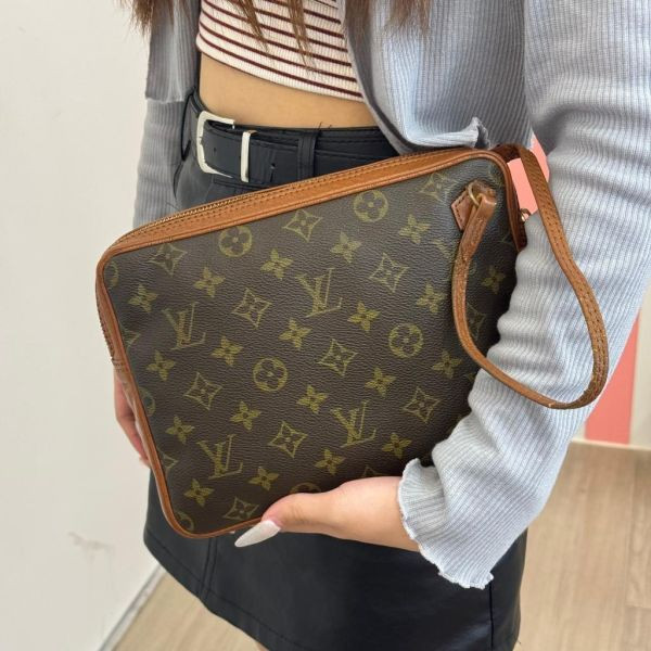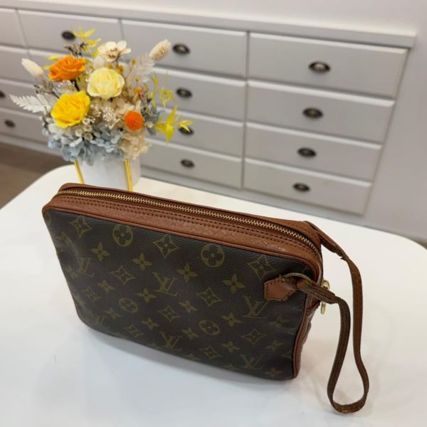 Louis Vuitton 經典 Monogram 手拿包,以細緻皮革搭配老花帆布,展現低調奢華的時尚美學。極具收藏價值的復古款式,完美詮釋永恆風格。輕巧卻能裝,一包搞定日常所需。拉鍊設計安全耐用,附有手腕帶攜帶更方便,是兼具實用與美感的理想之選。