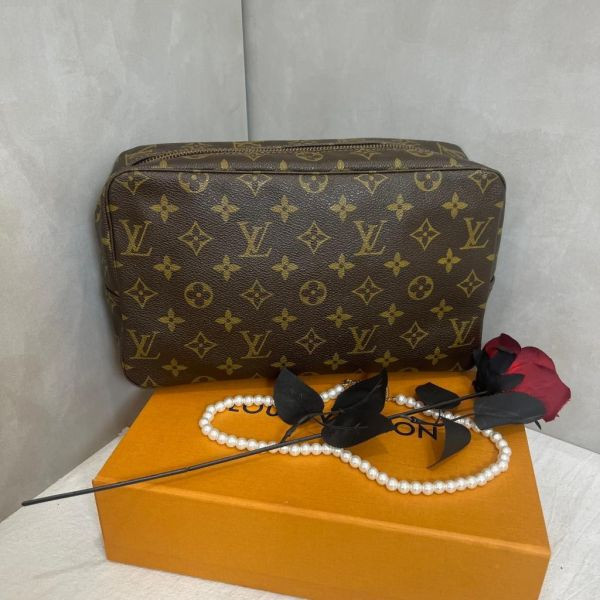 商品詳情 𒊹︎金屬顏色:金色𒊹︎尺寸:寬27x 高16x 深7.5(公分)𒊹︎產地:法國𒊹︎產品狀況:有標。約9.5成新。有輕微使用痕跡。四角無磨損。金屬輕微生鏽。𒊹︎配件:無 經典 LV 花紋,輕巧容量滿分,旅行日常皆適用的時尚化妝包。 Louis Vuitton 旅行化妝包 TWD $12,800 TWD $12,800