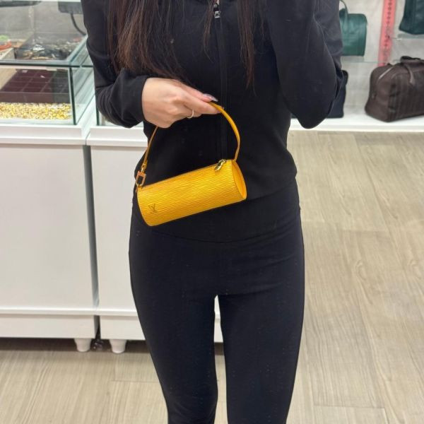 LV這款中古水波紋黃色圓筒包,採用經典