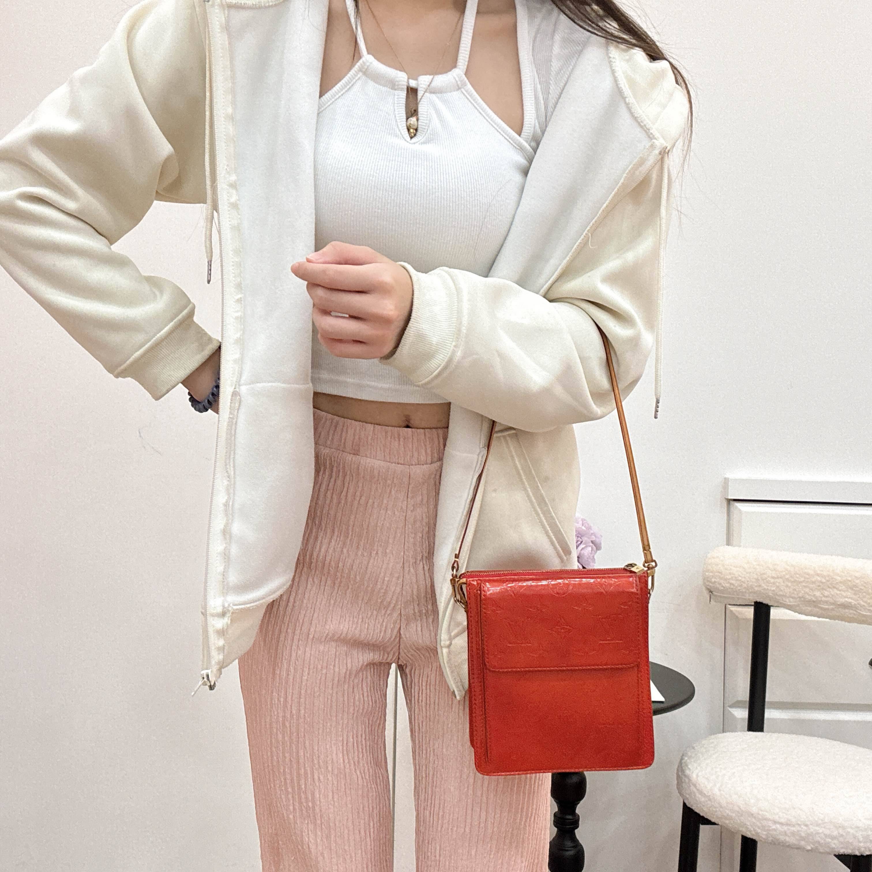 VLV這款中古漆皮紅色相機包,亮面漆皮+經典Monogram老花,紅色超顯眼,搭配金屬配件,復古感滿滿。包型硬挺,容量適中,日常出行剛剛好。肩帶可調節,單肩斜挎都OK,百搭各種穿搭!漆皮易吸色,記得細心保養哦~在中古市場超受歡迎,收藏價值高,喜歡復古風的姐妹別錯過!
