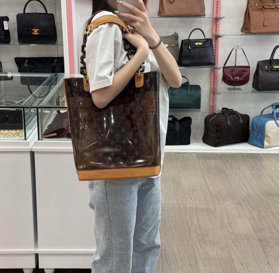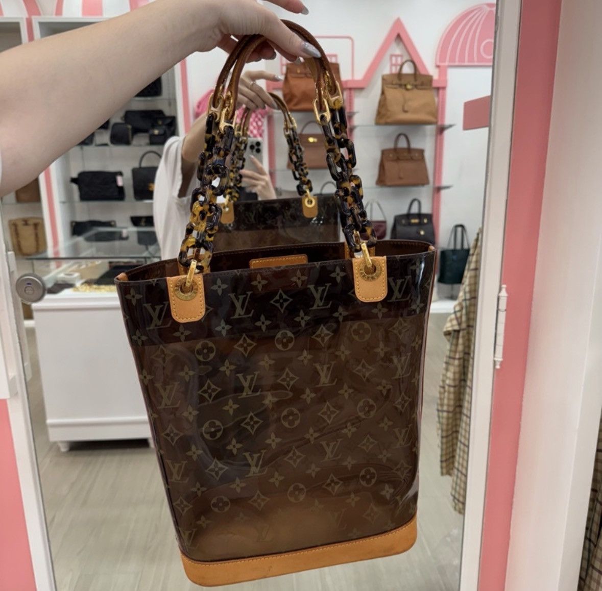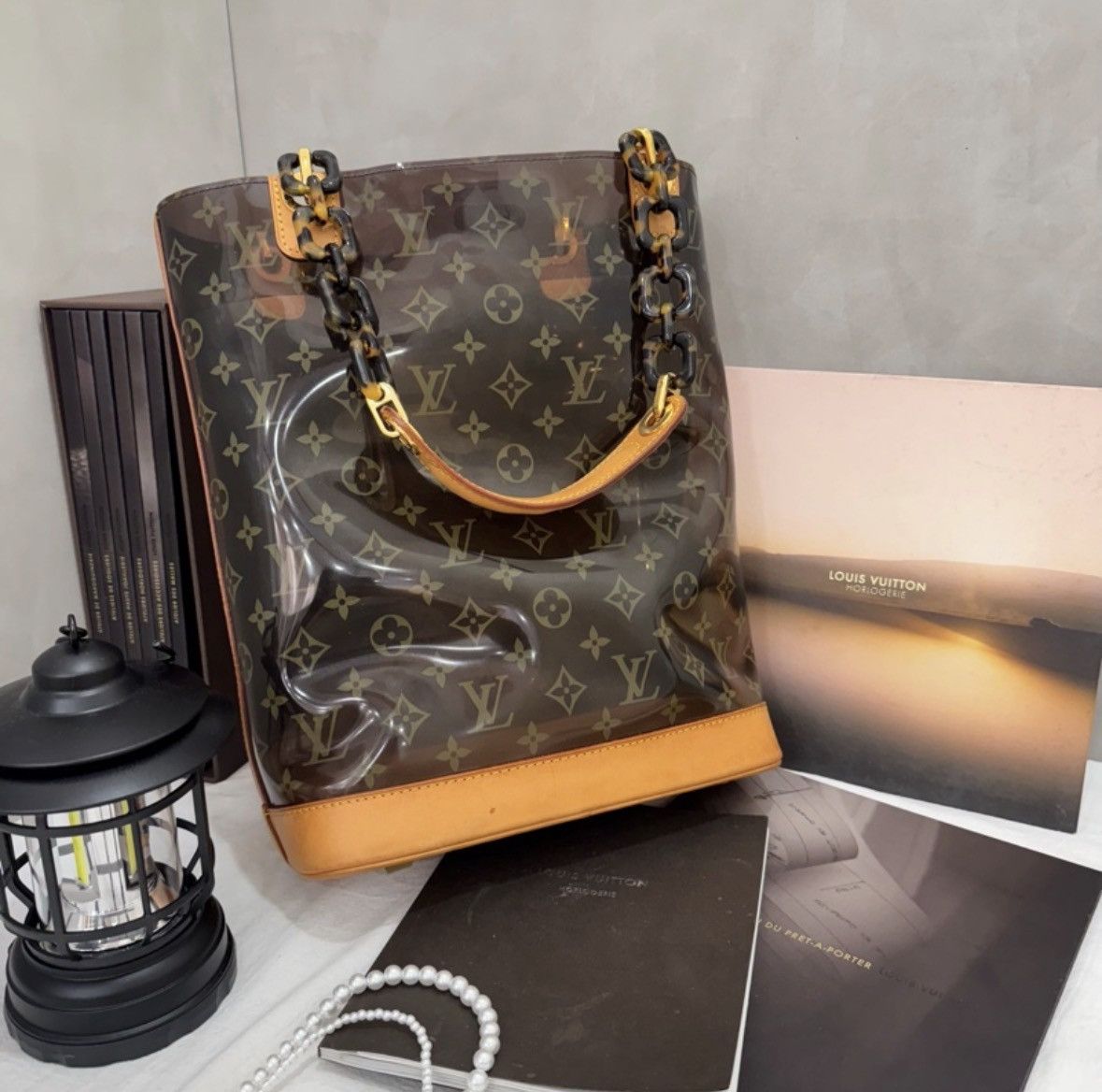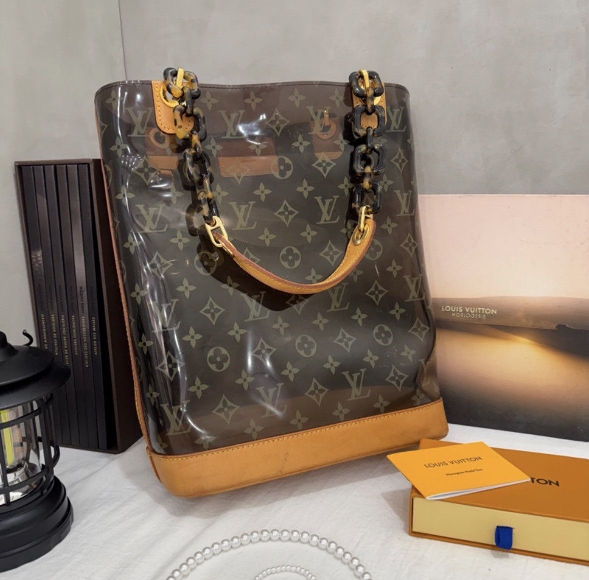 LV這款玳瑁透明沙灘包是2000年代限量秀款,採用PVC材質+玳瑁色手柄,夏日氛圍感拉滿!包身透明,能清晰看到內部物品,搭配經典