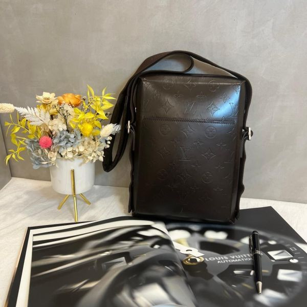 Louis Vuitton 深咖 Monogram 壓紋皮革斜背包,以俐落線條與優雅皮革質地,展現現代紳士的時尚風範。每一個細節,都是對品味的完美詮釋。