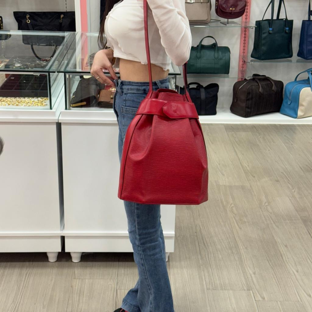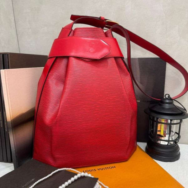 Louis Vuitton 經典紅色水桶包,以其標誌性的優雅造型與亮眼的紅色調,完美展現時尚魅力。 寬敞的內部空間與實用設計,是您日常穿搭的亮點單品。