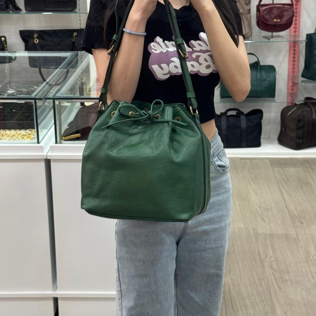 Louis Vuitton Noé Epi 水桶包,誕生於 1932 年,最初為香檳酒商設計,如今成為經典時尚象徵。獨特色澤綠,將高級與活力完美融合,是少見的珍藏色。
