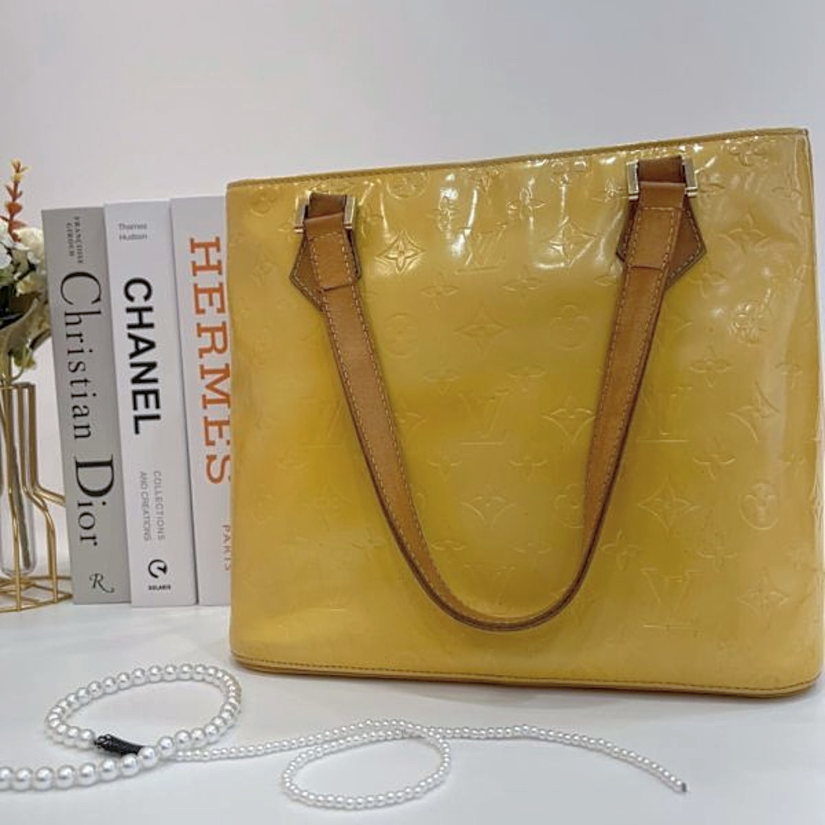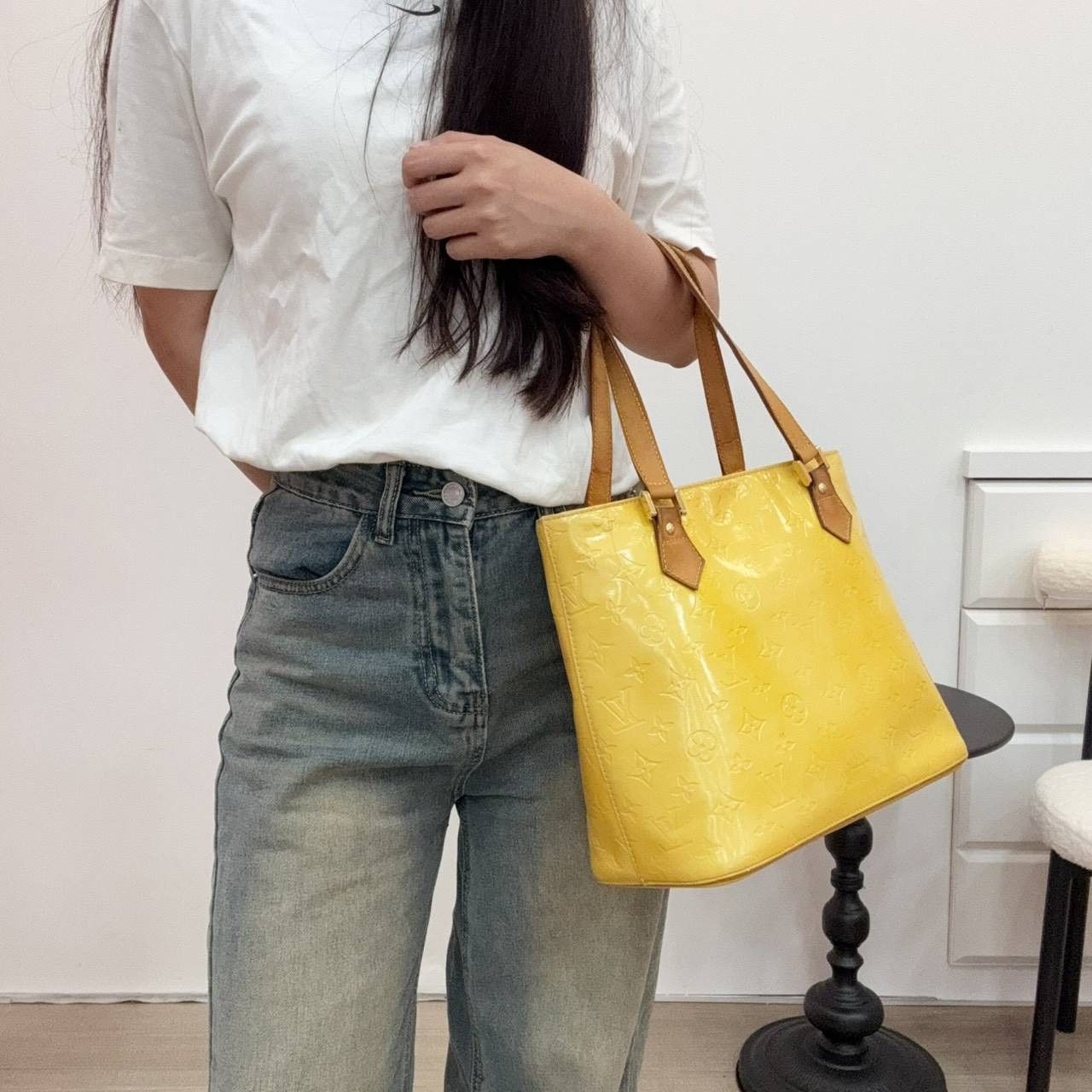 Louis Vuitton Vernis 系列 Vivienne 漆皮托特手袋,亮黃色漆皮+經典壓紋,搭配牛皮肩帶,展現獨特光澤質感。簡約又超有辨識度。包身方正,容量大,通勤日常都很OK!輕巧實用又時尚,日常或出遊皆能成為造型焦點。這款包常見於中古市場,復古風&個性穿搭必備!