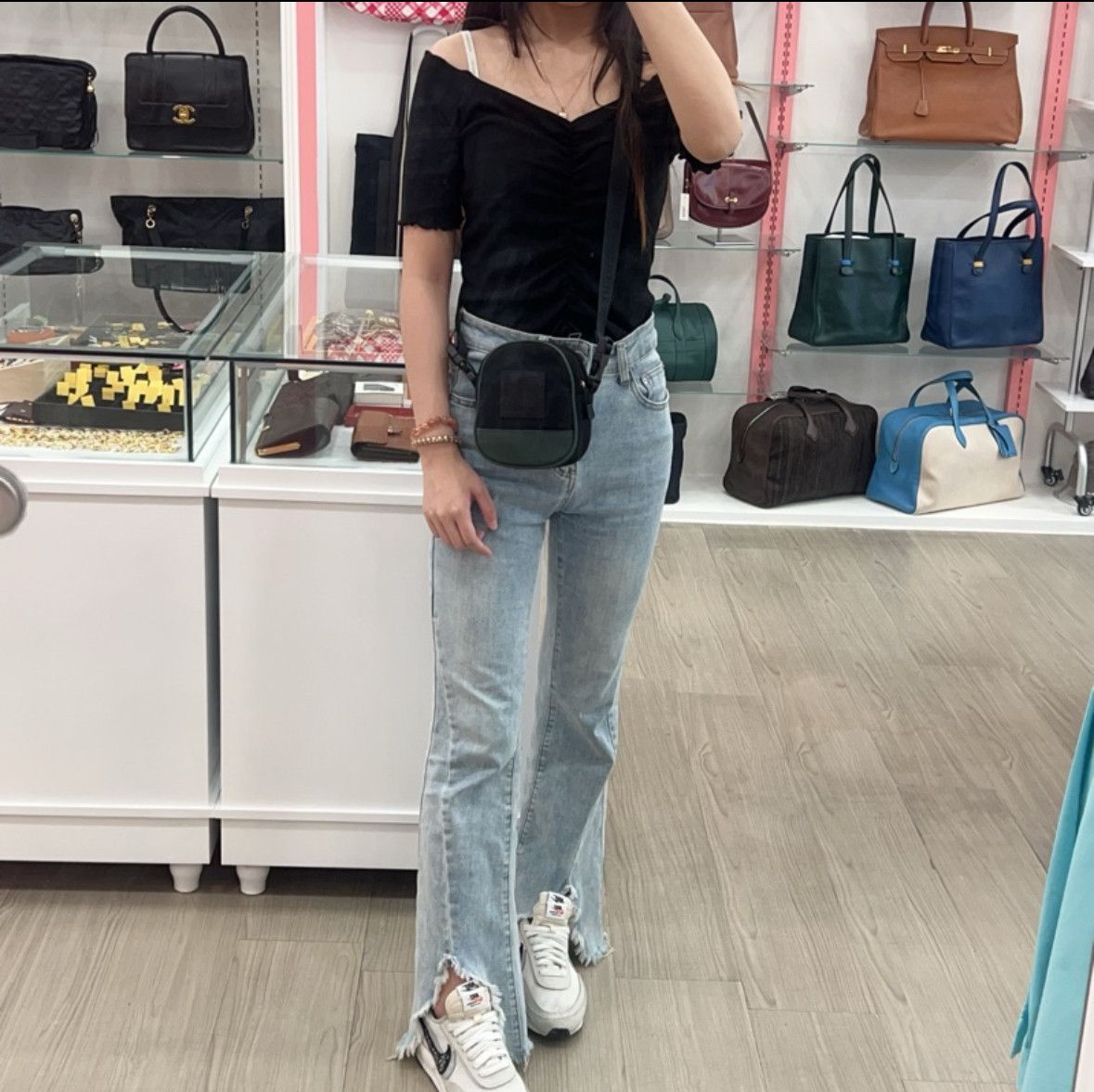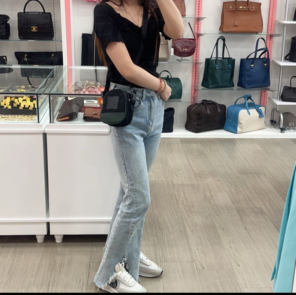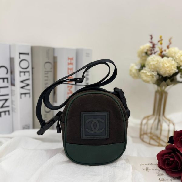 香奈兒黑綠拼色運動斜挎包