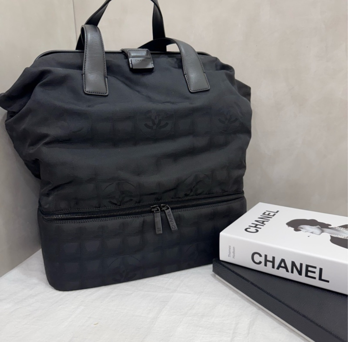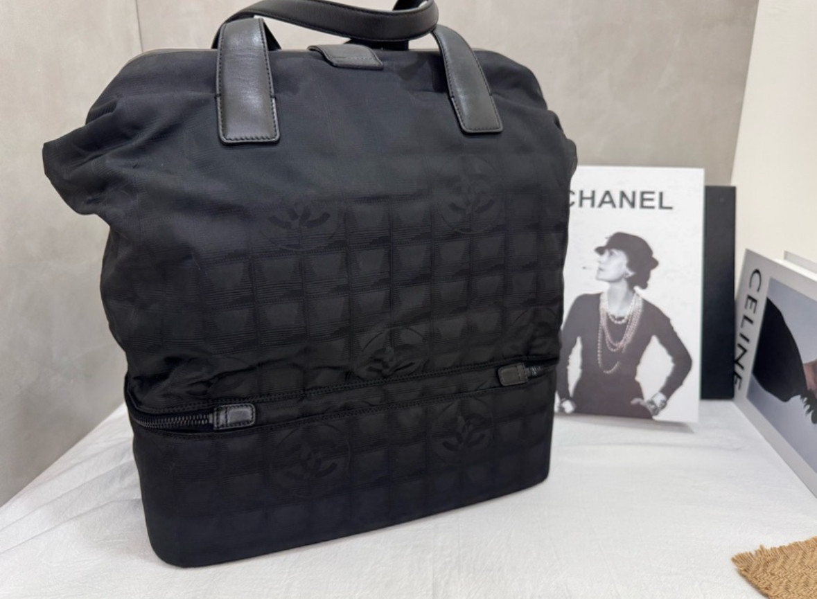 這款香奈兒Travel Line冰格包是中古市場超火的經典款!黑色尼龍材質+同色暗紋,低調又有質感。包身輕盈,容量超大,通勤裝電腦文件或當媽咪包都很OK。標誌性菱格紋理+皮革手柄,簡約又耐用,日常出街超百搭!