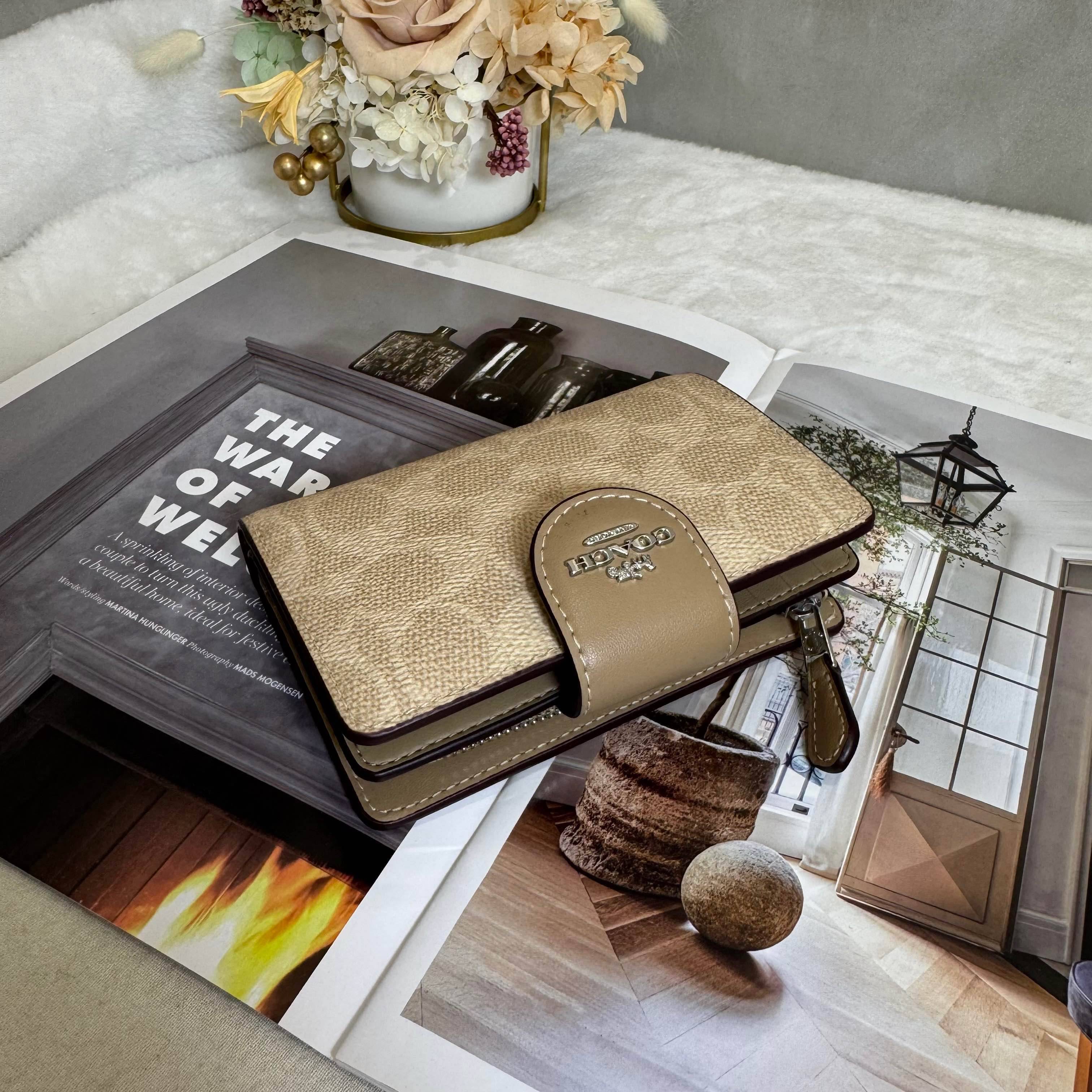 商品詳情 (全新商品)美國直寄 ·材質:皮革·金屬顏色:銀色·尺寸:寬13x 高9x 深 1(公分)·產地:越南·產品狀況:全新商品。開放式零錢層。內裏十層卡層。·配件:盒子 Coach 馬車短夾 TWD $4,680 TWD$ 4,680