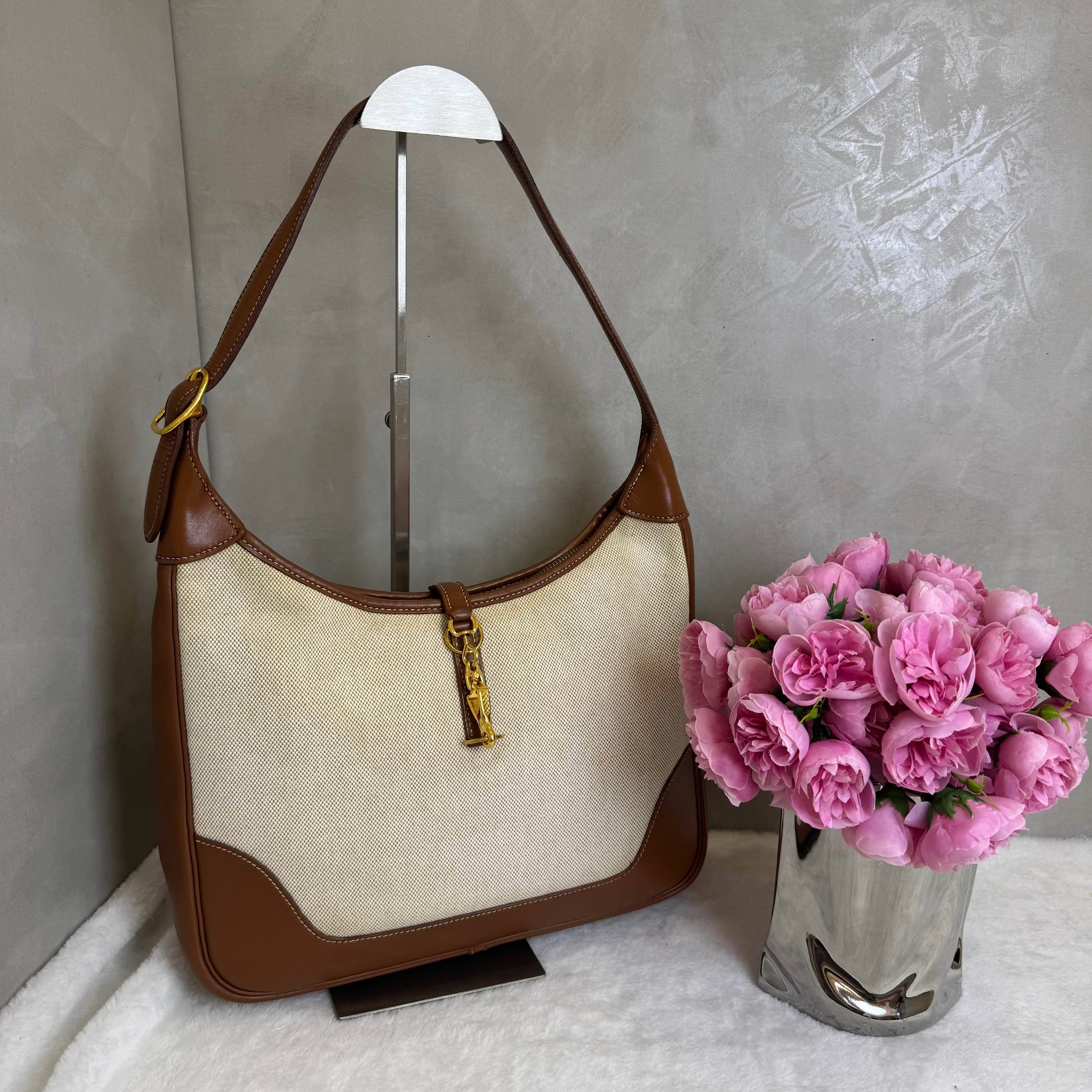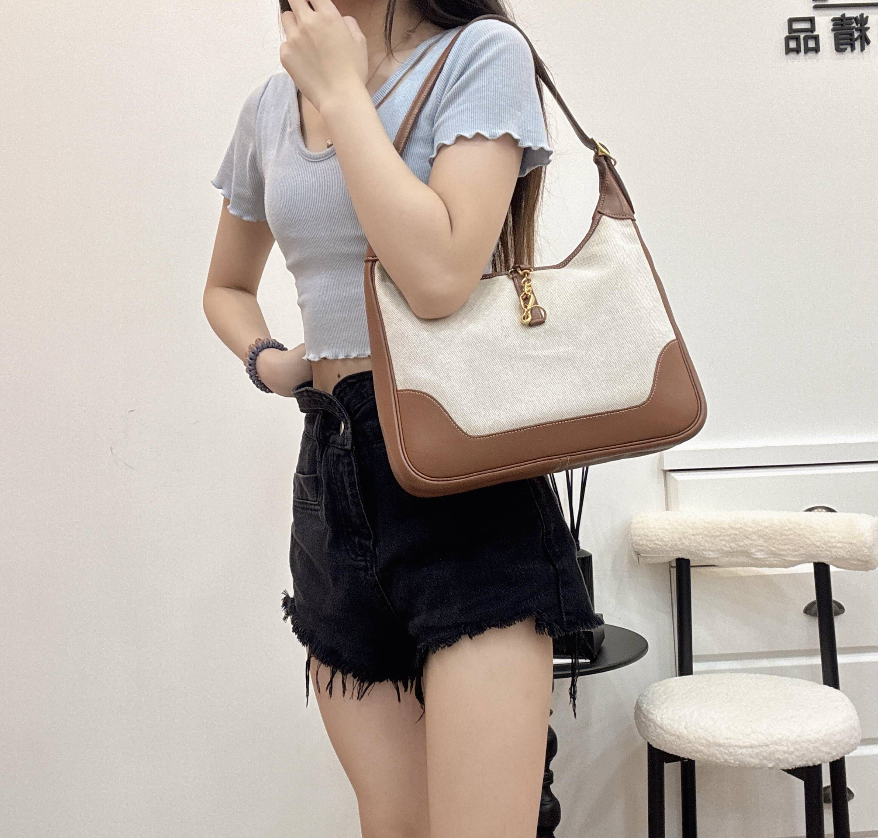 這款愛馬仕Vintage Trim 31手袋是中古稀有款,帆布拼馬鞍皮+金屬金扣,復古感滿滿!金棕拼米色配色超有氛圍,容量適中,通勤休閒都OK✨。腋下包設計,法式優雅實用,低調無Logo,適合喜歡獨特品味的姊妹。歲月沉澱後更顯價值,是中古包愛好者的夢中情包!