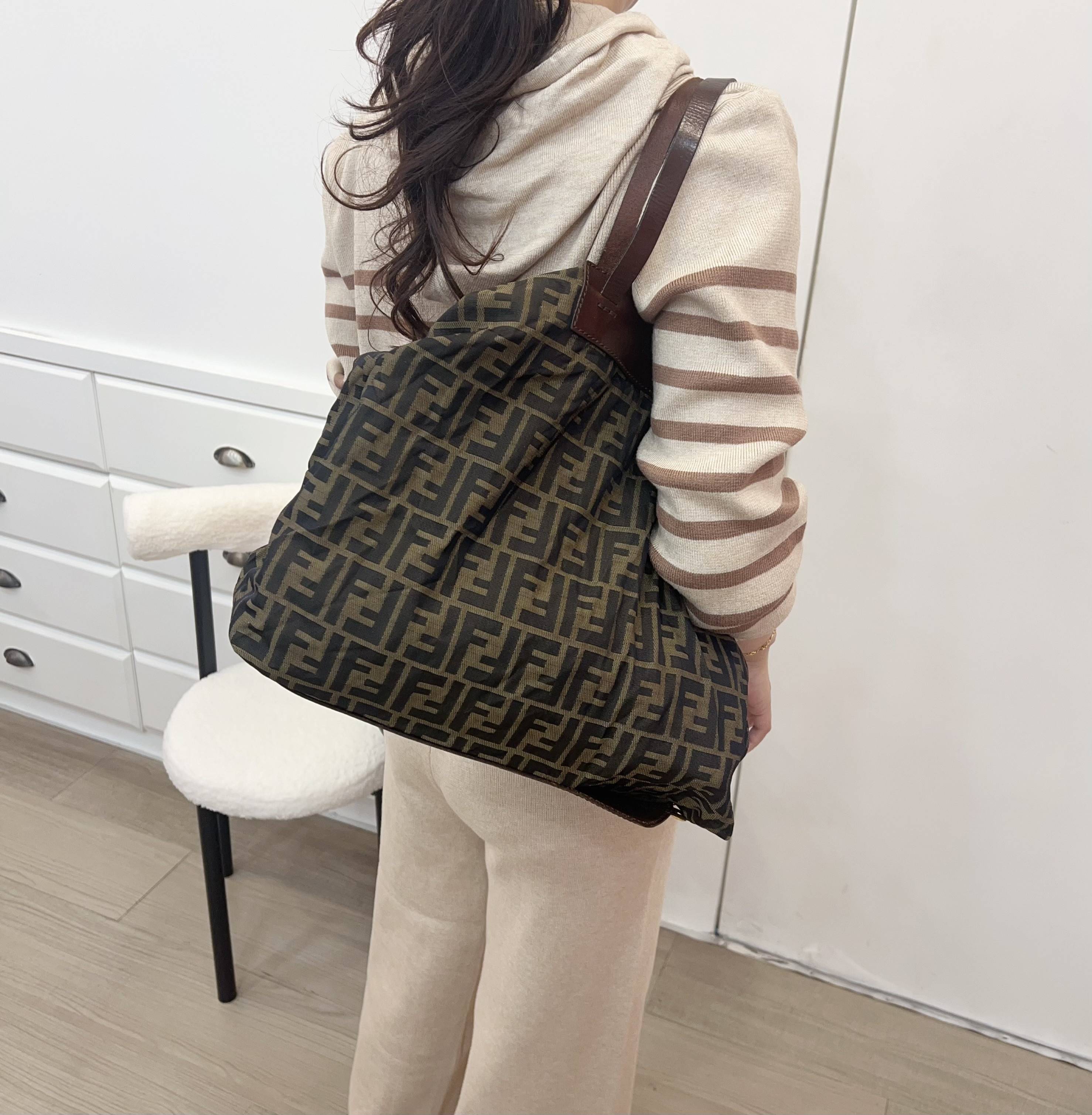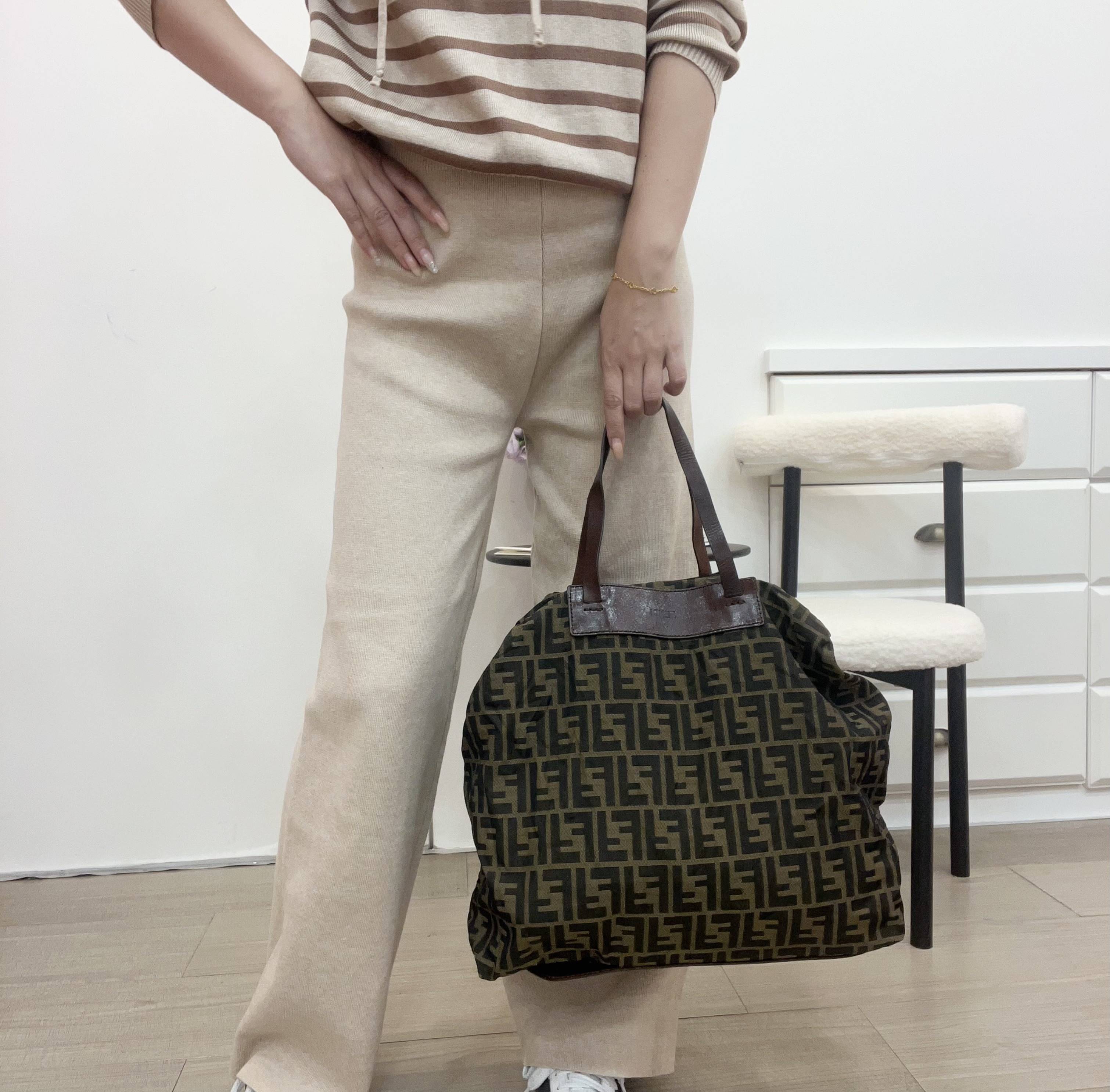𝐅𝐞𝐧𝐝𝐢中古老花托特包,包身柔軟可折疊扣起來,好收納超方便,容量大,通勤or短途旅行都OK艹。手提設計簡約大方,百搭各種穿搭,實用又時髦,是中古包愛好者的熱門選擇!