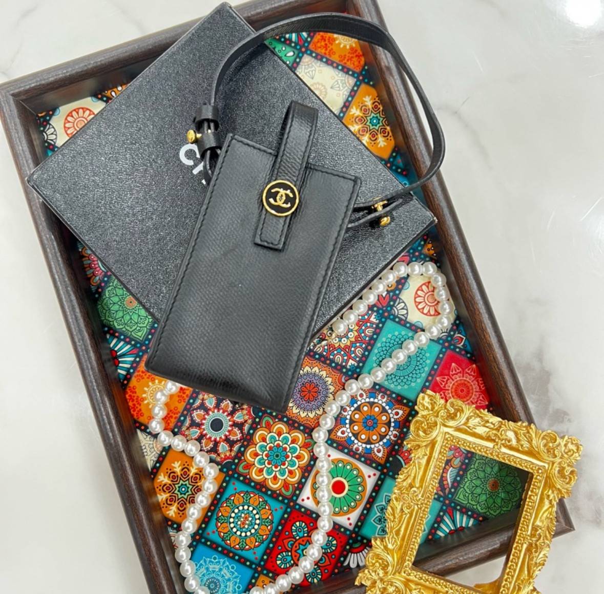 香奈兒中古手機包,採用黑色荔枝紋牛皮,耐磨又有質感。正面金色雙C標誌超經典,頂部提手+可拆卸肩帶,手提斜挎都OK!小巧精緻,能裝手機、口紅、鑰匙等小物,復古百搭,日常出街或凹造型都很出彩十。喜歡中古風的姐妹一定要入手!