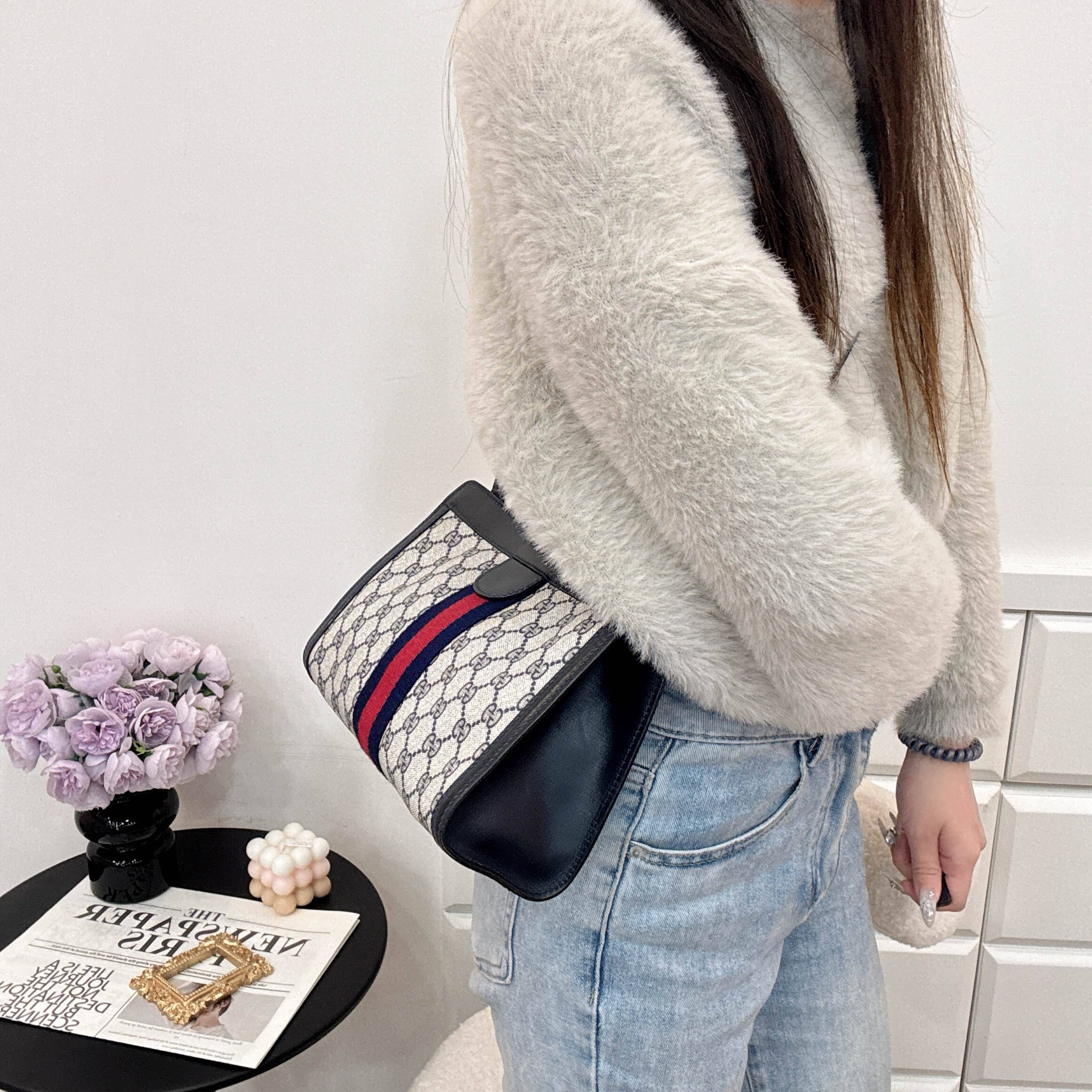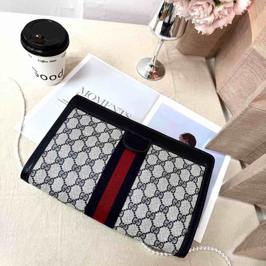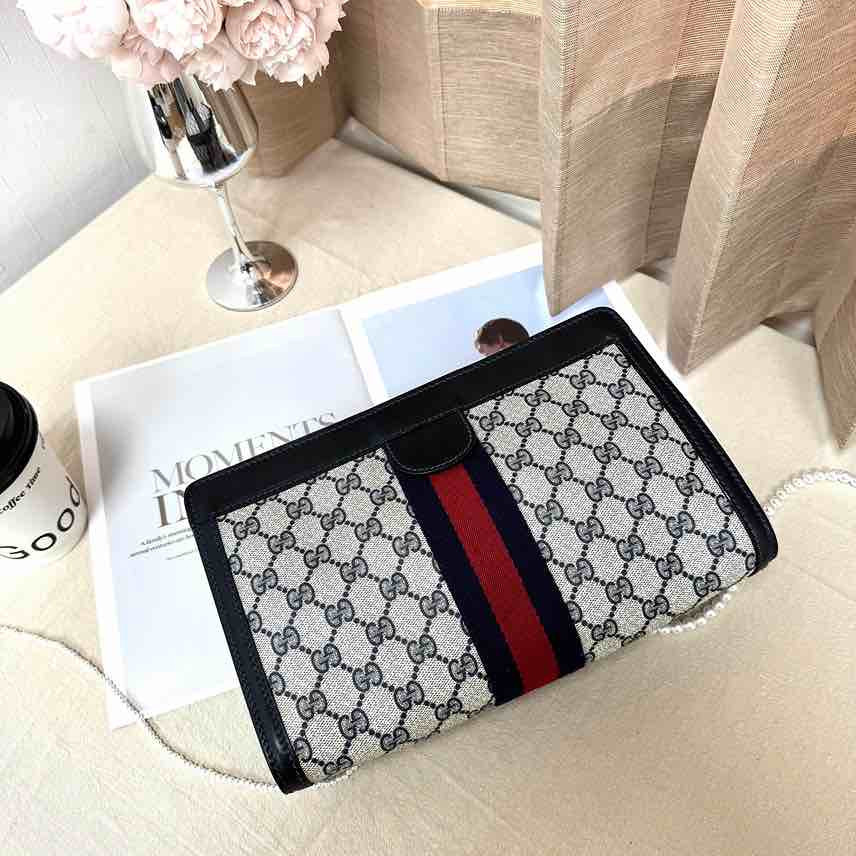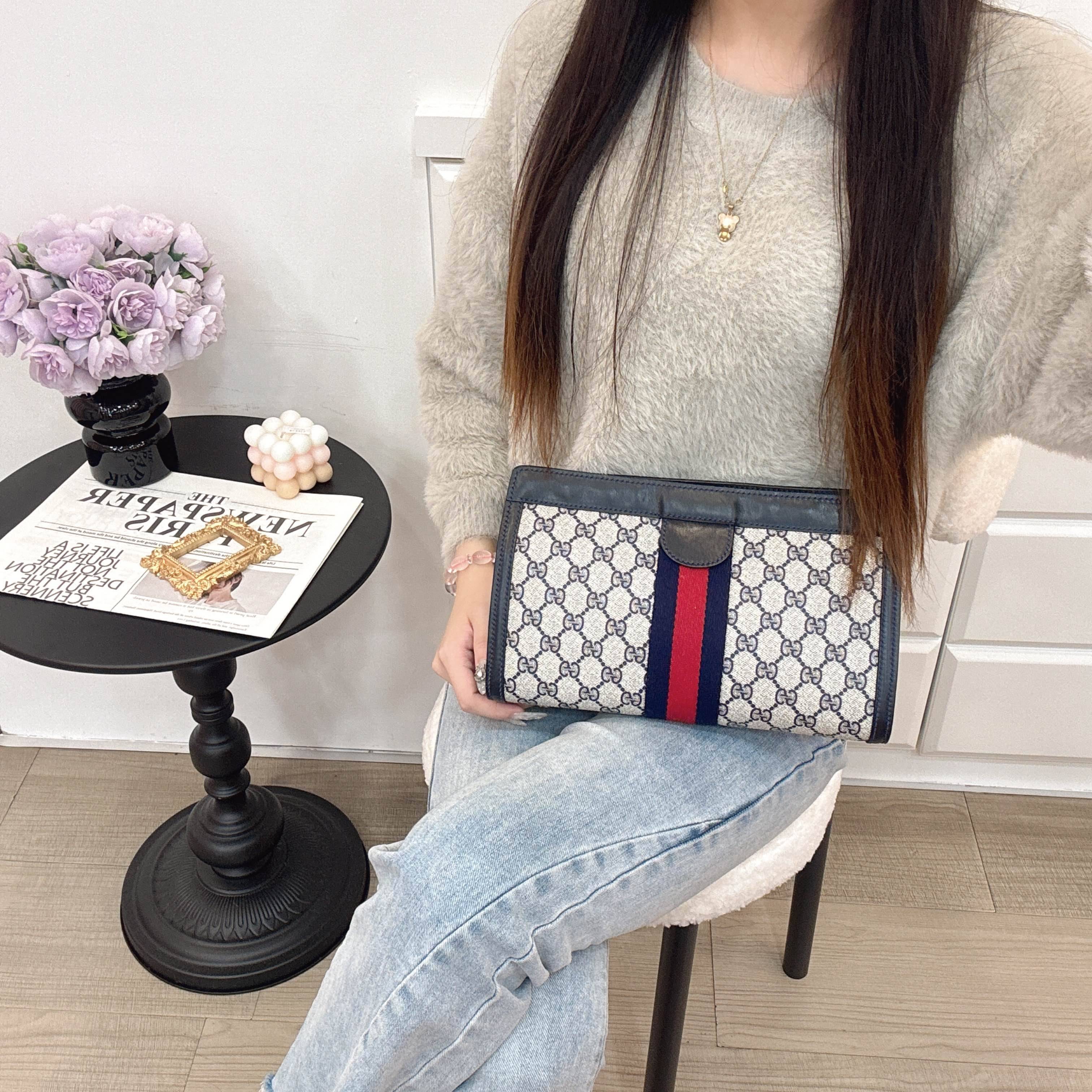 商品詳情 𒊹︎材質:皮革、pvc𒊹︎尺寸:寬 28 x 高 18 x 深 8(公分)𒊹︎產地:義大利𒊹︎產品狀況:有使用痕跡。內裏乾淨。整體狀況好。𒊹︎配件:無 Gucci 經典 GG ,搭配標誌紅藍織帶,低調中帶出品牌識別。容量實用、線條俐落,無論日常使用或當手拿包都非常合適,耐看又不退流行。 Gucci 手拿包 TWD $11,800 TWD $11,800