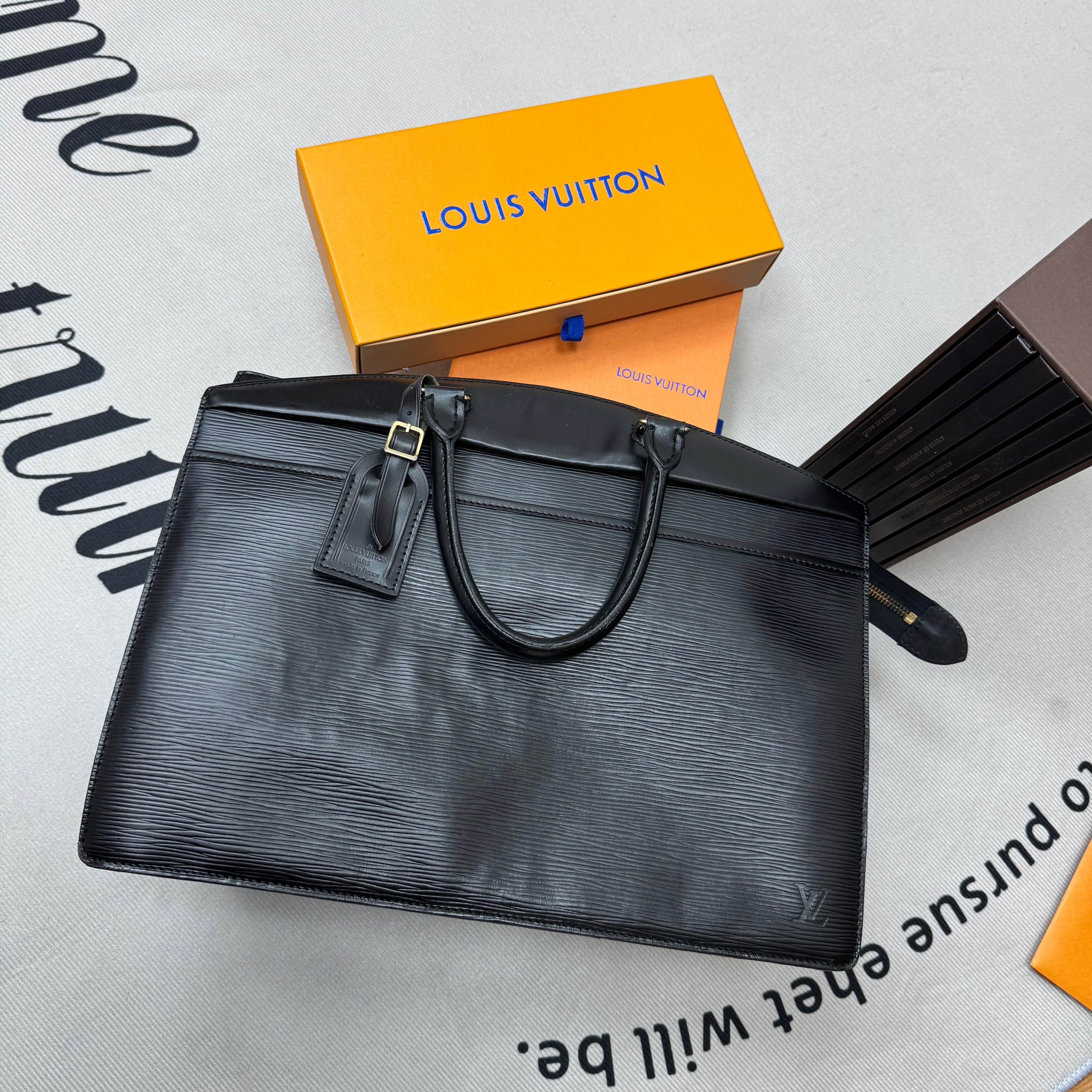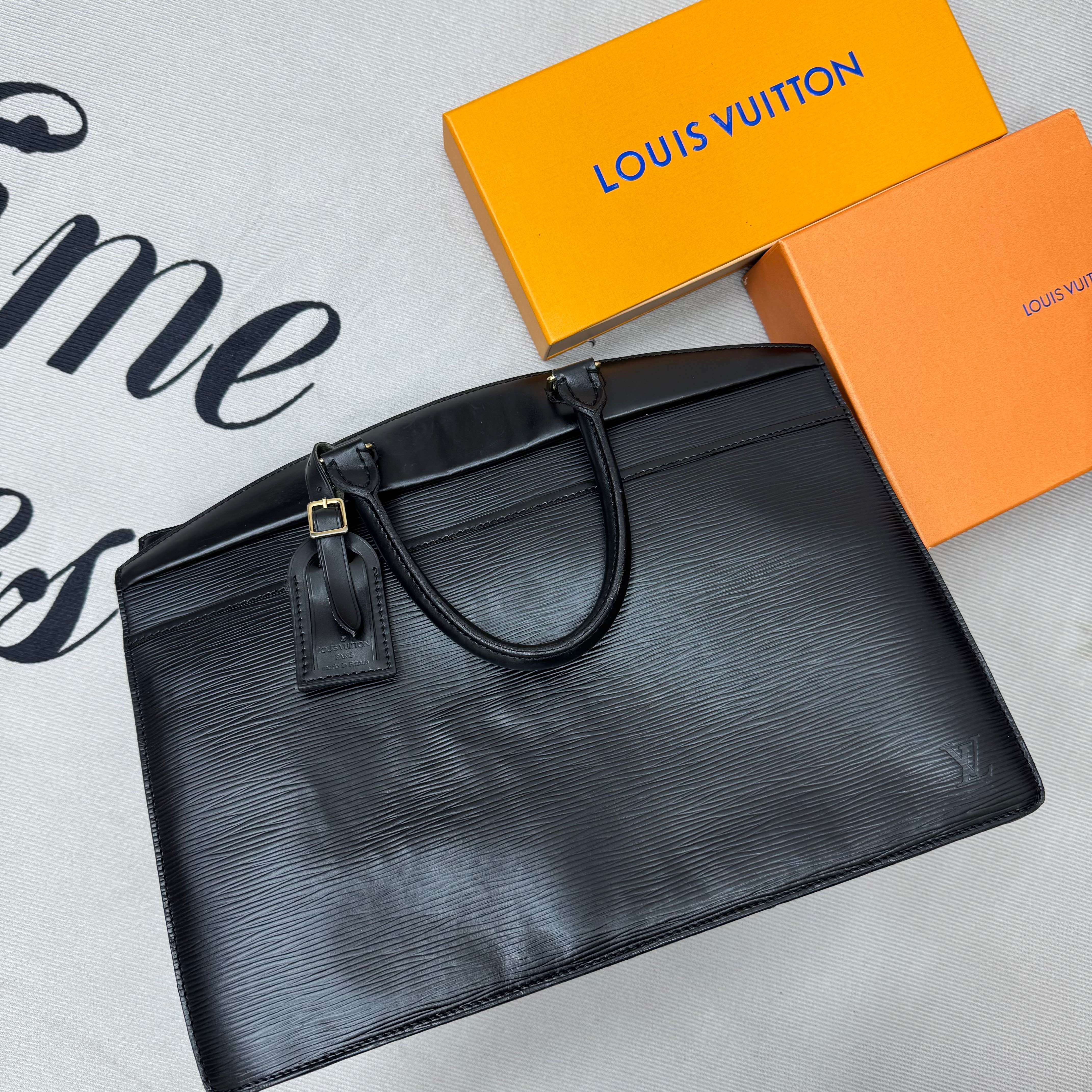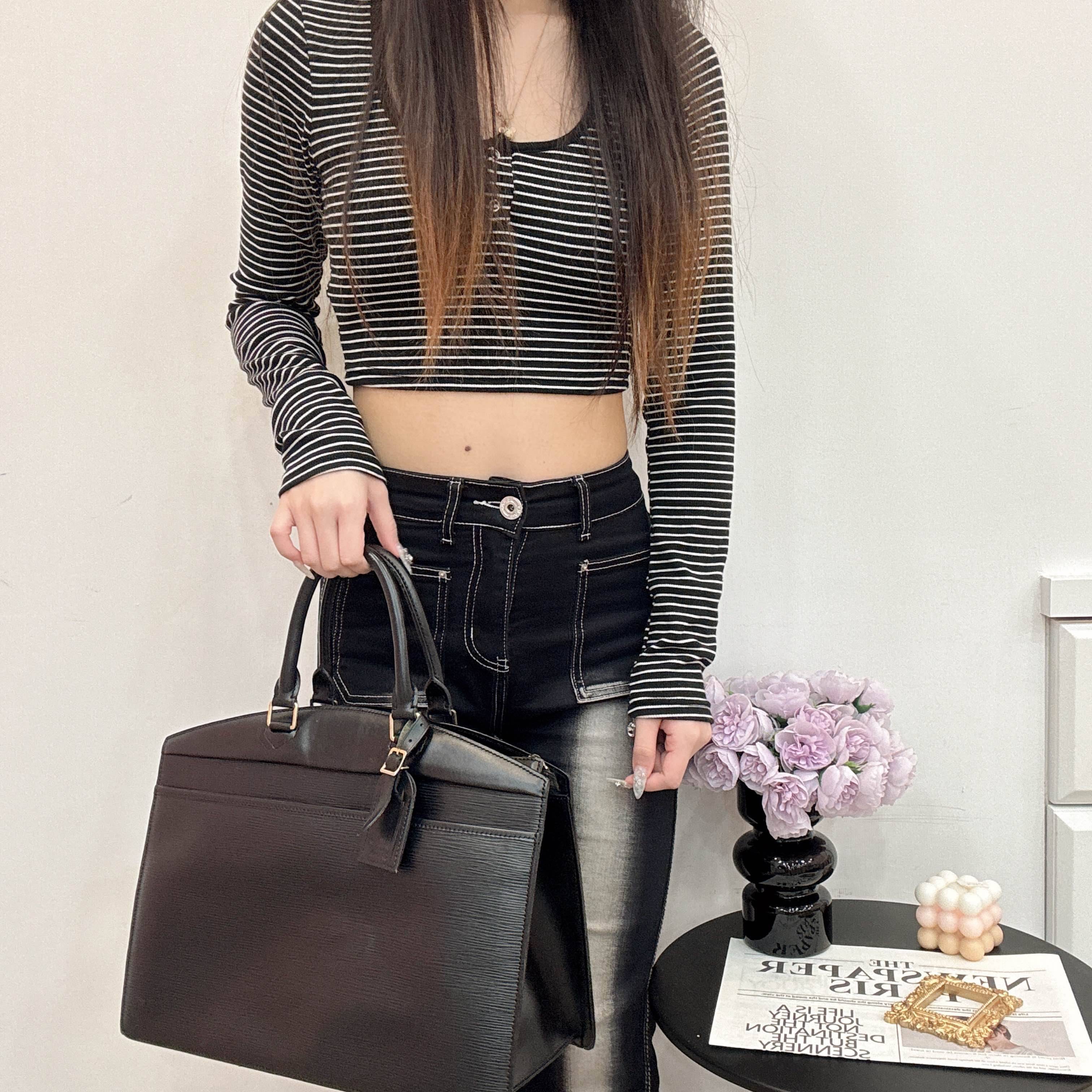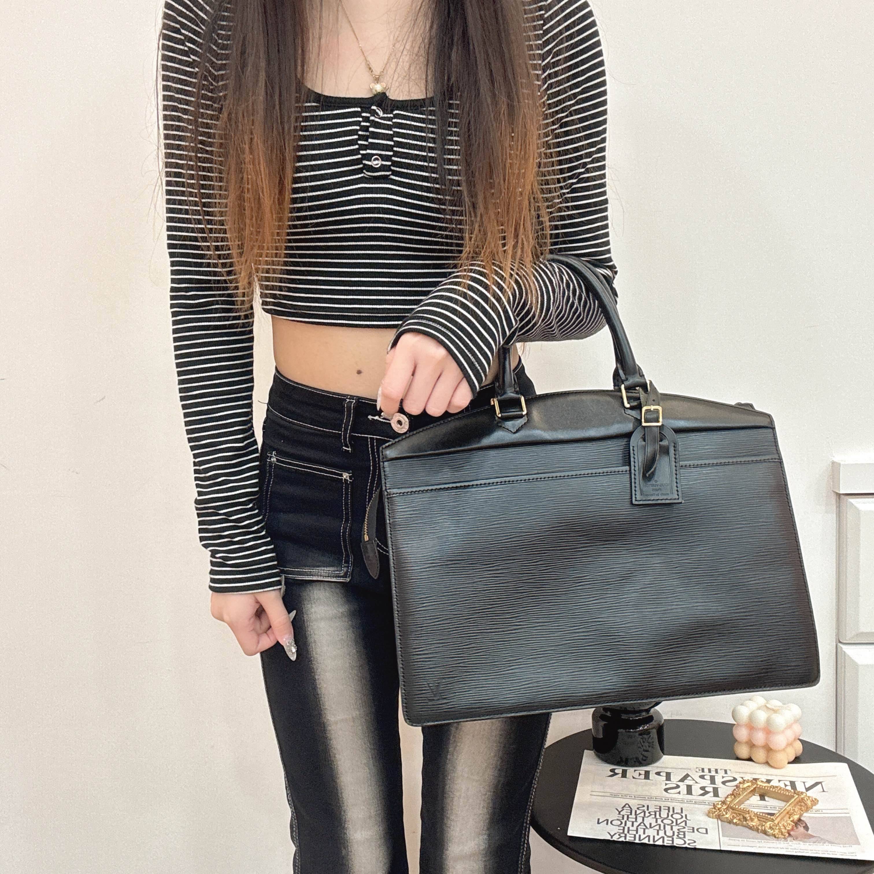 Louis Vuitton 經典 Epi 系列黑色手提包,硬挺包身、皮革紋路細緻,展現法式低調奢華。復古又實背,歷久彌新,值得收藏的一款老包。