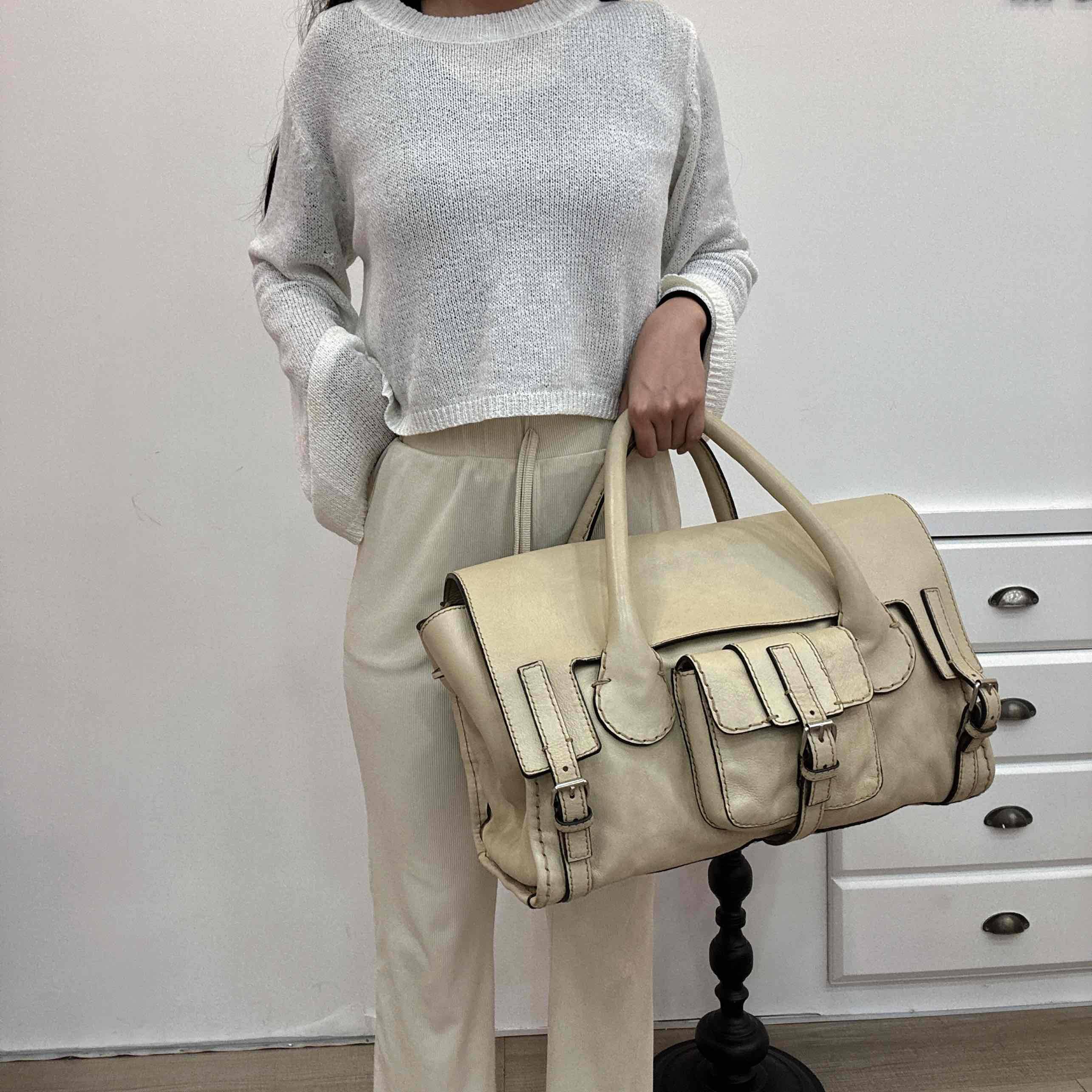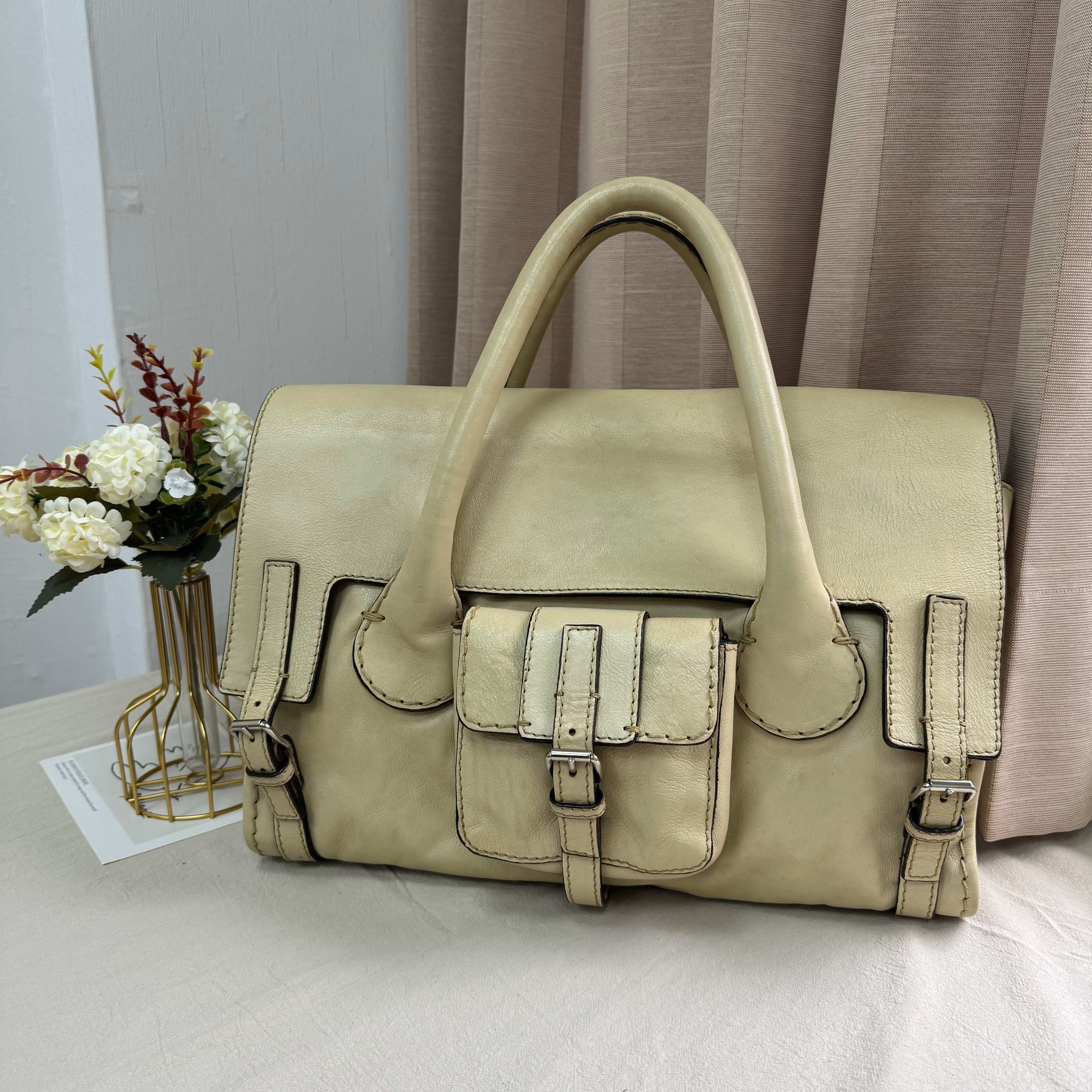 Chloé Edith系列手袋,米白色水牛皮材質,搭配亞麻襯里和精緻壓花皮革標籤,展現品牌工藝✨。正面功能性搭扣口袋,實用又有復古感。圓潤提手底座+可拆卸背帶,手提、肩背、斜挎都OK,通勤休閒都能輕鬆駕馭👜。淡褐色縫線細節,馬術運動風格,法式優雅與現代感兼具,是Chloé經典熱門款!