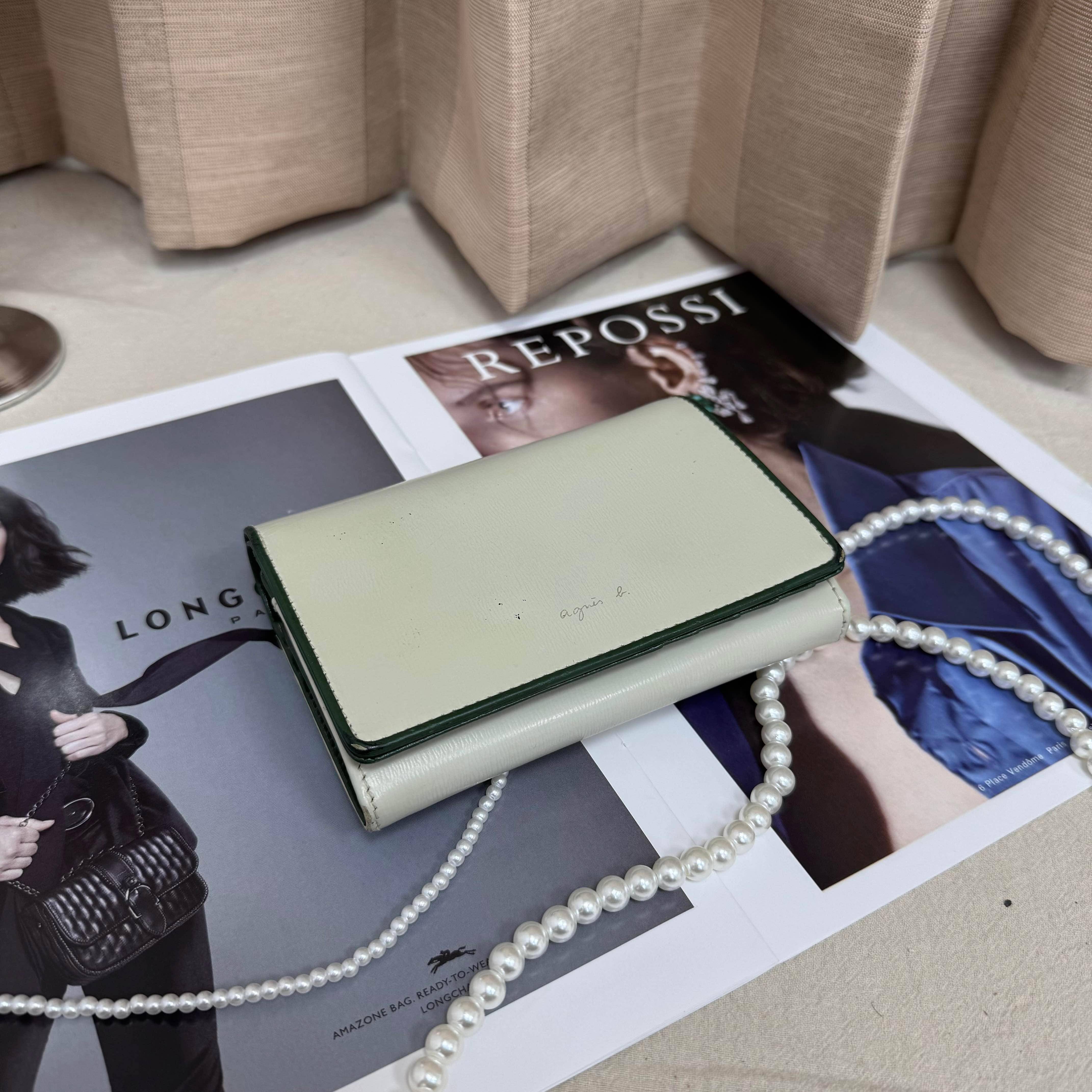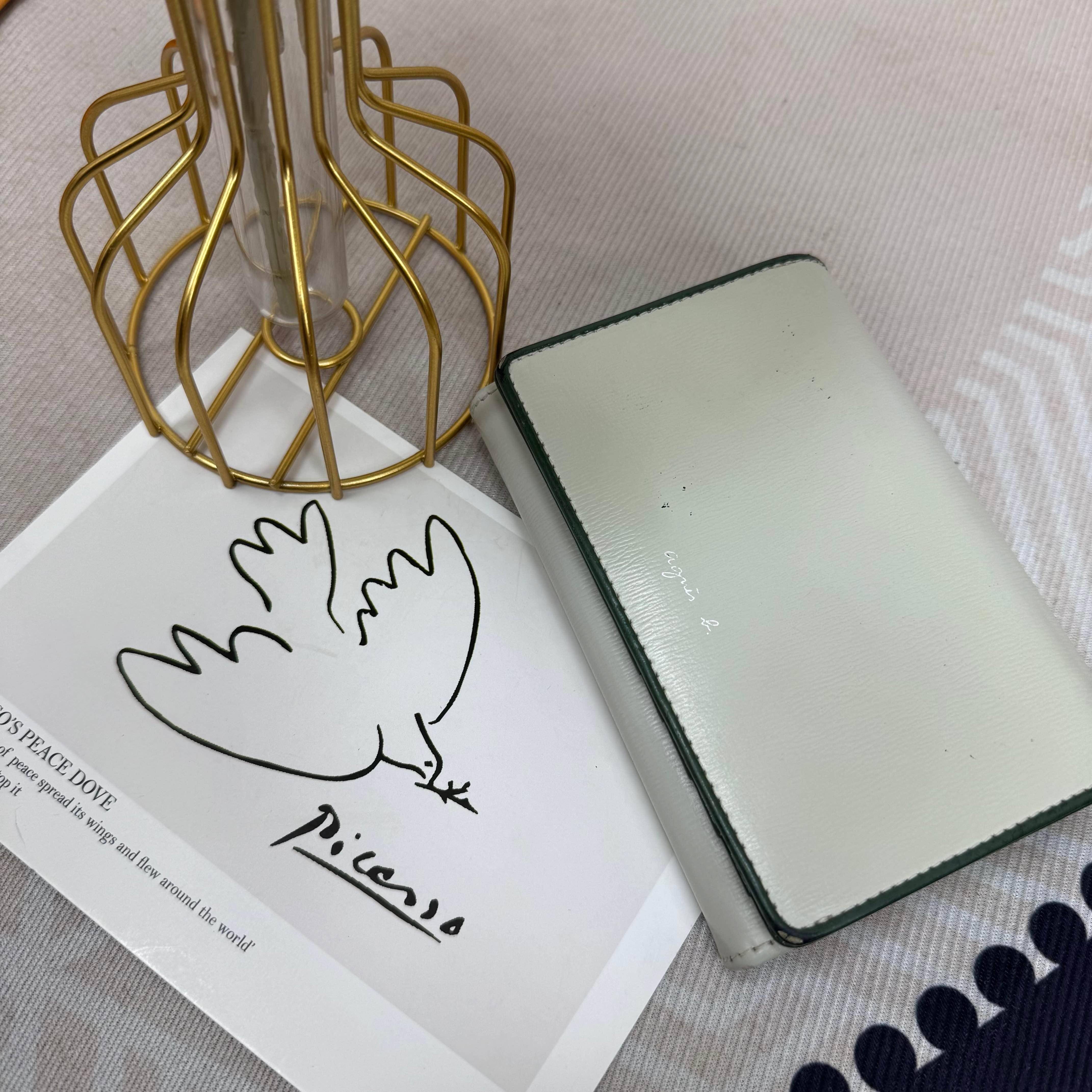 Agnes b.這款短款錢包,淺綠皮革+綠色邊框,簡約又有辨識度!正面品牌標誌低調精緻,內部空間合理,日常卡片、現金、零錢都能裝下,輕便易攜,通勤休閒都適合。法式優雅風格,實用又時髦,喜歡簡約設計的姐妹別錯過啦~