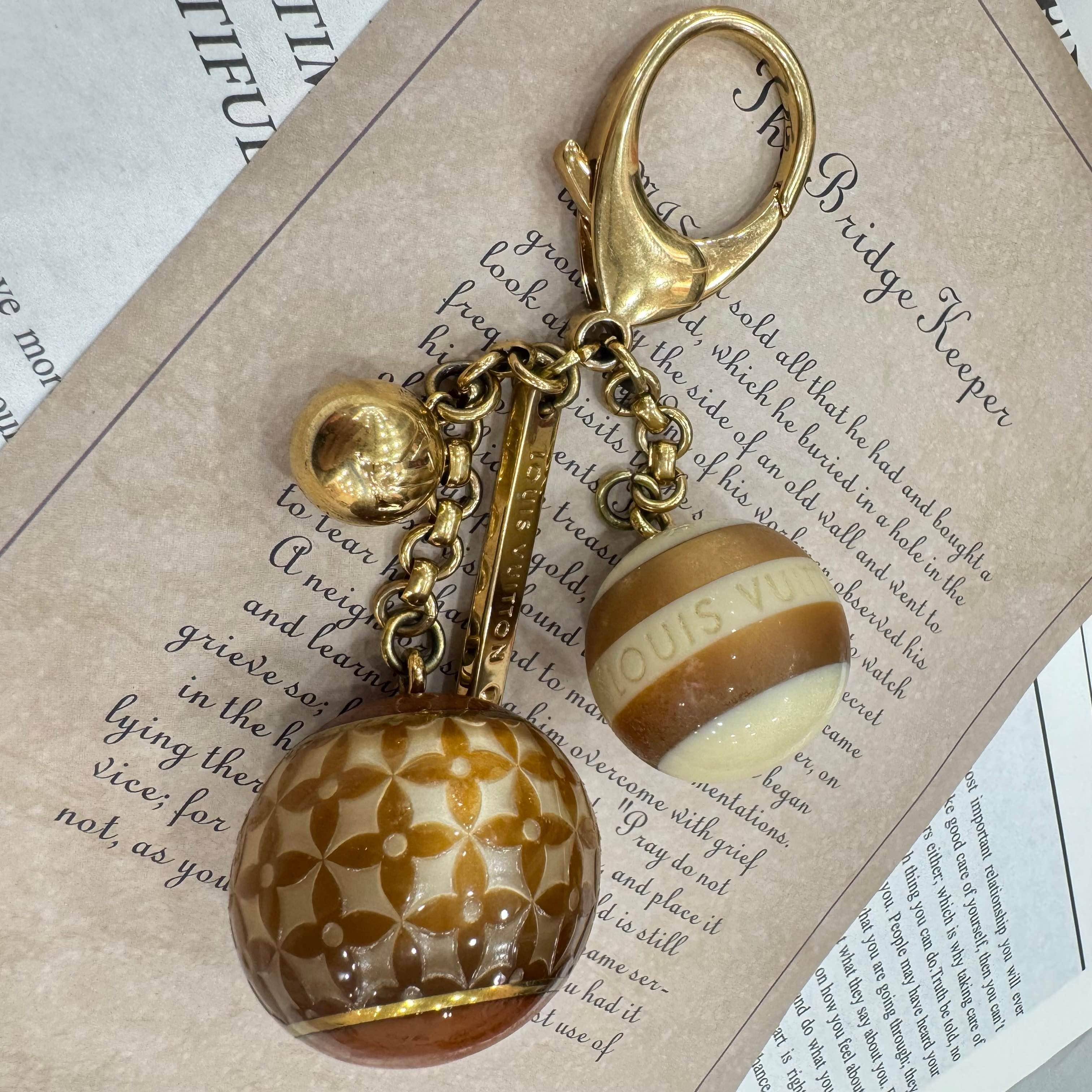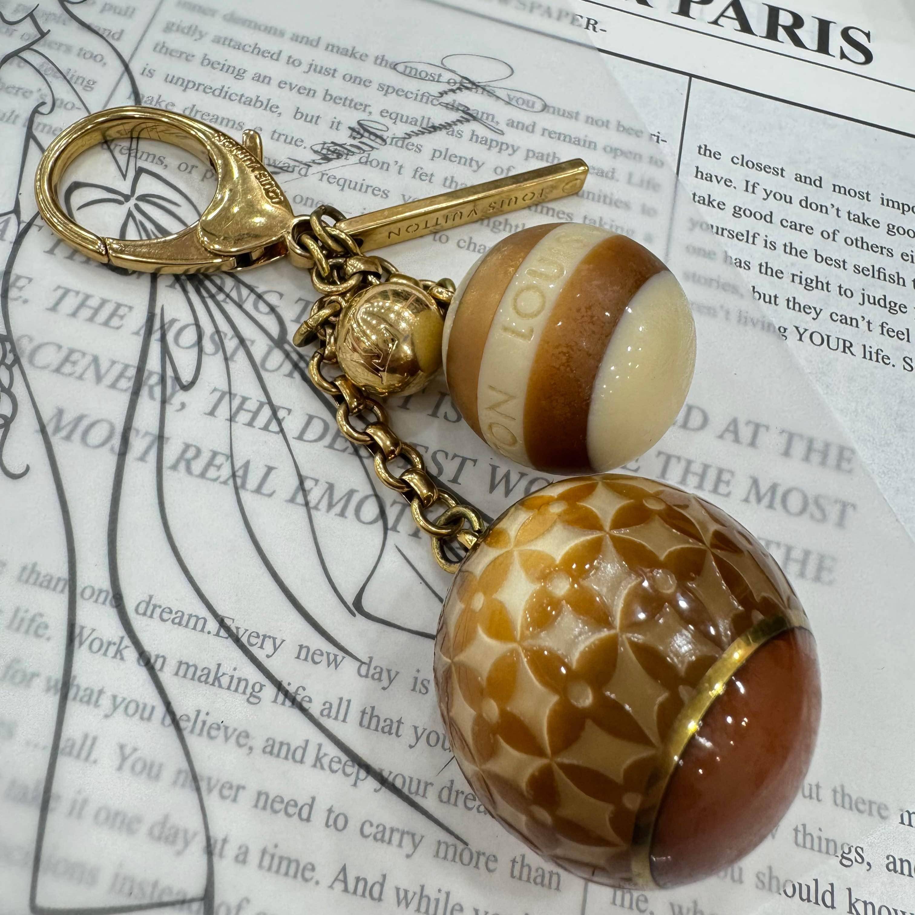 LV Monogram球形掛飾,經典棕色+米色配色,金屬鏈條+扣環設計,掛包包或鑰匙都超有範!大球是Monogram花紋,小球有“VUITTON”字樣,細節滿分,品牌感十足凸。樹脂+金屬材質,輕巧耐用,日常搭配或送禮都很合適寸,實用又好看,LV粉絲必入!