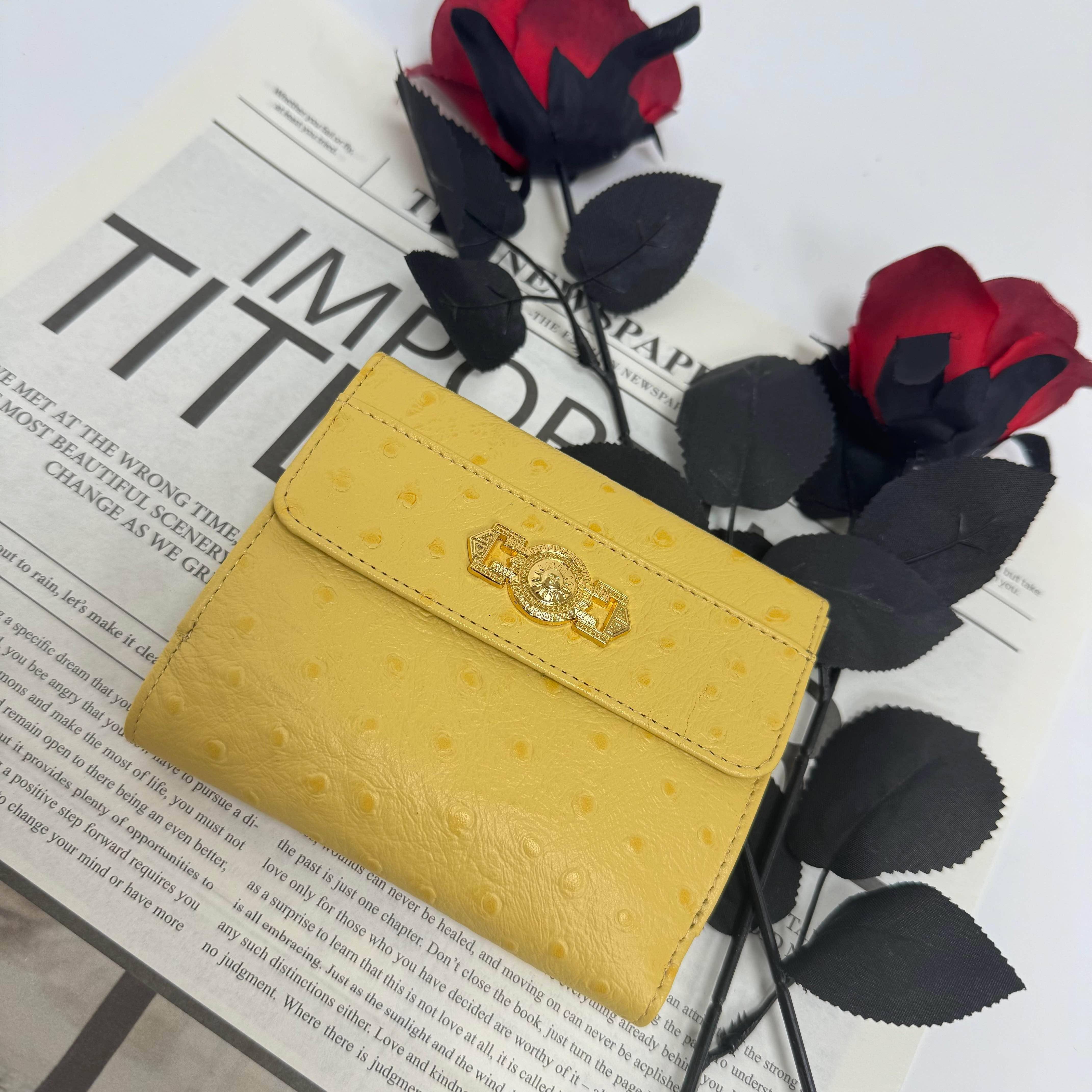 這款短款錢包採用鴕鳥紋PU皮革,黃色調超亮眼,搭配金屬鎖扣,復古又精緻。仿鴕鳥皮紋理,質感滿分,鎖扣設計不僅美觀還很安全。內部空間合理,卡槽、鈔位、零錢袋一應俱全,日常通勤或出行都很方便幽。小巧易攜,隨手放包里或口袋都OK,實用又時髦,是功能與顏值兼具的時尚單品!