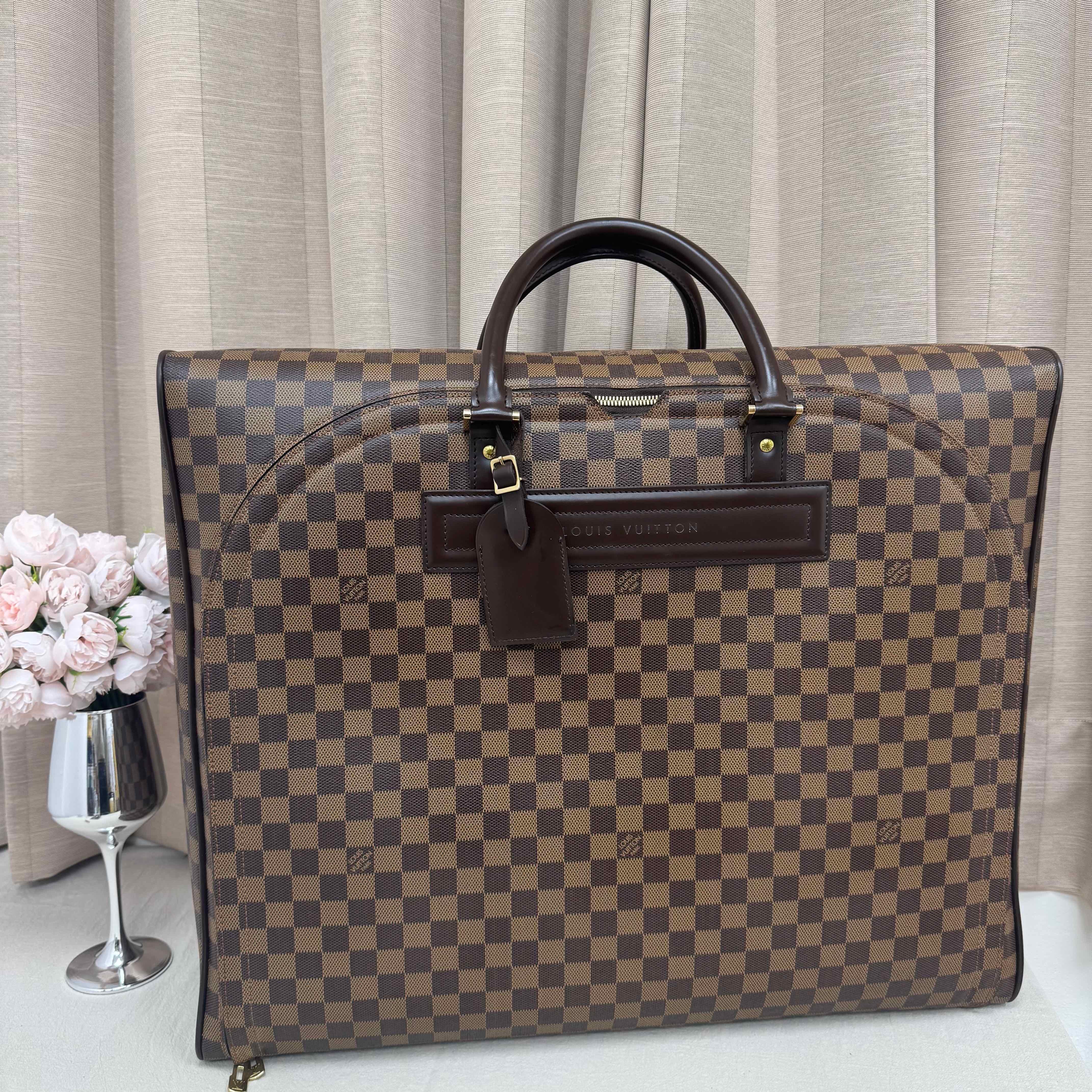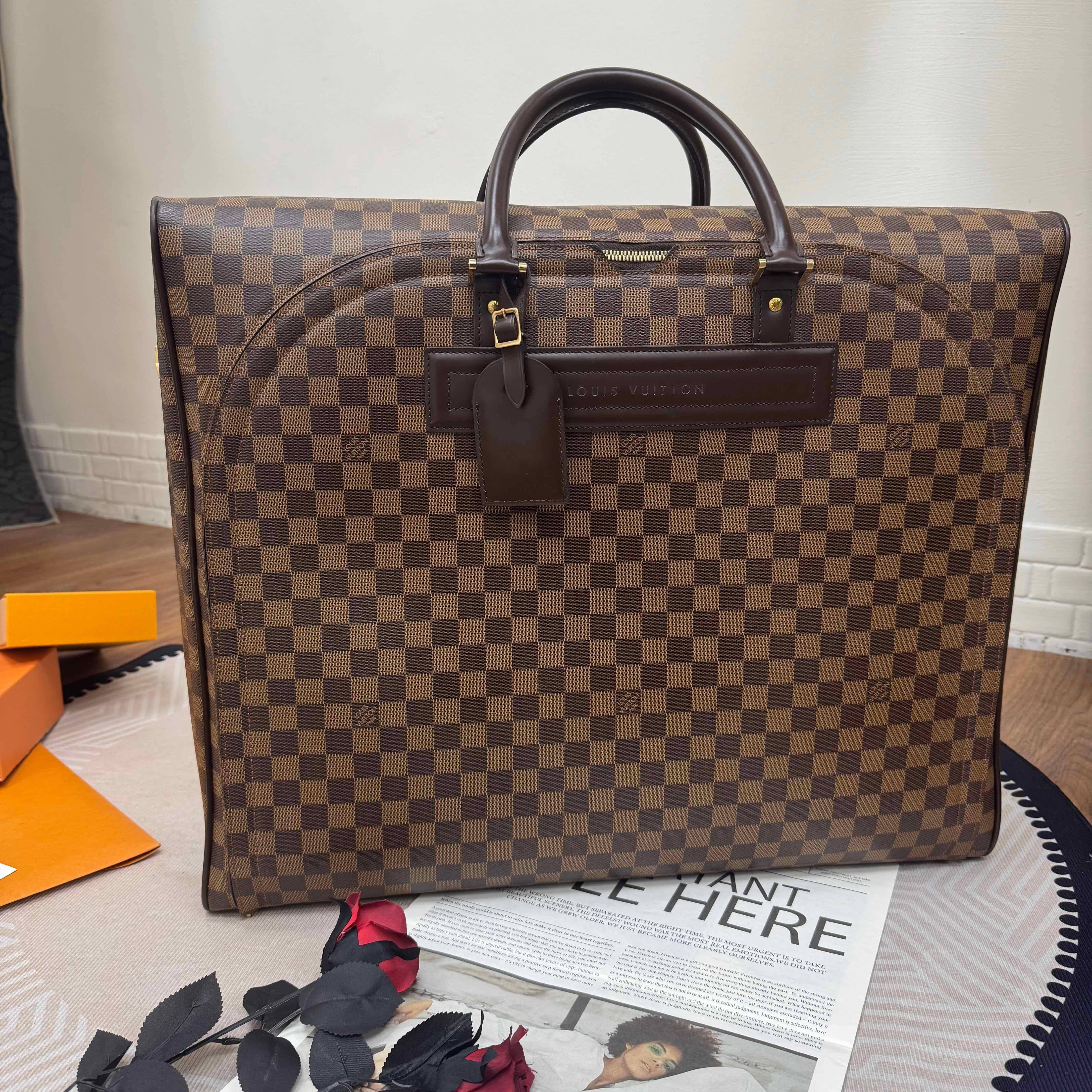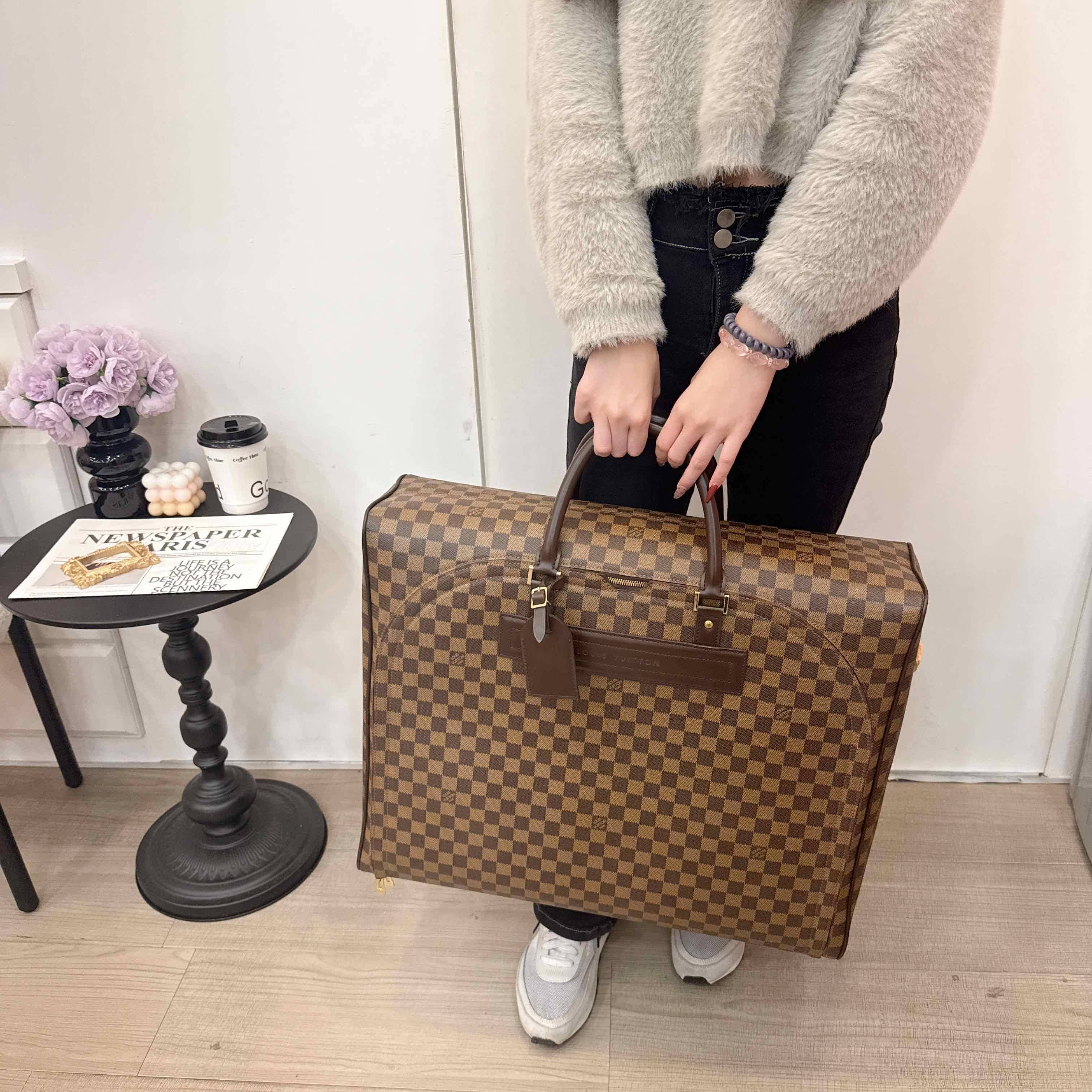 經典棕色棋盤格+深棕皮革手柄,簡約復古超有質感!容量大,通勤、短途旅行都OK。內部空間超能裝,文件、日常用品輕鬆收納。男女都能背,DIY寬肩帶還能斜挎or單肩背,實用又時髦,是中古市場超稀有款,復古控必收!🤎