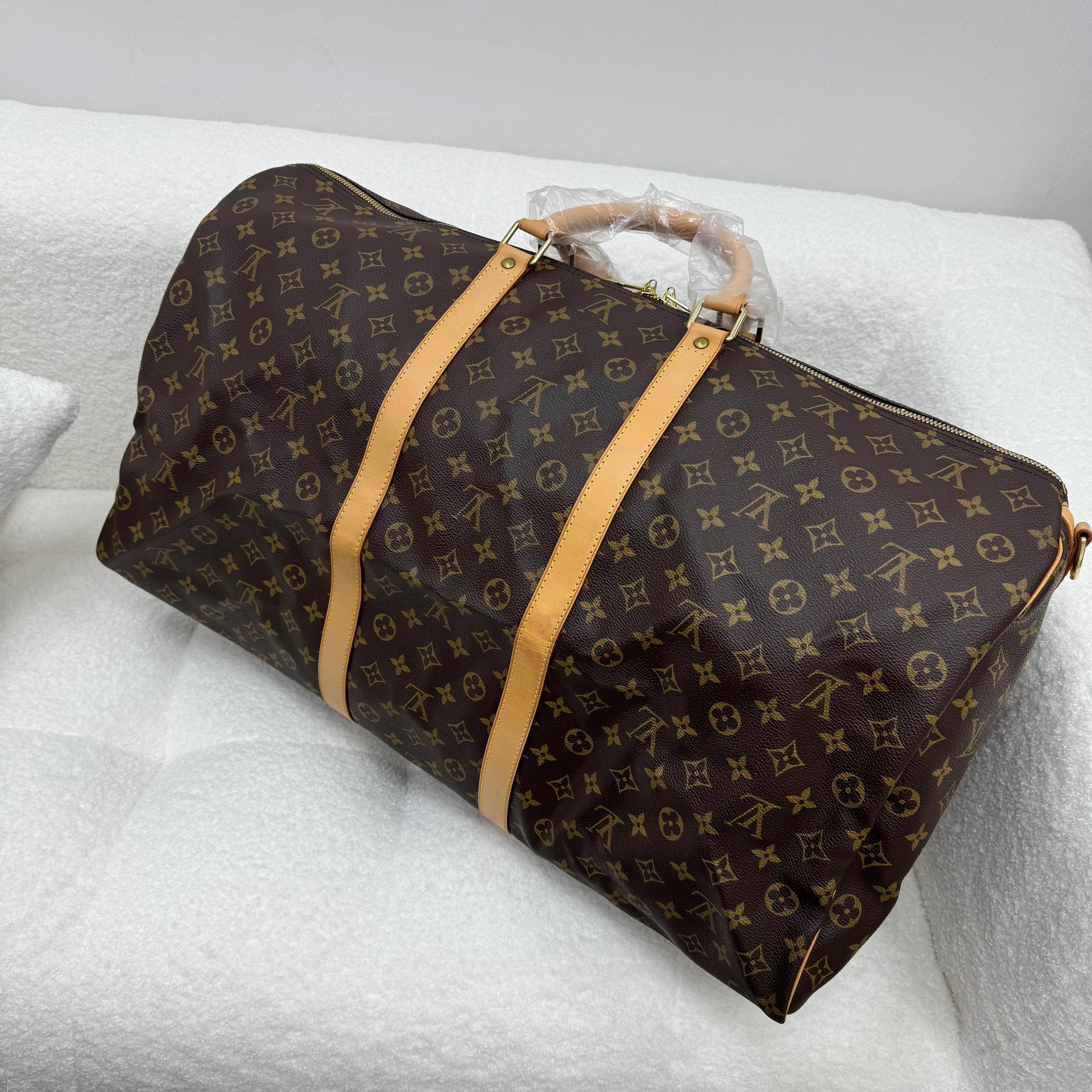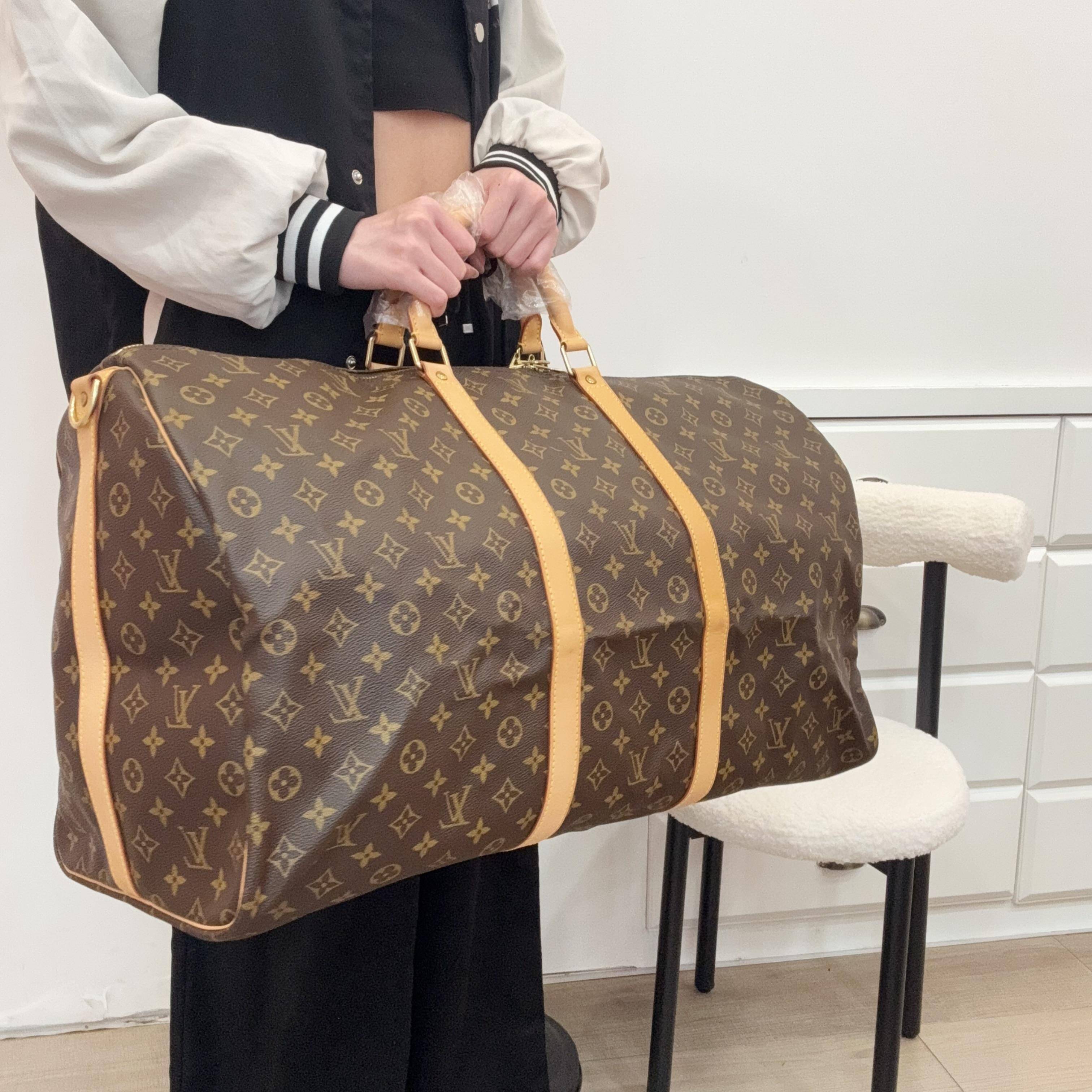 Louis Vuitton Keepall 60旅行袋,經典Monogram老花帆布+植鞣革手柄,辨識度超高!60cm容量剛好,短途旅行or登機都OK,手提肩背隨心切換。耐用又時髦,明星潮人都愛,實用與奢華兼具,旅行必備!