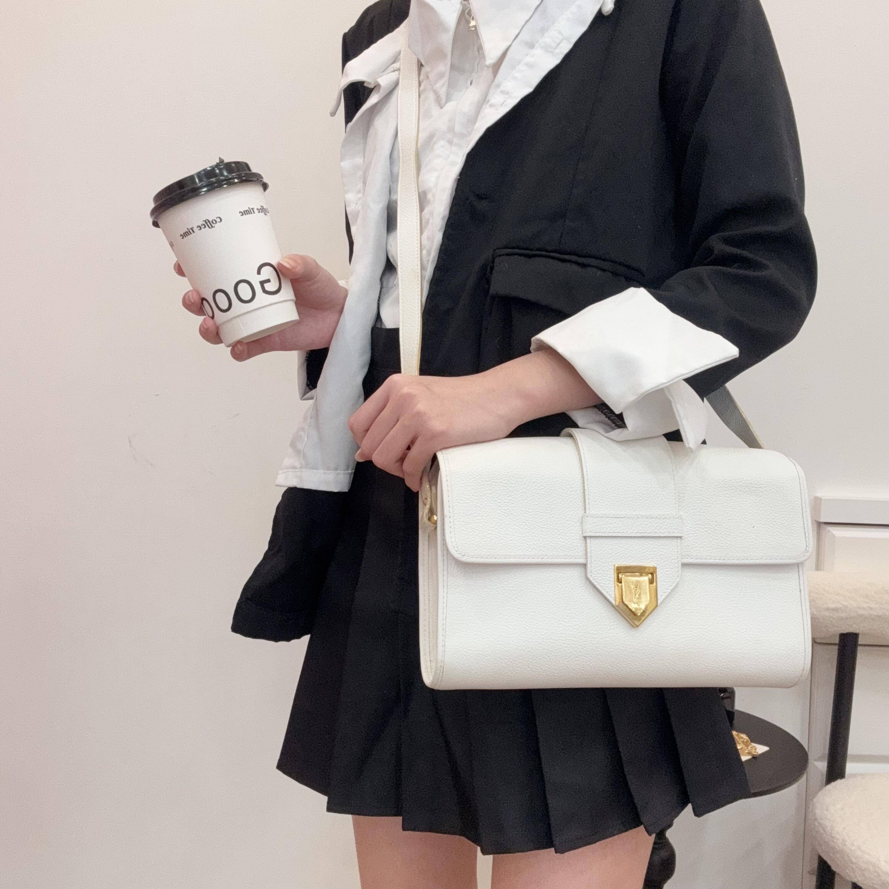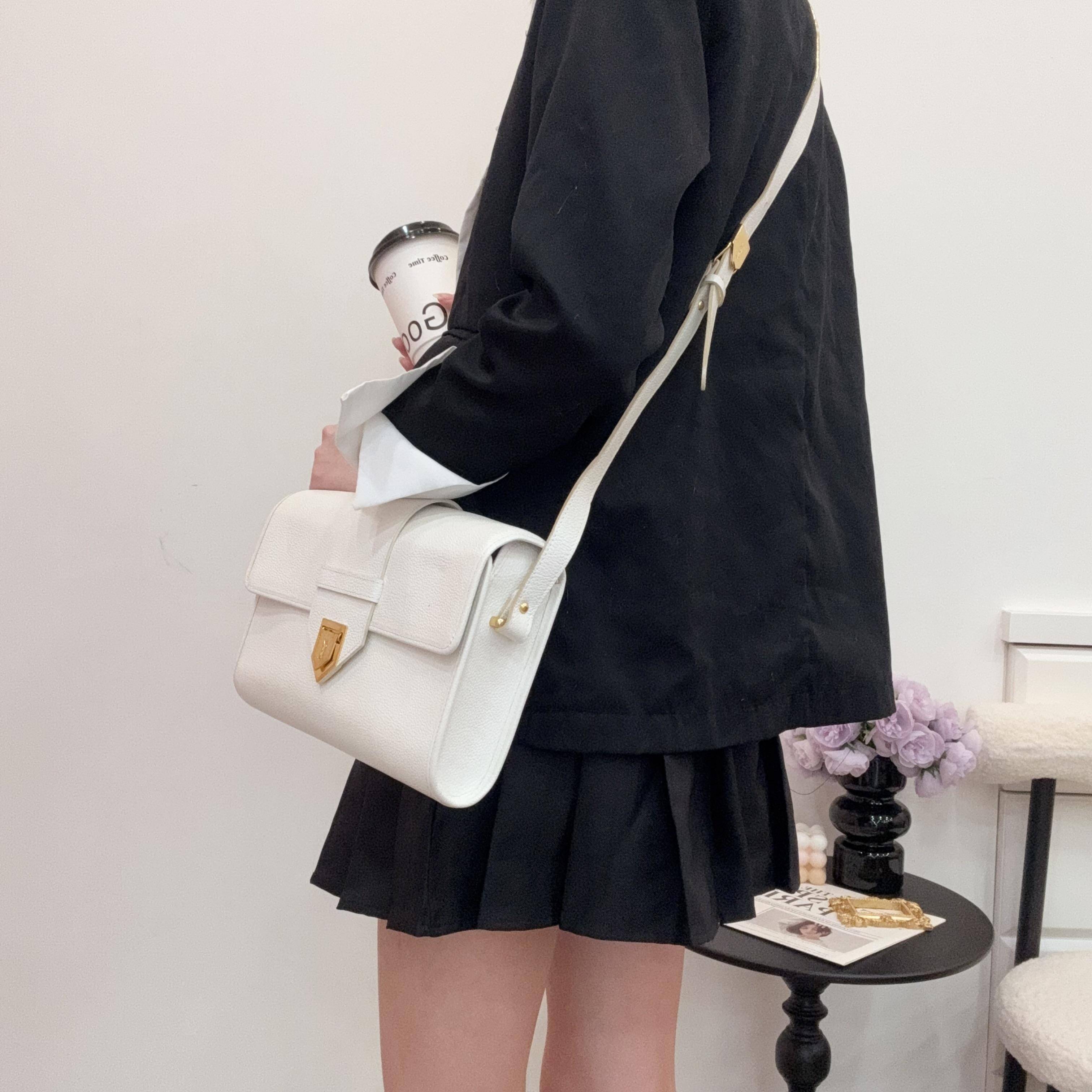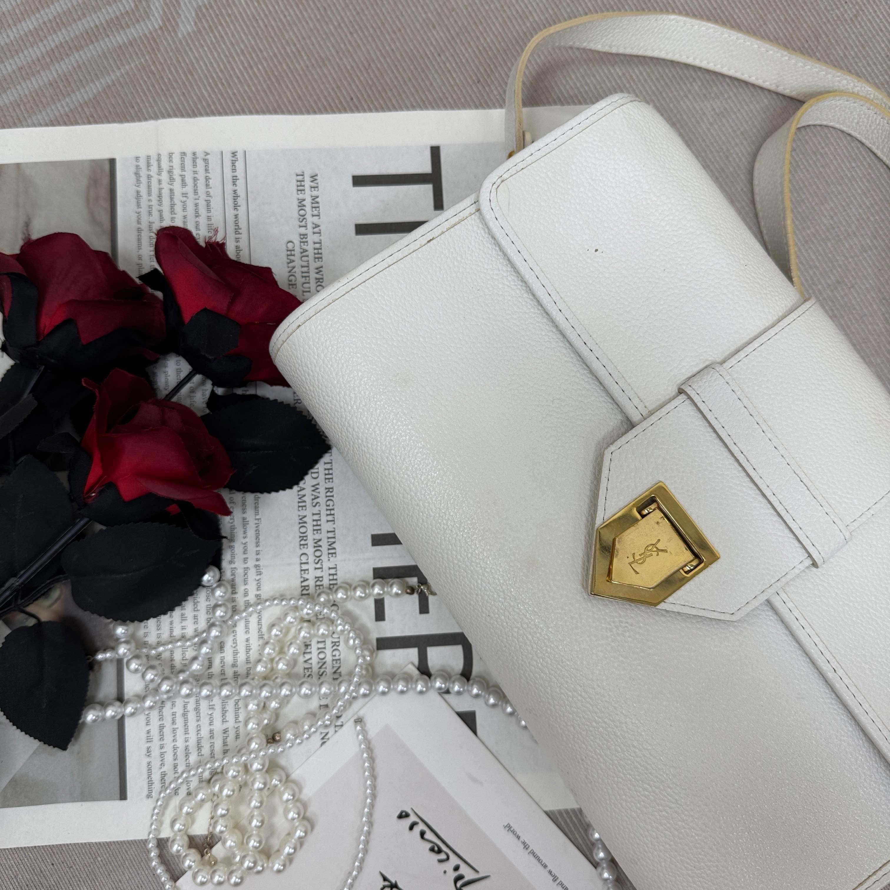 Saint Laurent (YSL) 復古白色皮革肩背包 腋下包,質感細膩耐磨,超適合日常通勤or正式場合!三角金標超有辨識度,簡約又高級。可拆卸肩帶,手拿、單肩、斜挎都OK,靈活百搭~尺寸剛好,手機錢包輕鬆裝下,實用又時髦,是中古市場超火的熱門款!