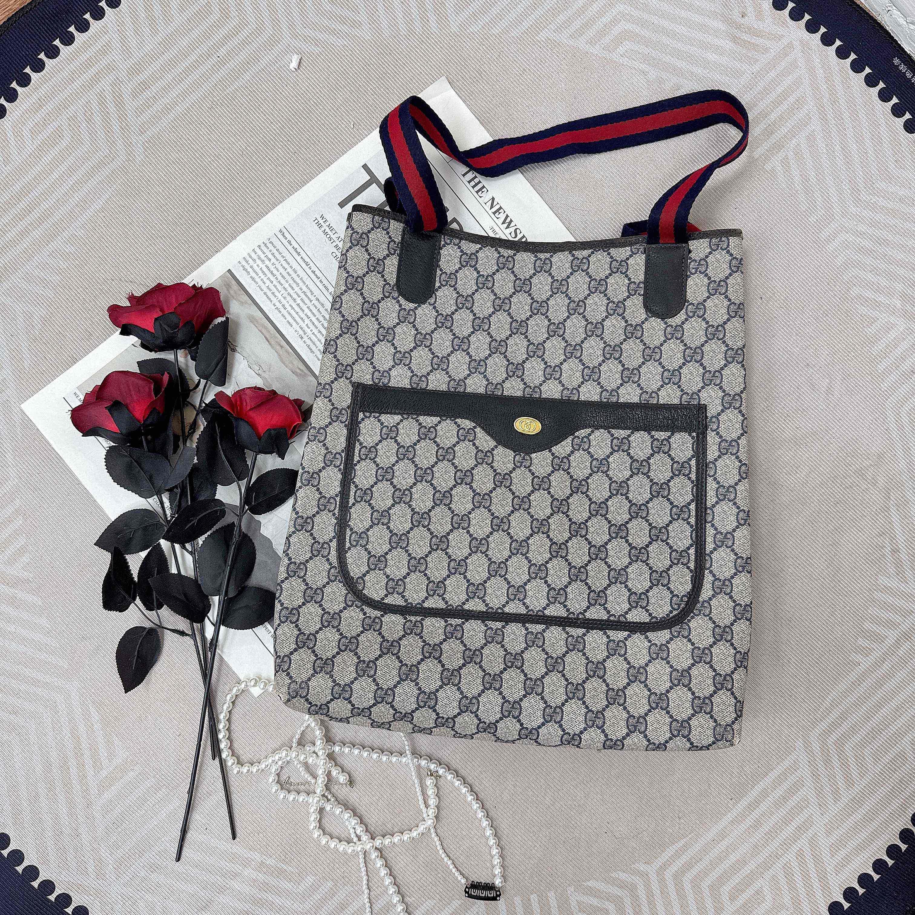 經典雙G老花帆布+紅藍織帶,復古感滿滿!黑色牛皮飾邊+金屬雙G標誌,細節超精緻。微梯形包型,容量大,通勤or短途出行都超實用。肩帶紅藍配色,辨識度高,男女都能輕鬆駕馭。中古系列已停產,收藏價值高,復古控必入!