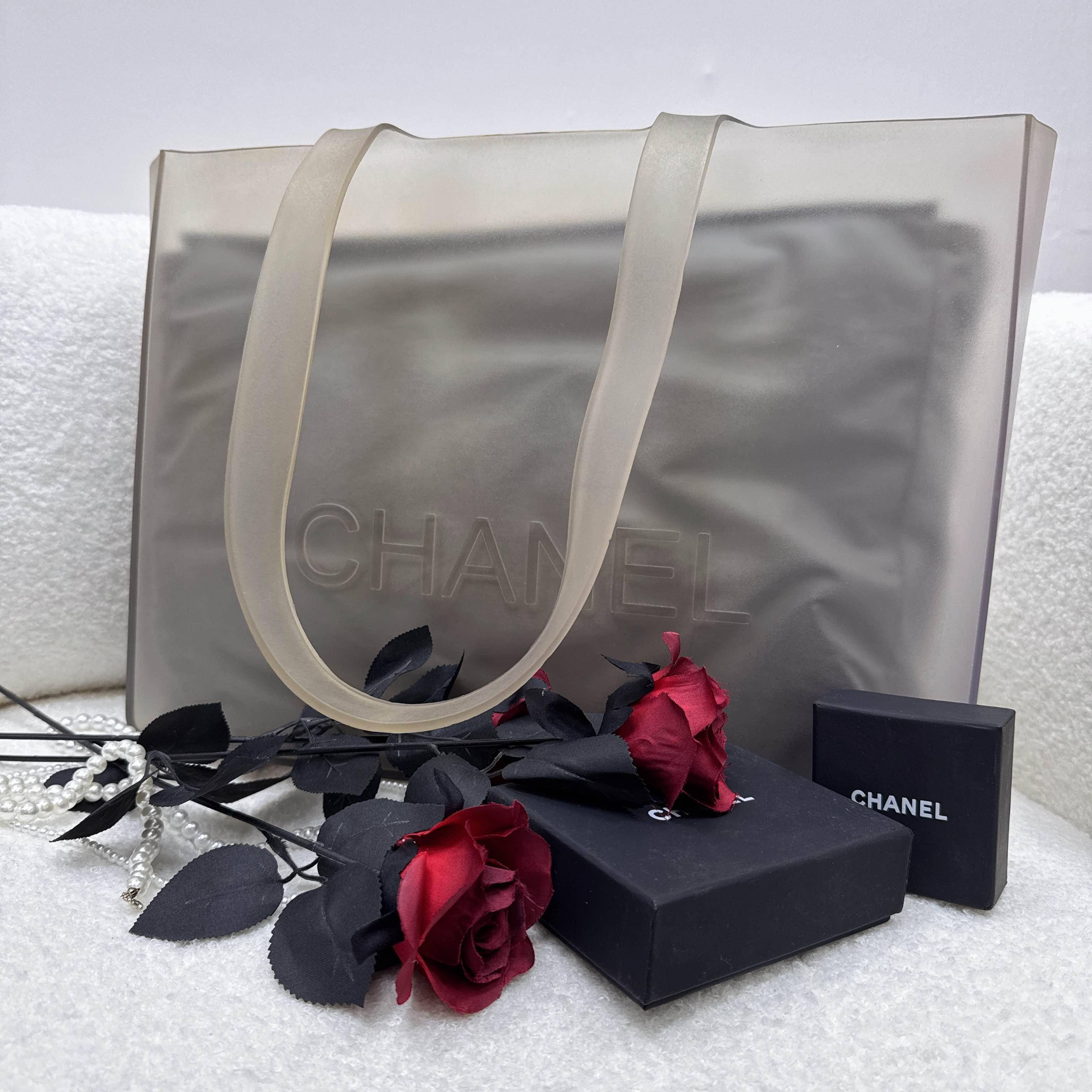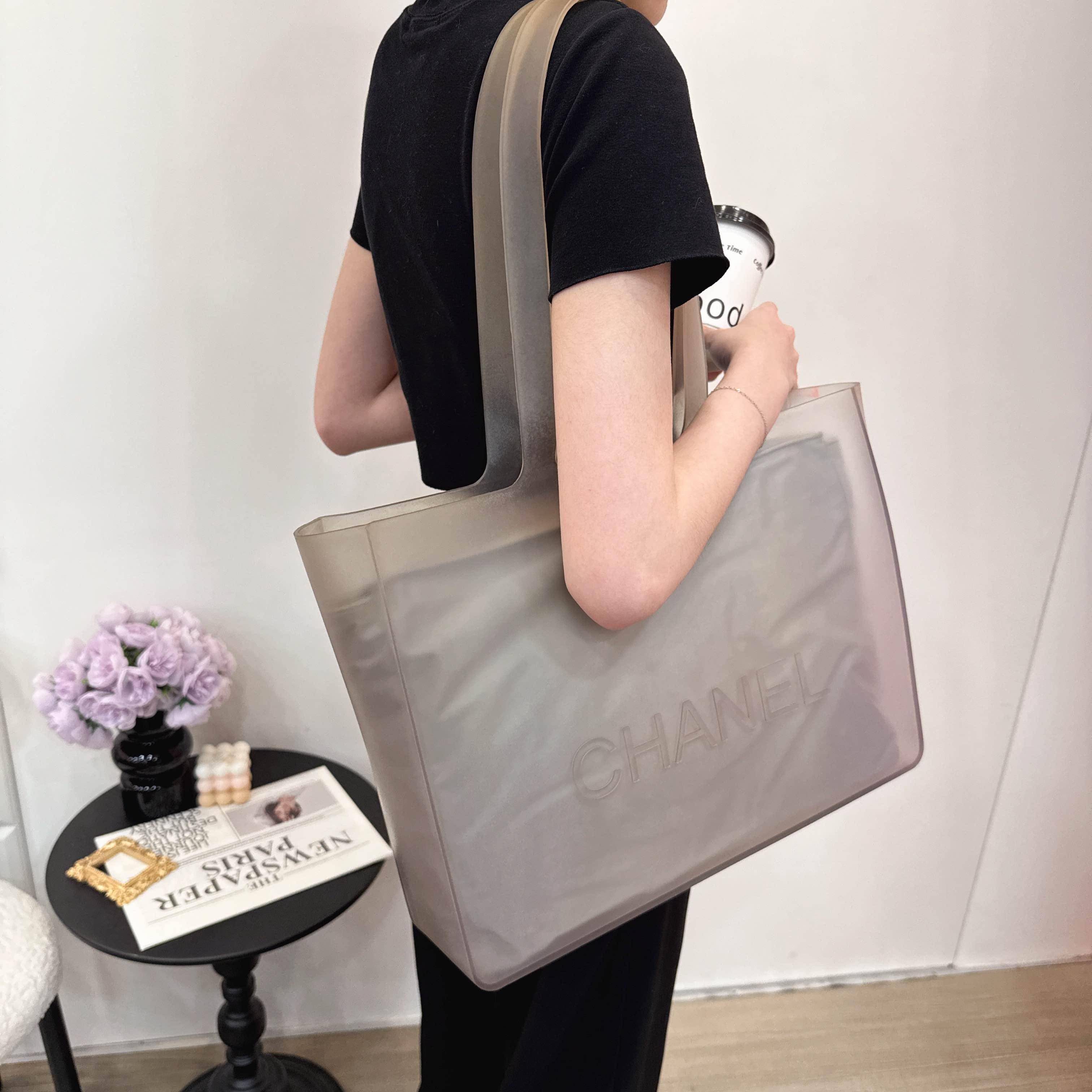 香奈兒這款透明托特包採用PVC材質,輕便又耐用,正面有經典“CHANEL”標誌,簡約大氣。包內配灰色防塵袋,保護物品又提升質感👜。尺寸適中,通勤休閒都很適合,透明設計時尚又實用,收納超方便!香奈兒的精緻工藝和高端定位,真的很受時尚愛好者喜歡~