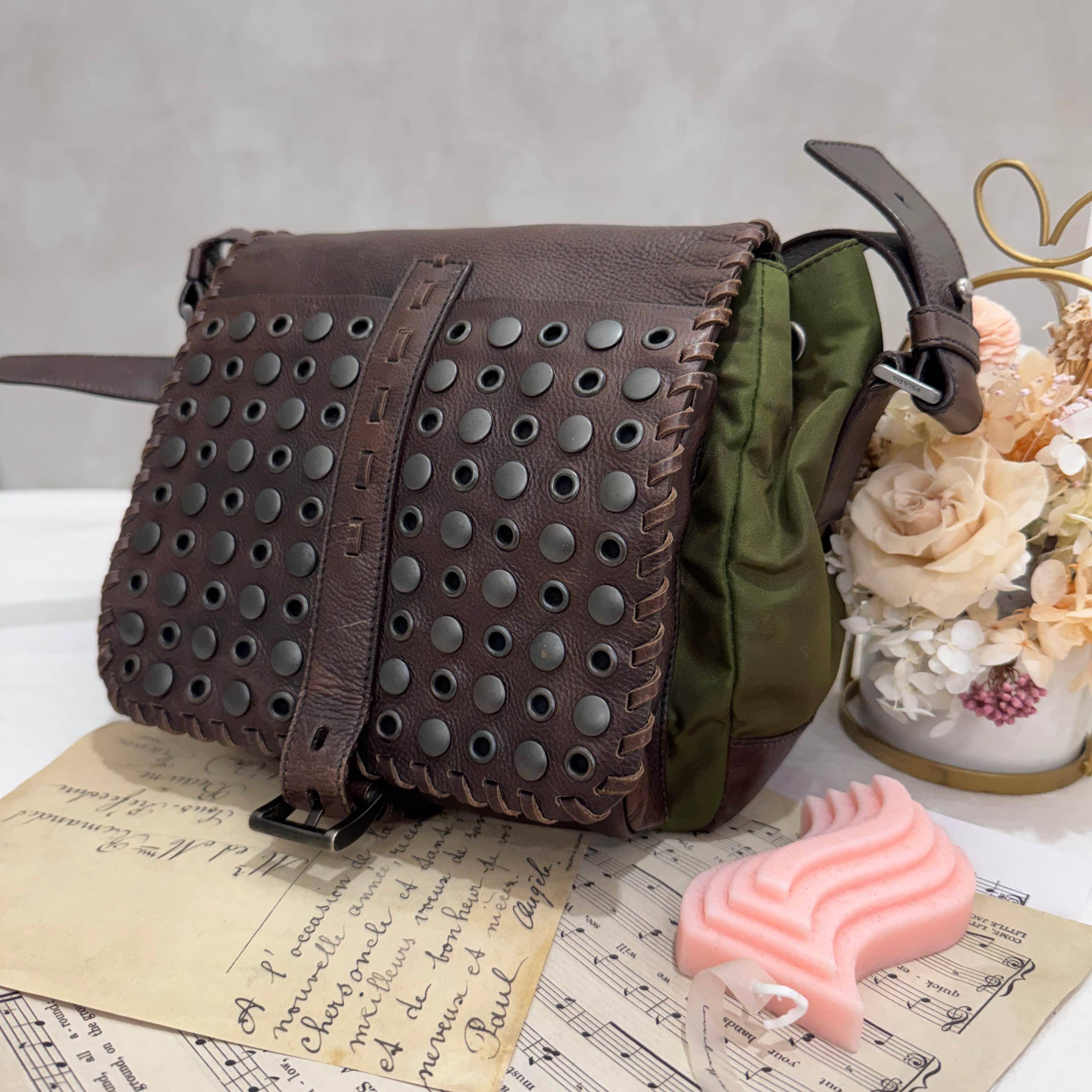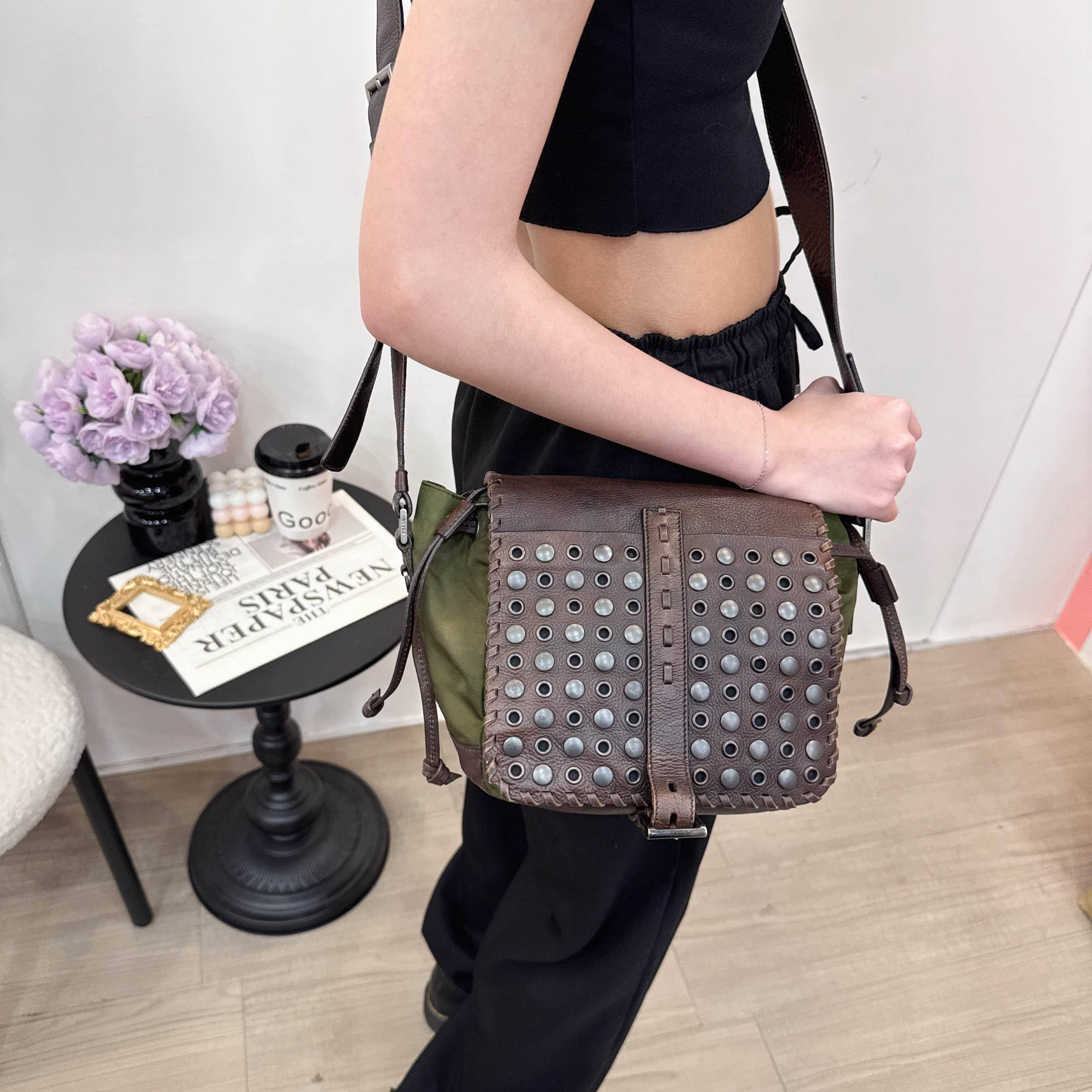 它採用了該品牌標誌性的 Tessuto 尼龍與皮革拼接設計,硬朗又有街頭感!包身尺寸適中,日常通勤、休閒出街都很OK。肩帶可調節,單肩or斜挎隨心切換,鉚釘設計超有個性,搭配工裝、機車風都很出彩。實用又時髦,是辣妹和街頭風穿搭必備單品!