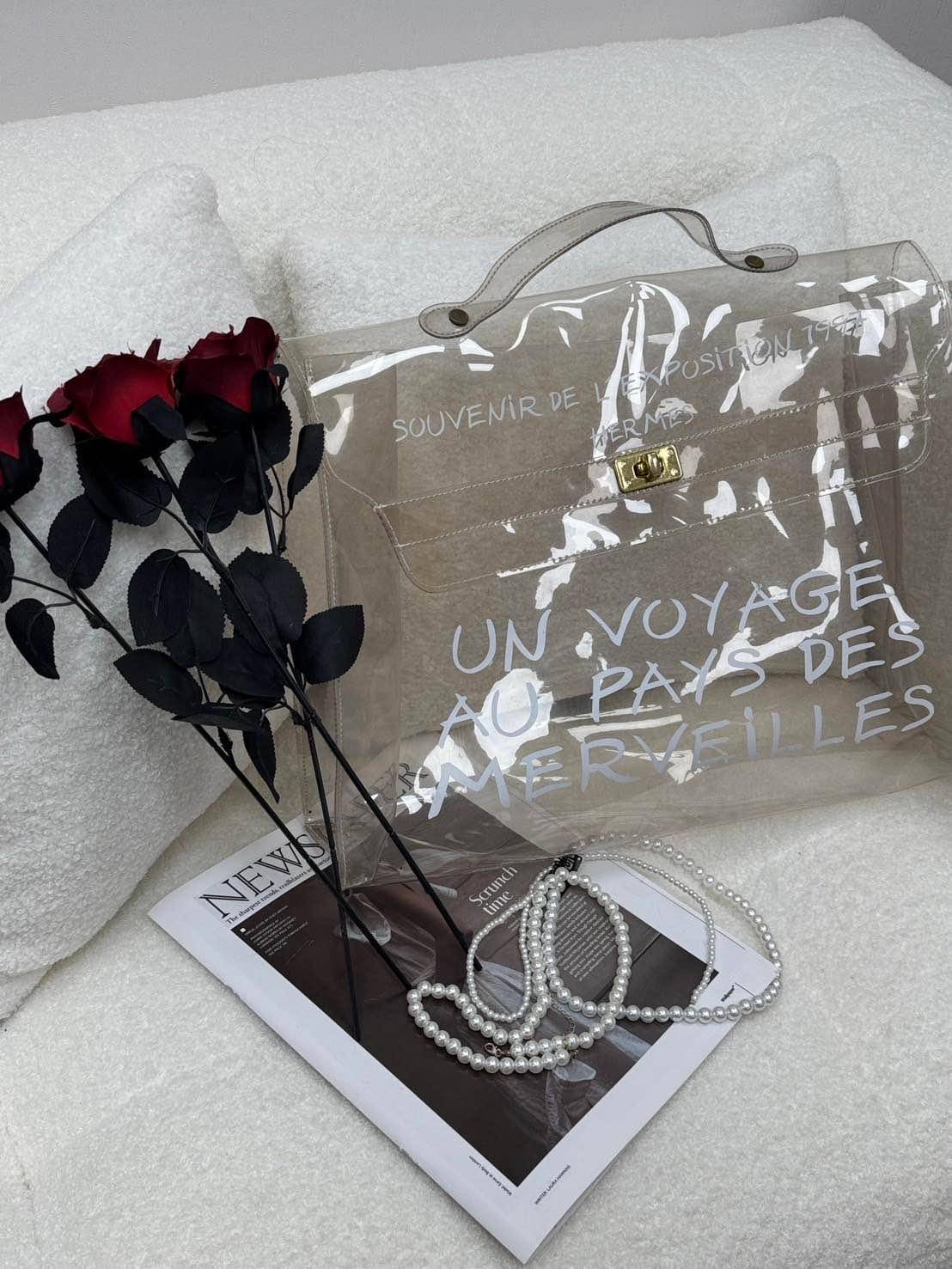 𒊹︎產品狀況:變色發黃是透明塑膠常見的問題,原本純淨的透明感會轉向淡黃色或微褐色。有使用痕跡,尤其是包底四個角。