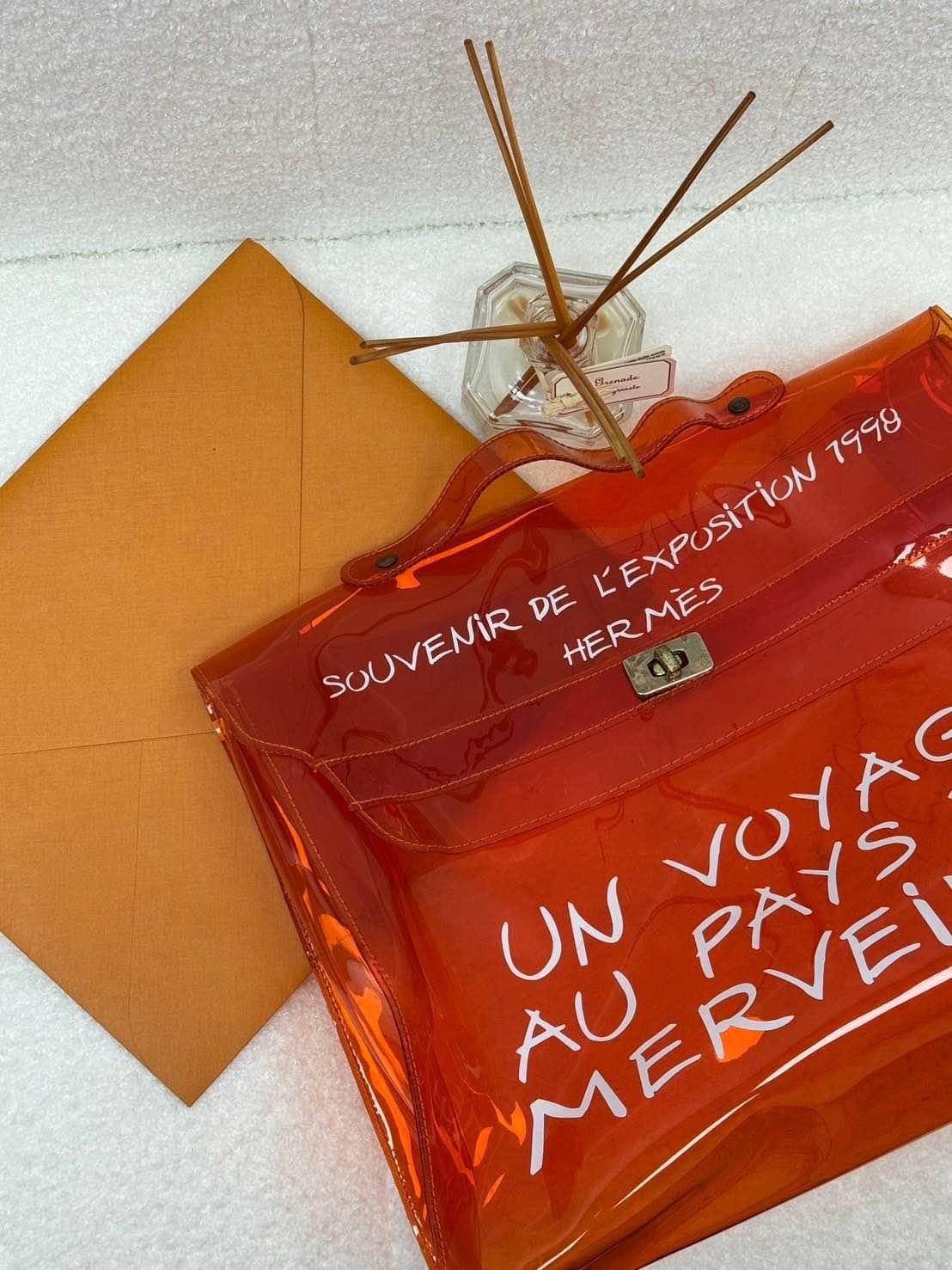 穿越 20 多年的時光,透明乙烯基材質依舊散發著經典的愛馬仕橘光澤。無論是作為收藏,還是夏日街拍的點綴,它那種大膽又前衛的透明感,至今依然立於潮流頂端。