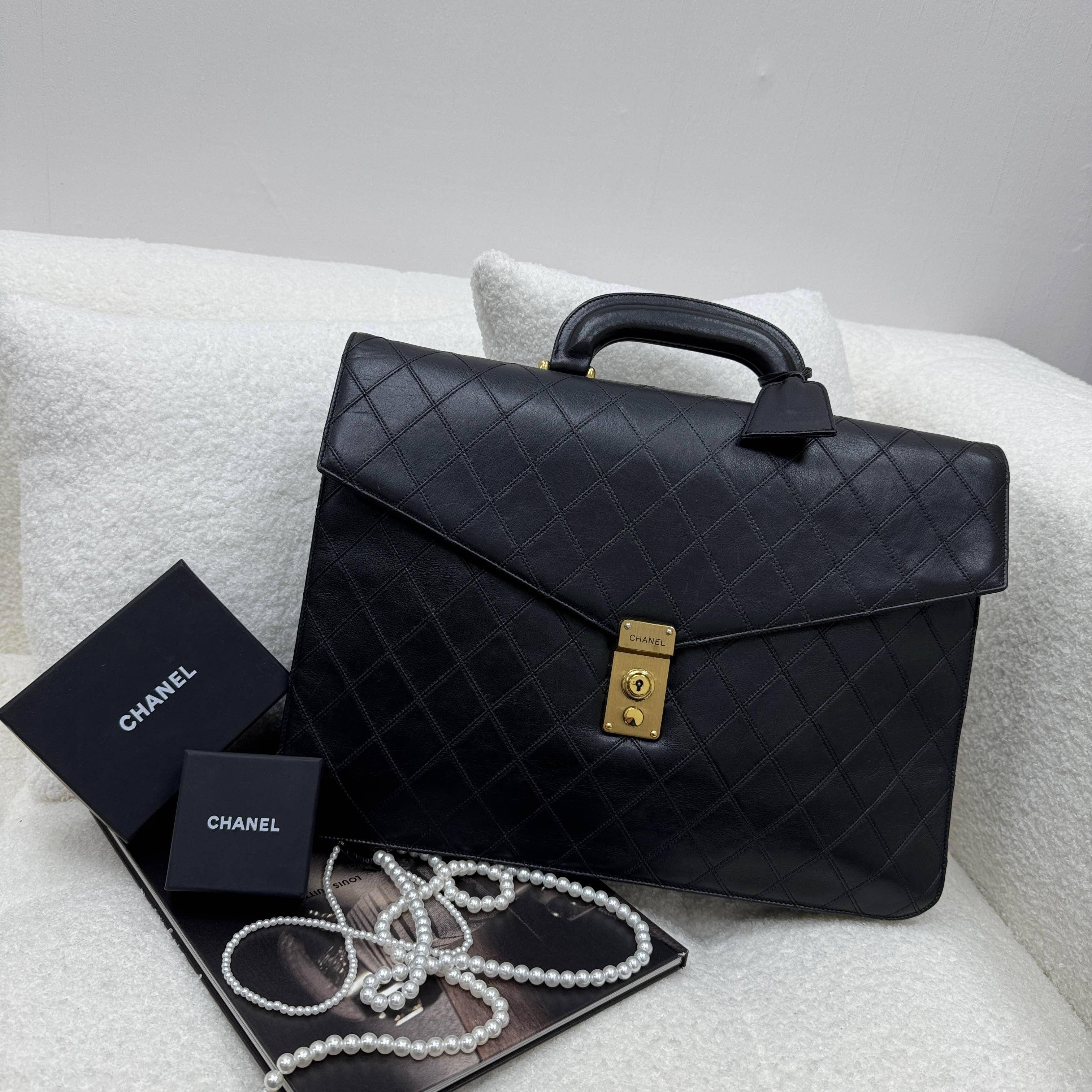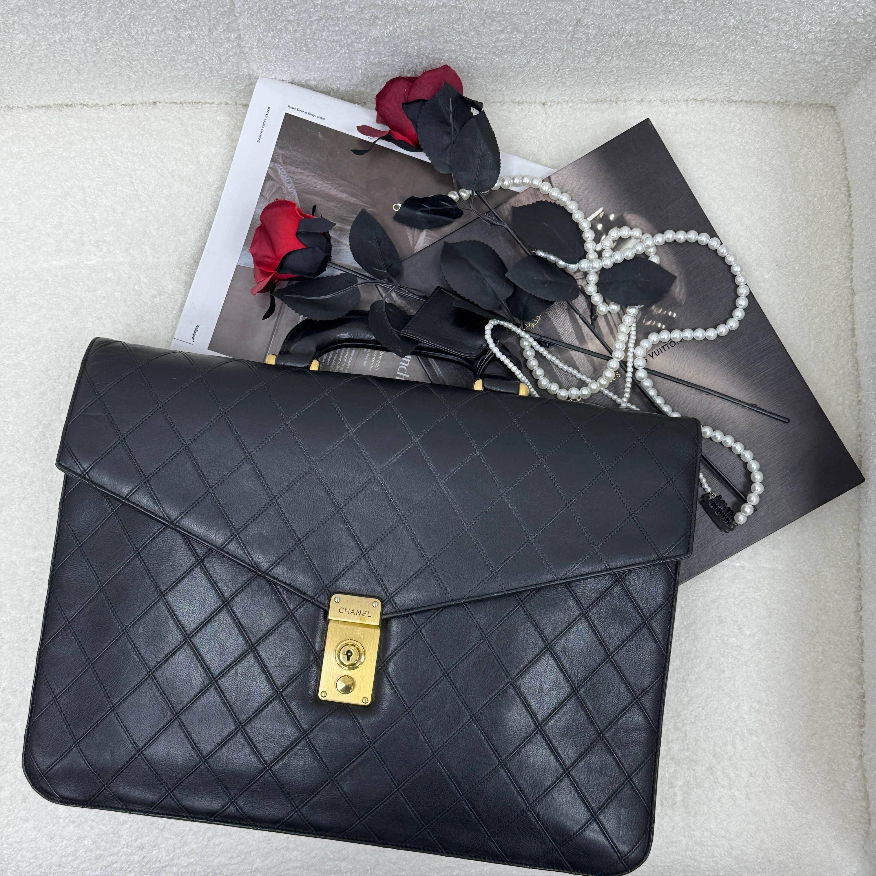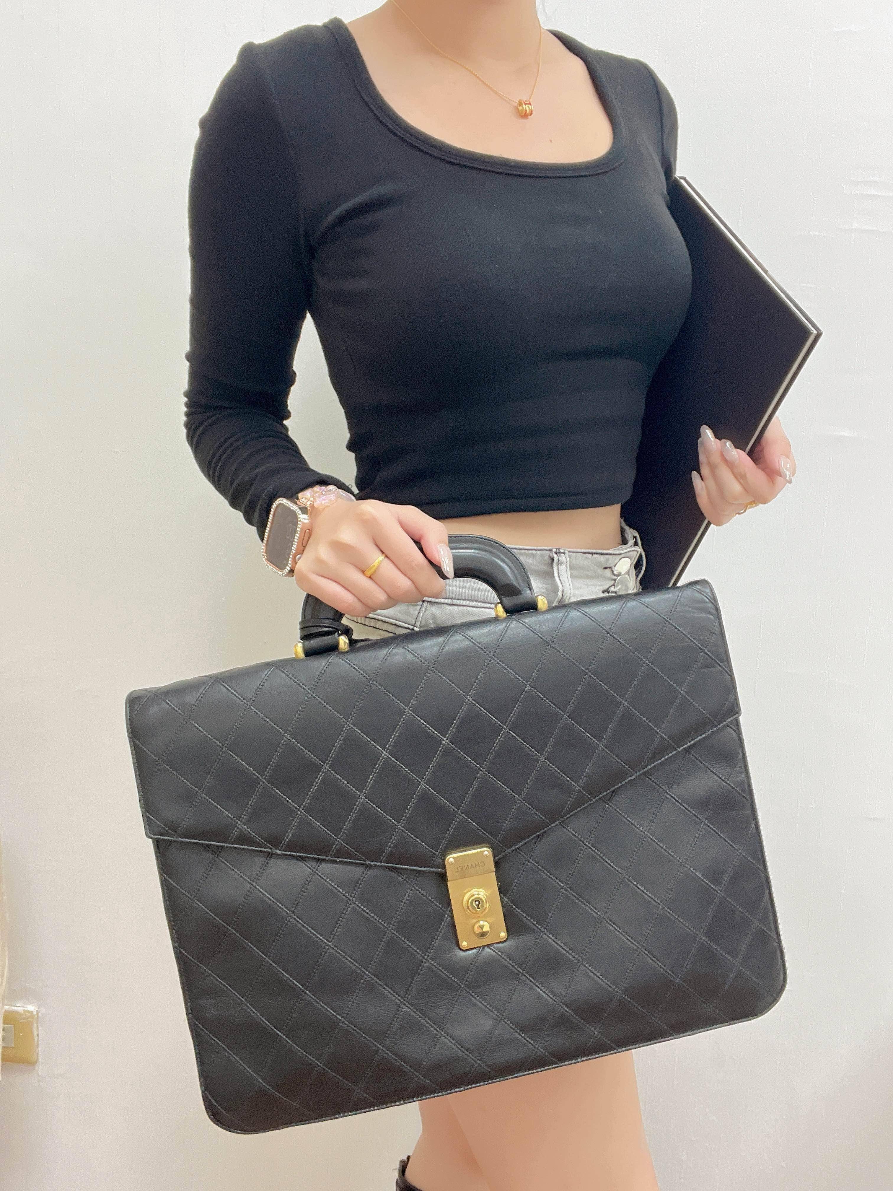 這不是一個普通的公事包,而是 90 年代復古美學的縮影,黑色細膩羊皮與標誌性菱格紋,低調中透著不容忽視的權威感。不論是搭配俐落的西裝外套,或是隨性的風衣,它都能讓妳在商務會議中,舉手投足間散發自信優雅。