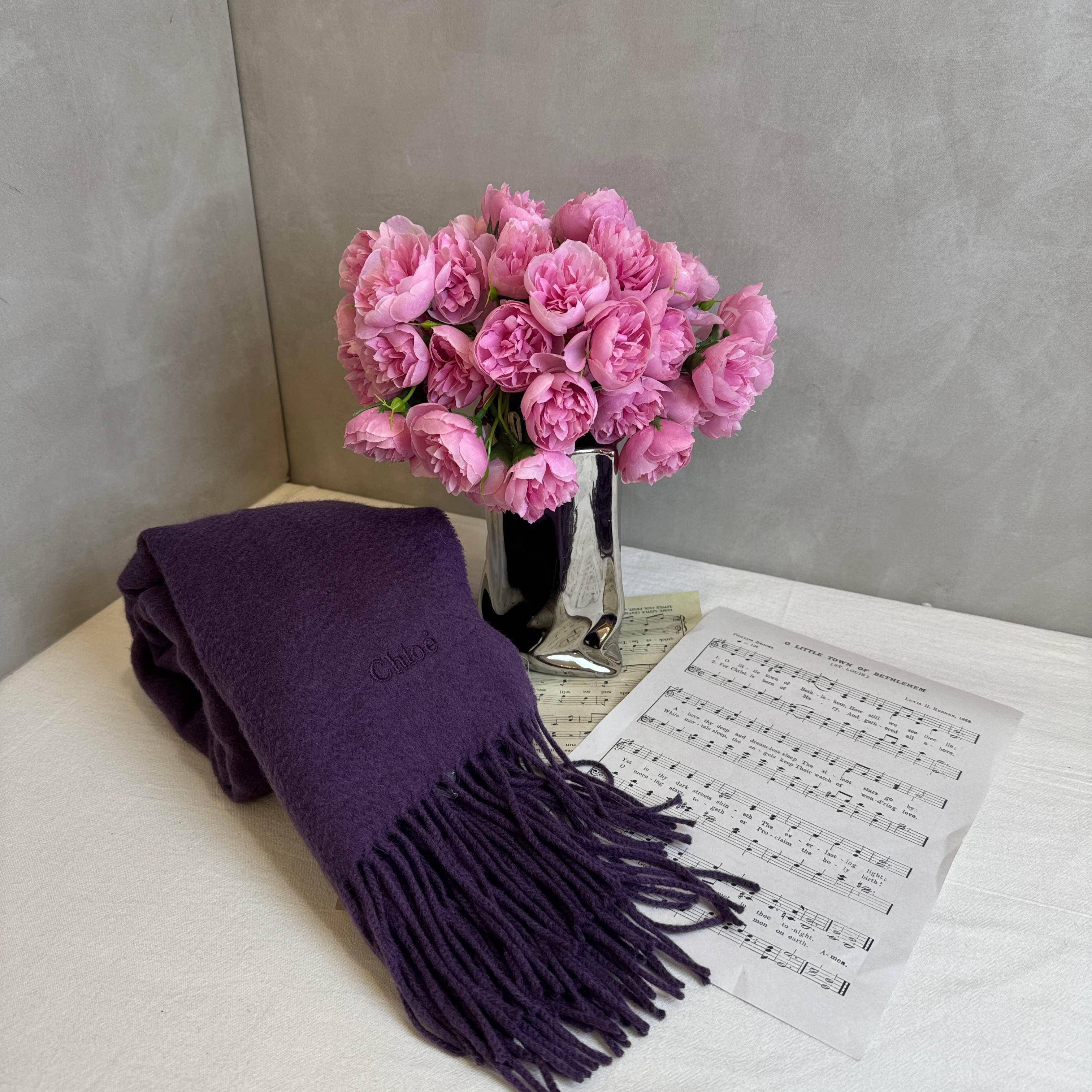 這款紫羅蘭色羊絨圍巾,色澤沉穩如醇酒,流露低調奢華。觸感細膩親膚,宛如指尖漫步雲端。經典流蘇點綴簡約版型,不僅是禦寒首選,更是冬日大衣的最佳拍檔,為您在冷冽季節中,圍起一份優雅與溫暖。