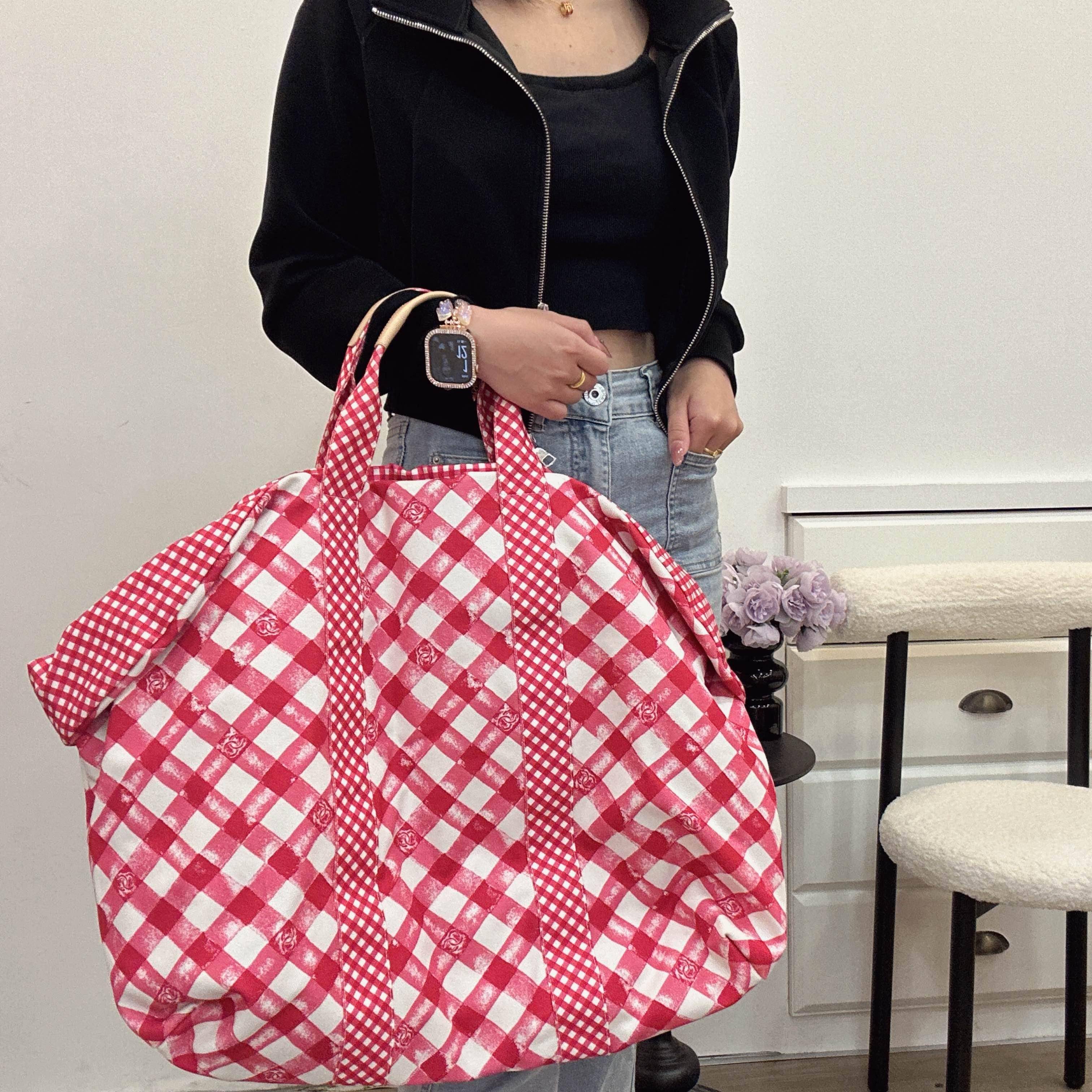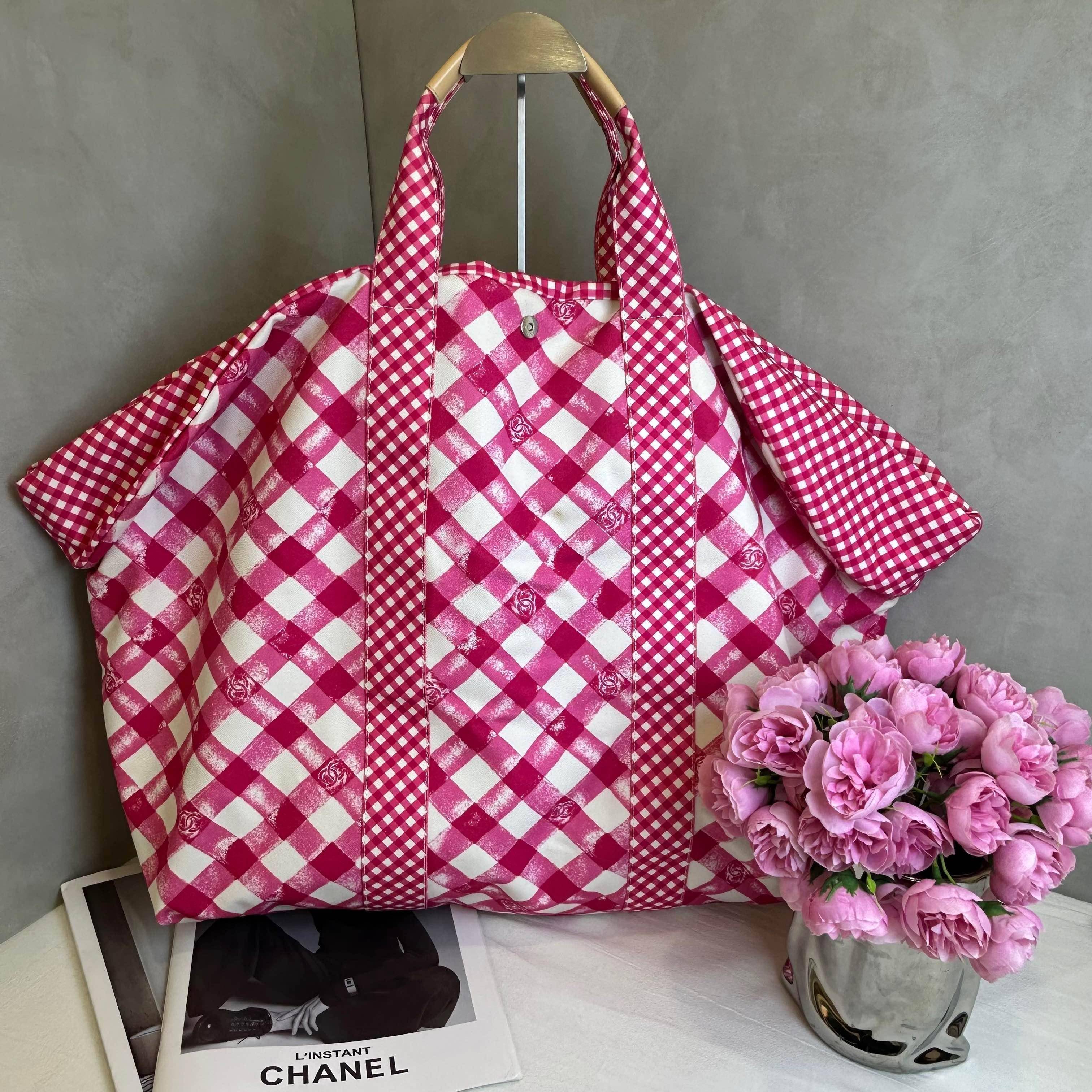 這款 Chanel 度假系列手提包,以亮麗桃粉格紋交織純白帆布,包身點綴經典雙 C 標誌。大容量設計揉合南法鄉村的慵懶與精品的高雅,色彩活潑且極具層次,為夏日穿搭注入甜美優雅的度假氛圍。