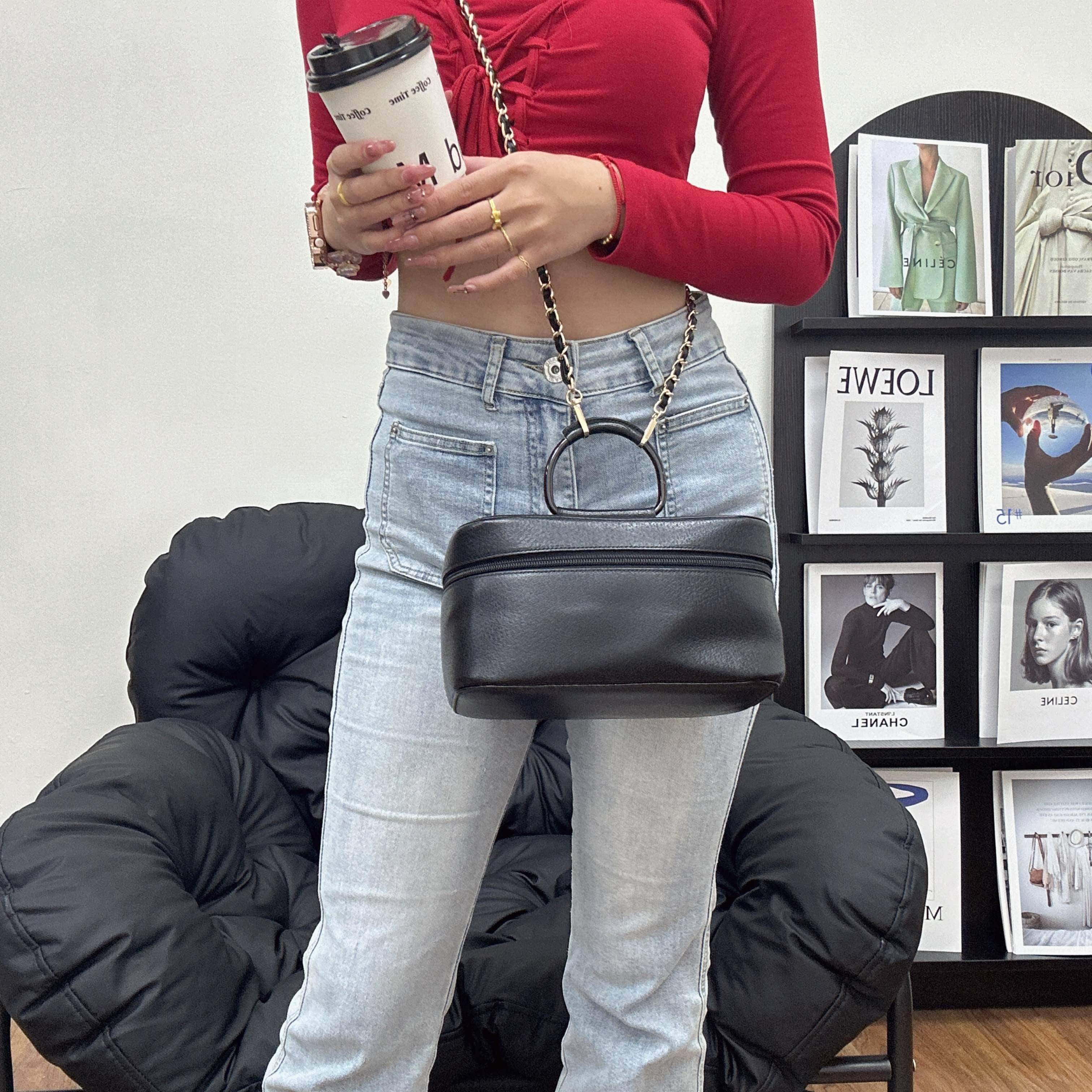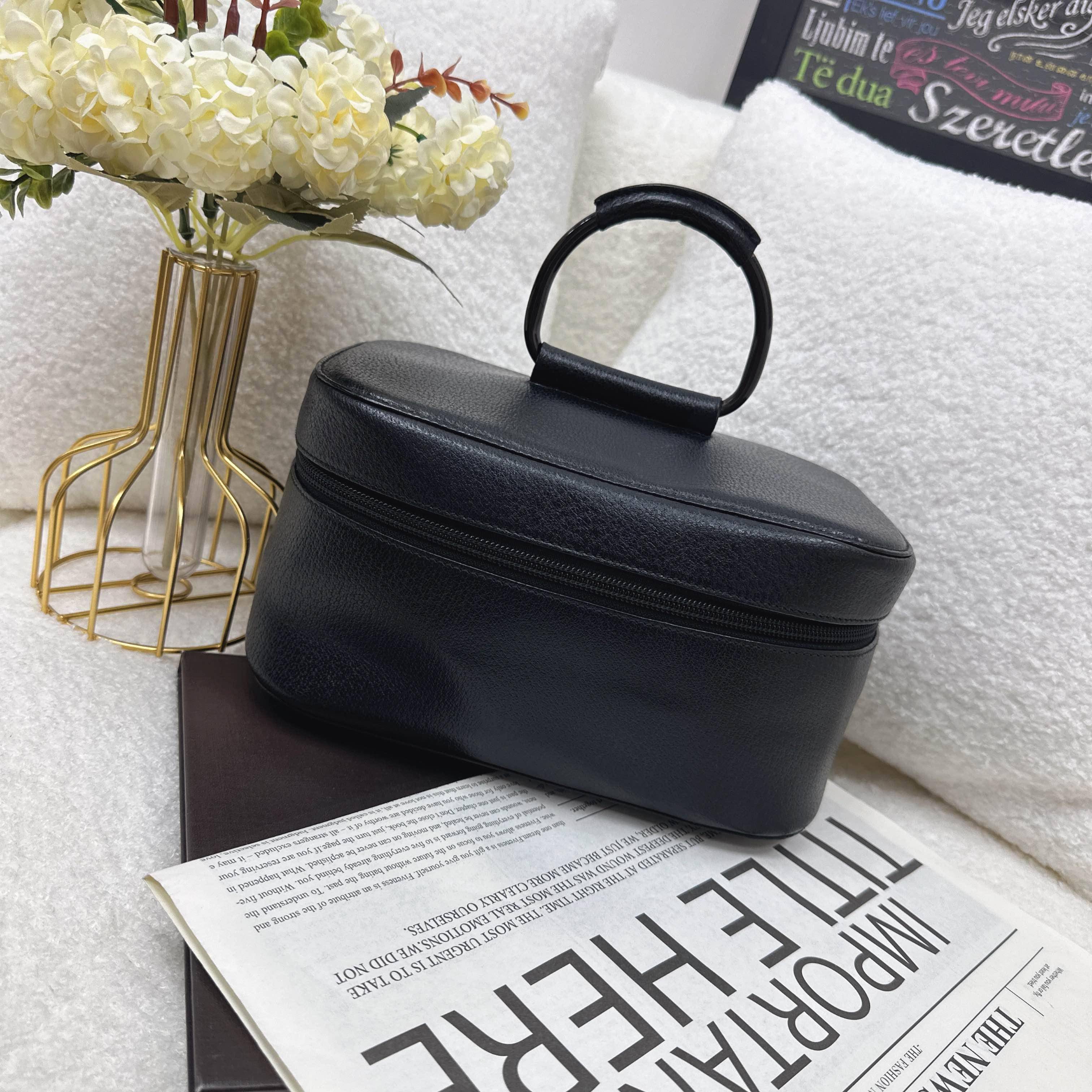 採用細膩荔枝紋皮革搭配經典半圓手把,外型簡約且充滿復古質感。其寬敞的內層空間適合收納美妝用品,既展現奢華優雅,又是實用的時尚配件。